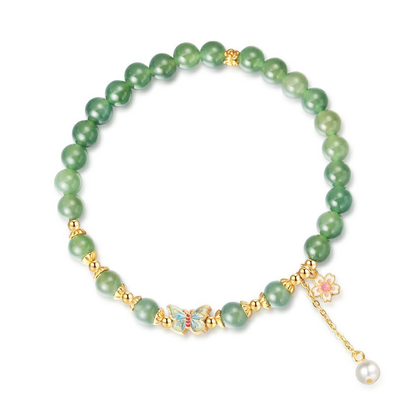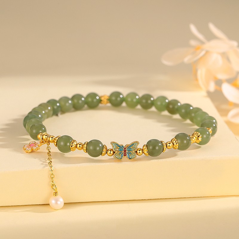 New S925 Silver Natural Yellow Jade Butterfly Bracelet for Women, New Chinese Style High-End Bracelet for Best Friends
