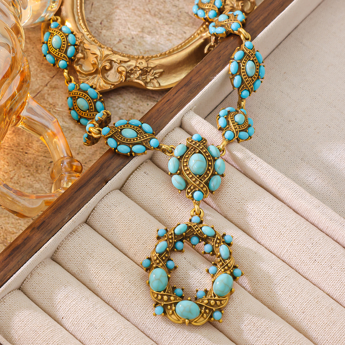 Qingdao Vintage Turquoise Necklace with Real Gold Plating and Inlaid Stones, High-End, Elegant, Versatile, Simple Choker, Retro
