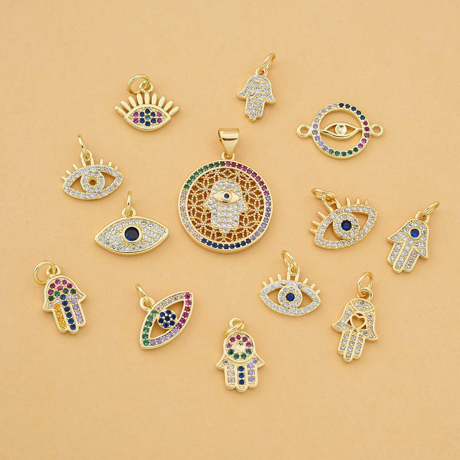 European and American Cross-Border New Turkish Devil's Eye Men's and Women's Necklace Gold-Plated Palm Eye Fatima Pendant Pendant