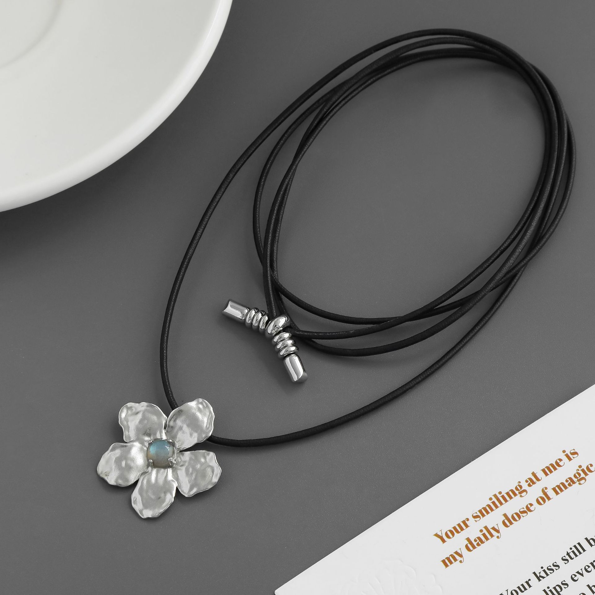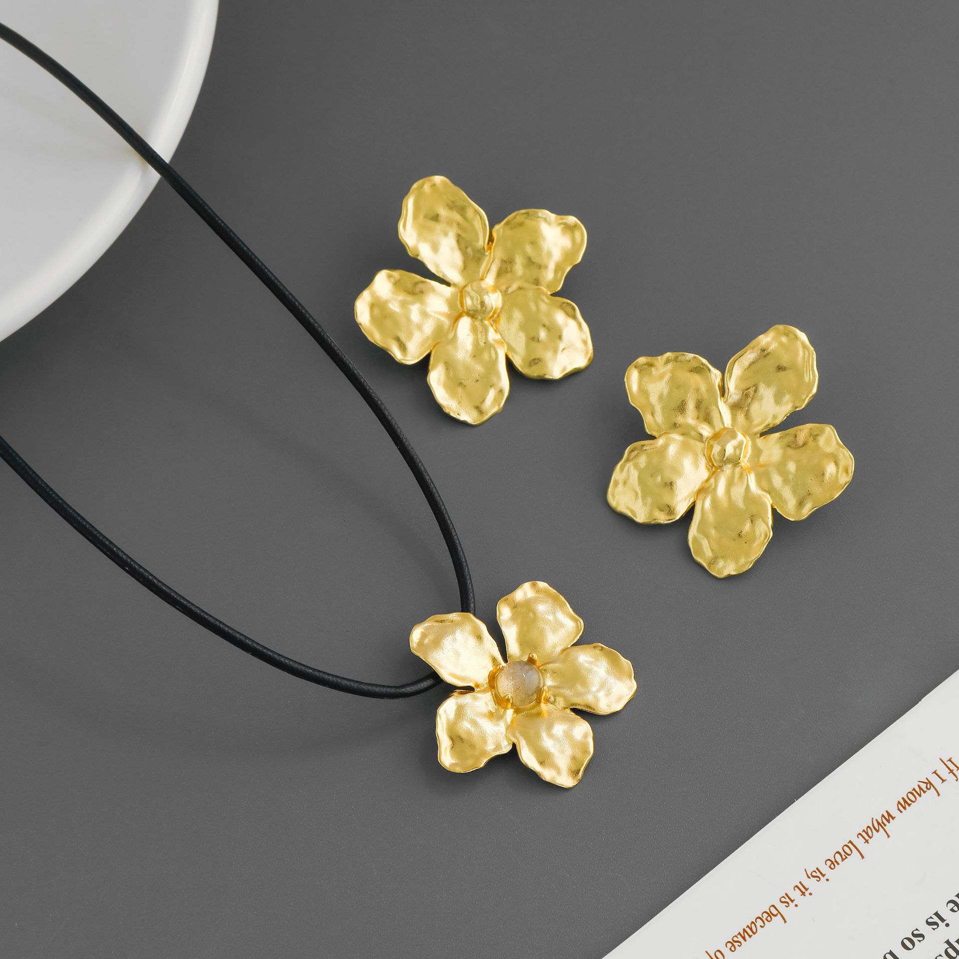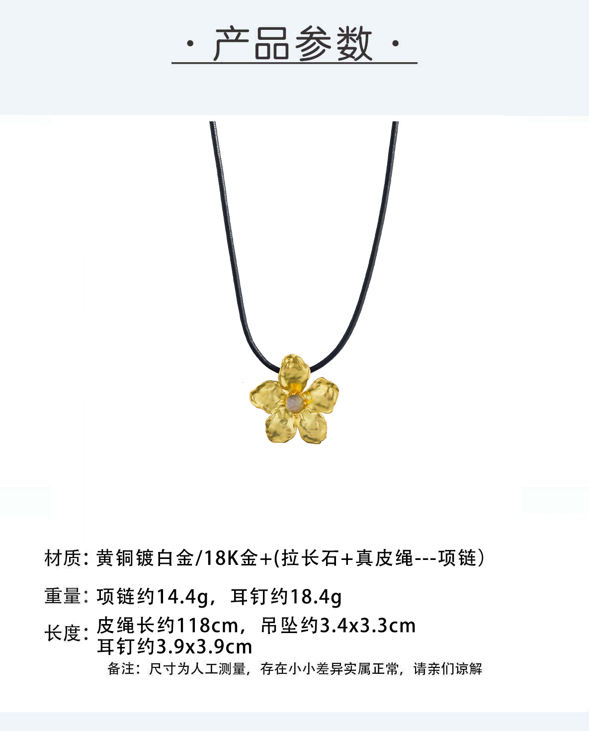 Wens Flower Goddess Series Large Flower Necklace Adjustable Leather Cord High-End Three-Dimensional Flower Earrings Clavicle Chain