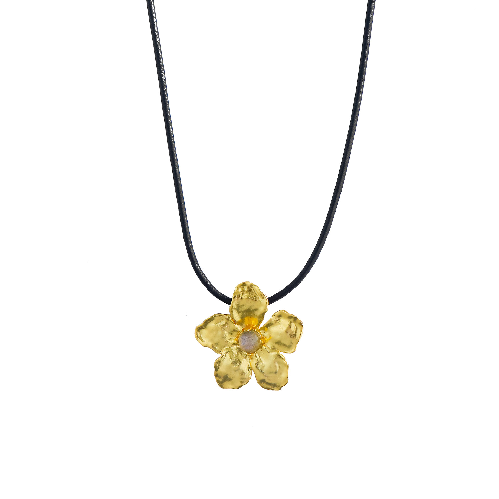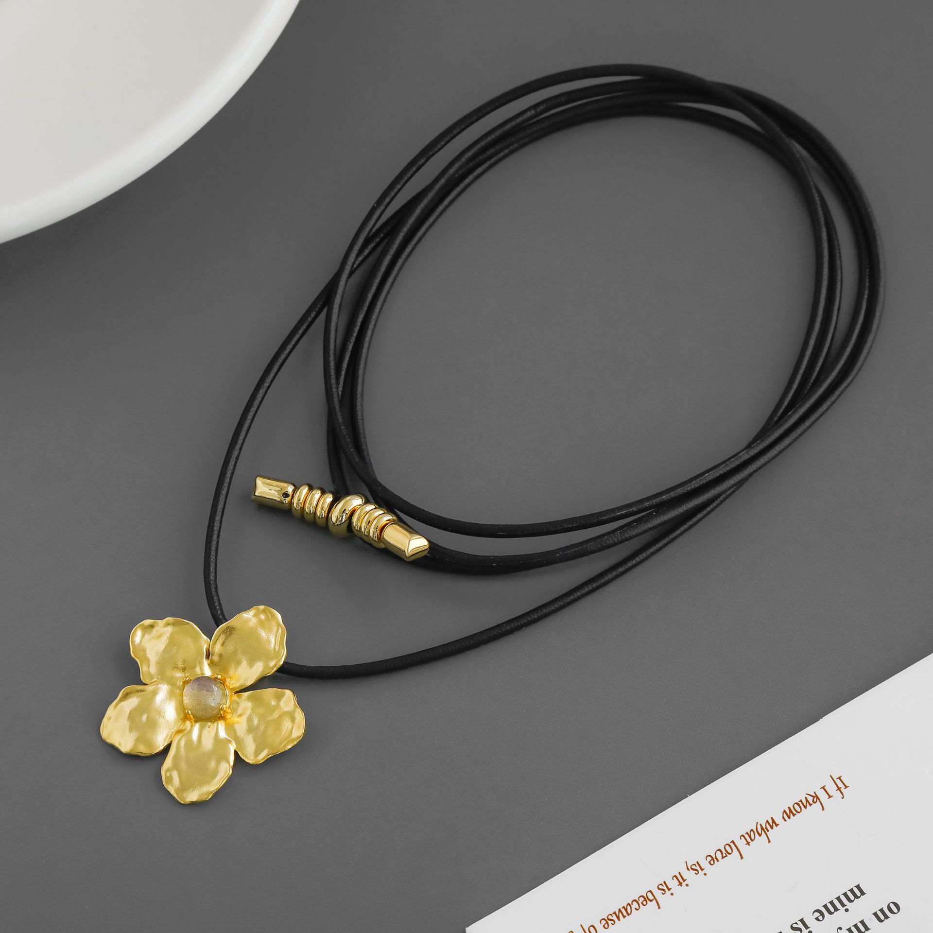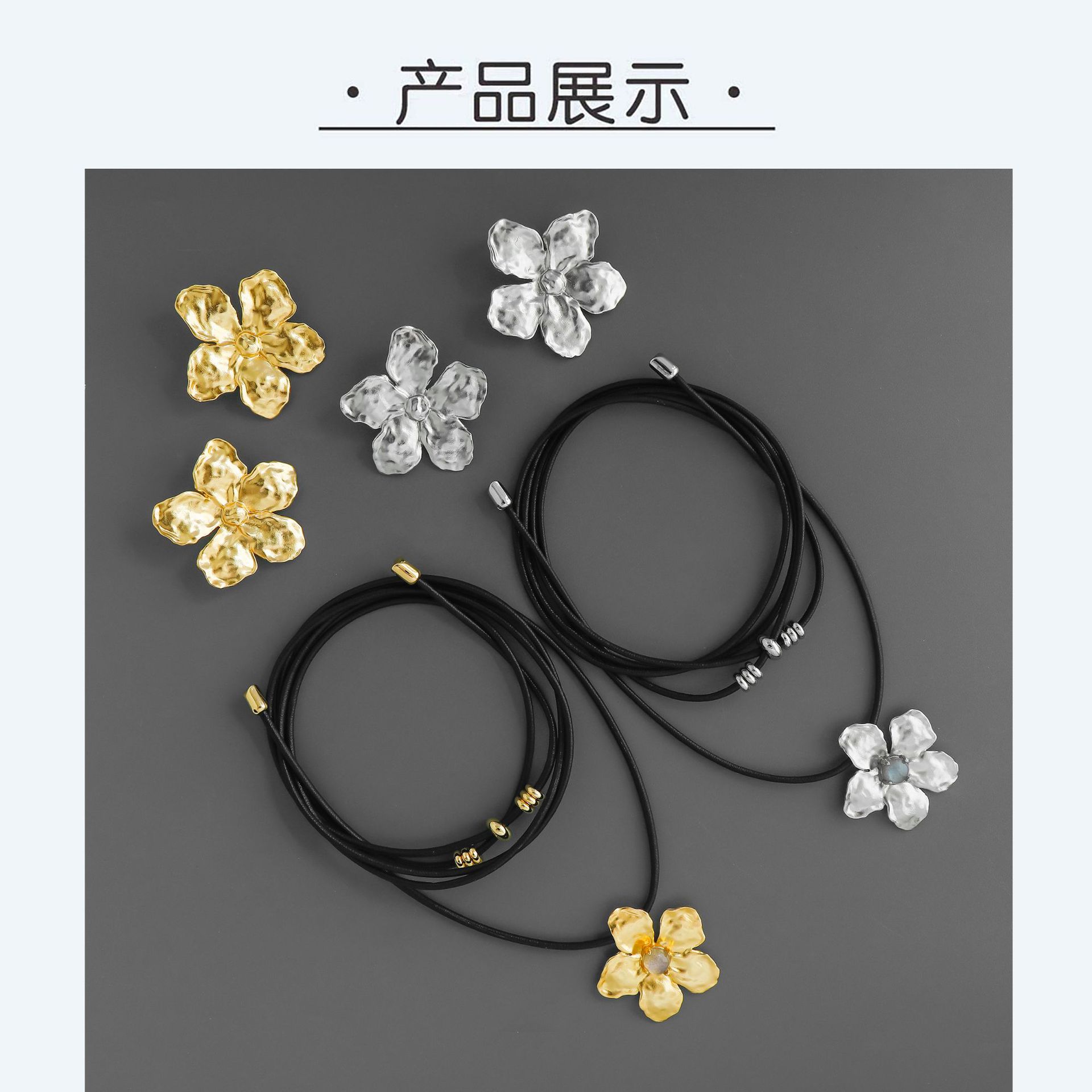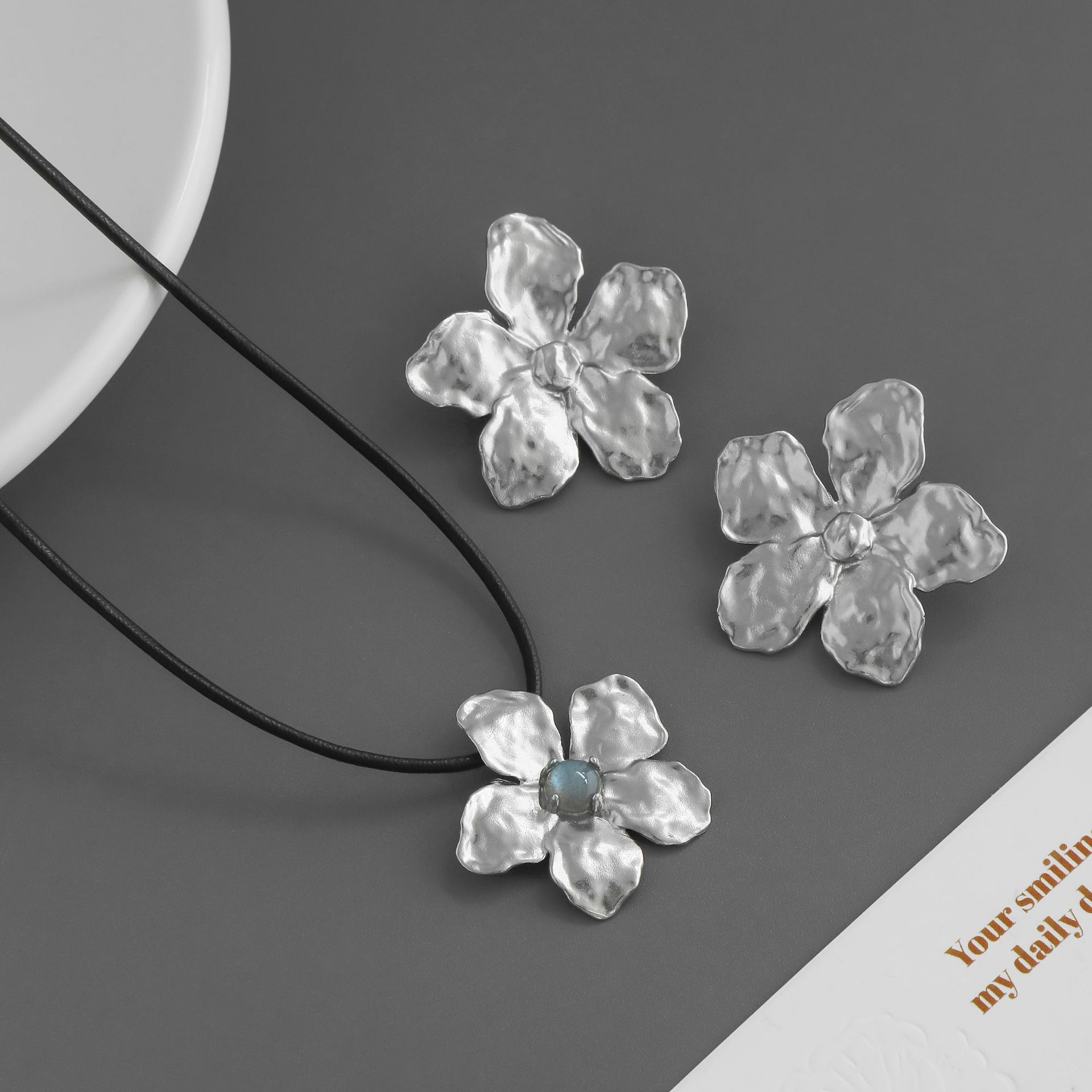 Wens Flower Goddess Series Large Flower Necklace Adjustable Leather Cord High-End Three-Dimensional Flower Earrings Clavicle Chain