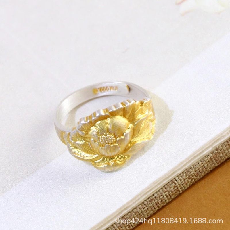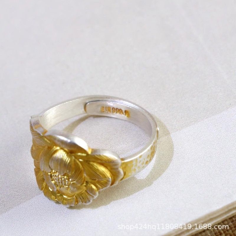 Peony Flower Ring Women's Open Adjustable Index Finger Ring High-End Ring Jewelry