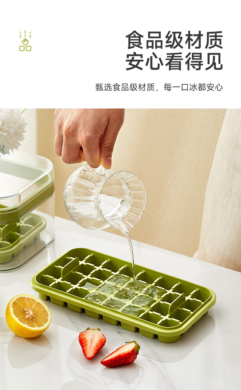 按压制冰盒食品级硅胶带盖冰箱冻冰块自制冰块模具储冰盒