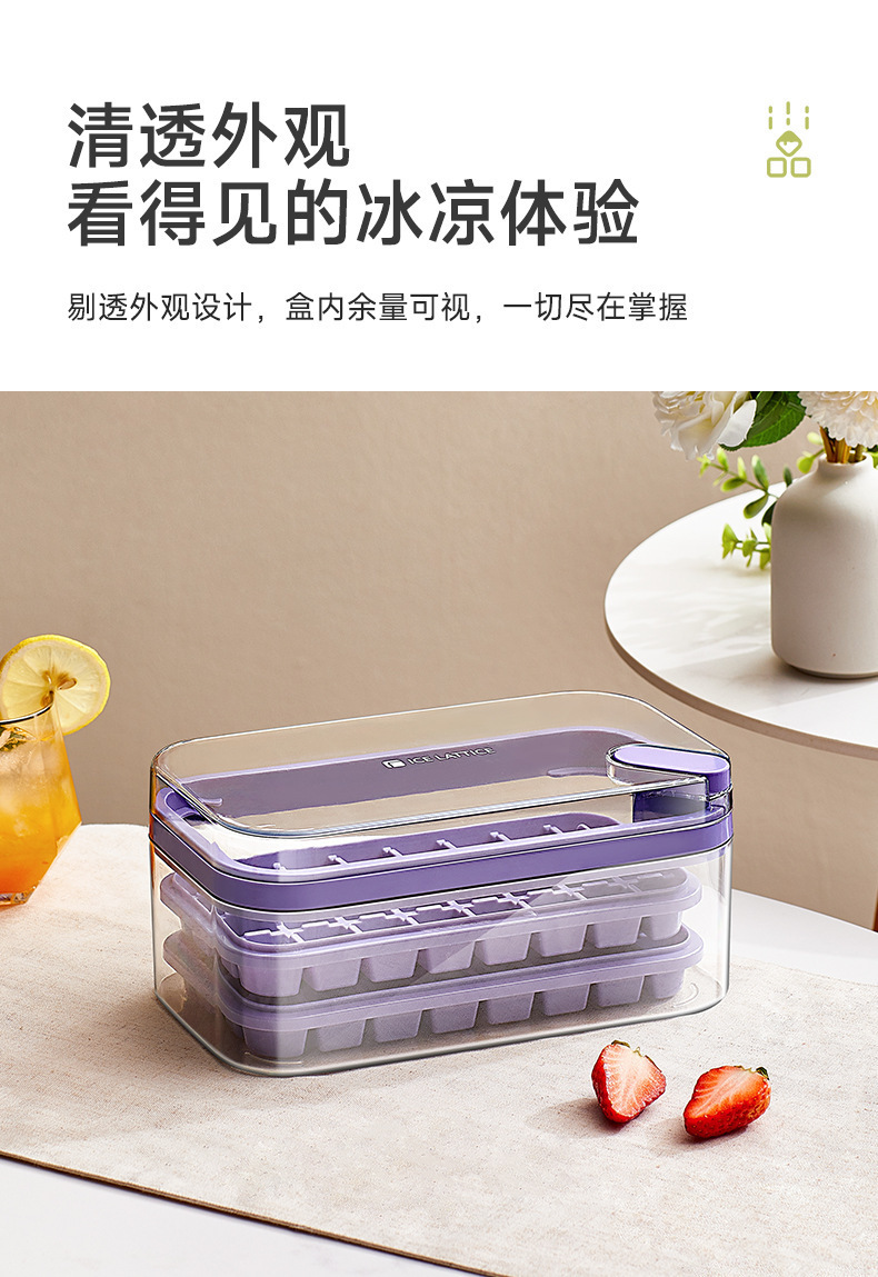 妙咔出冰冰盒一键脱冰易脱模冰格辅食冰块模具diy冰格带盖储冰盒
