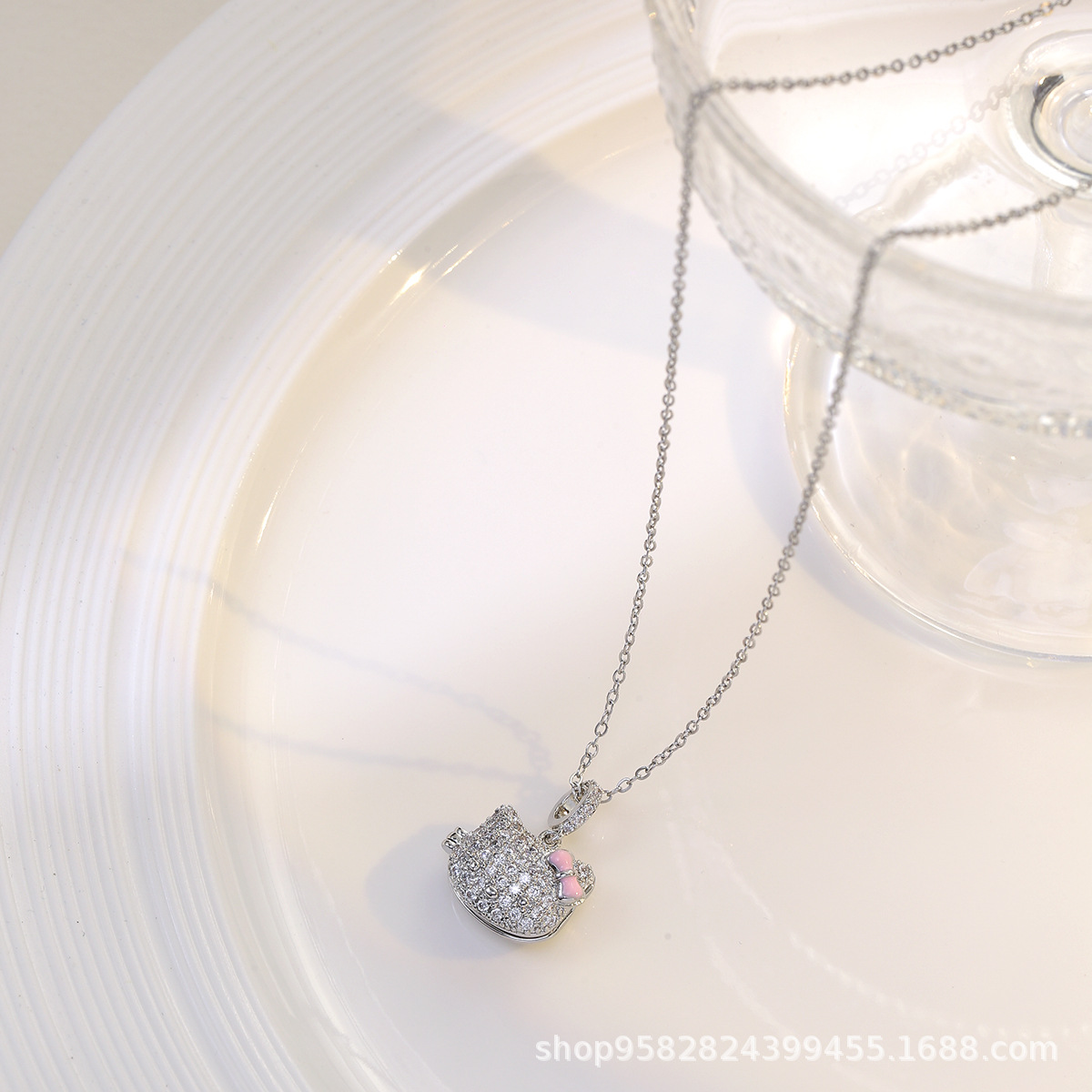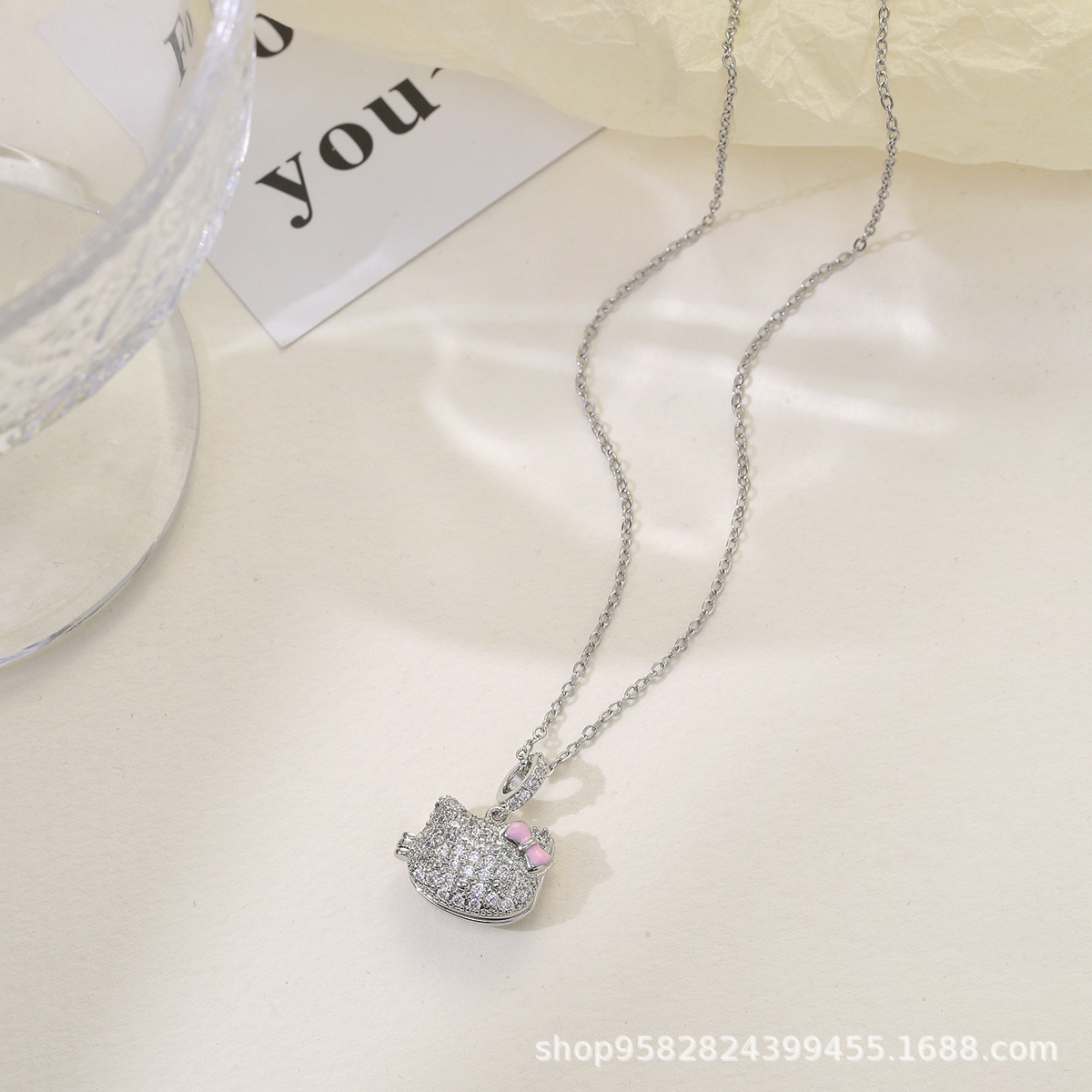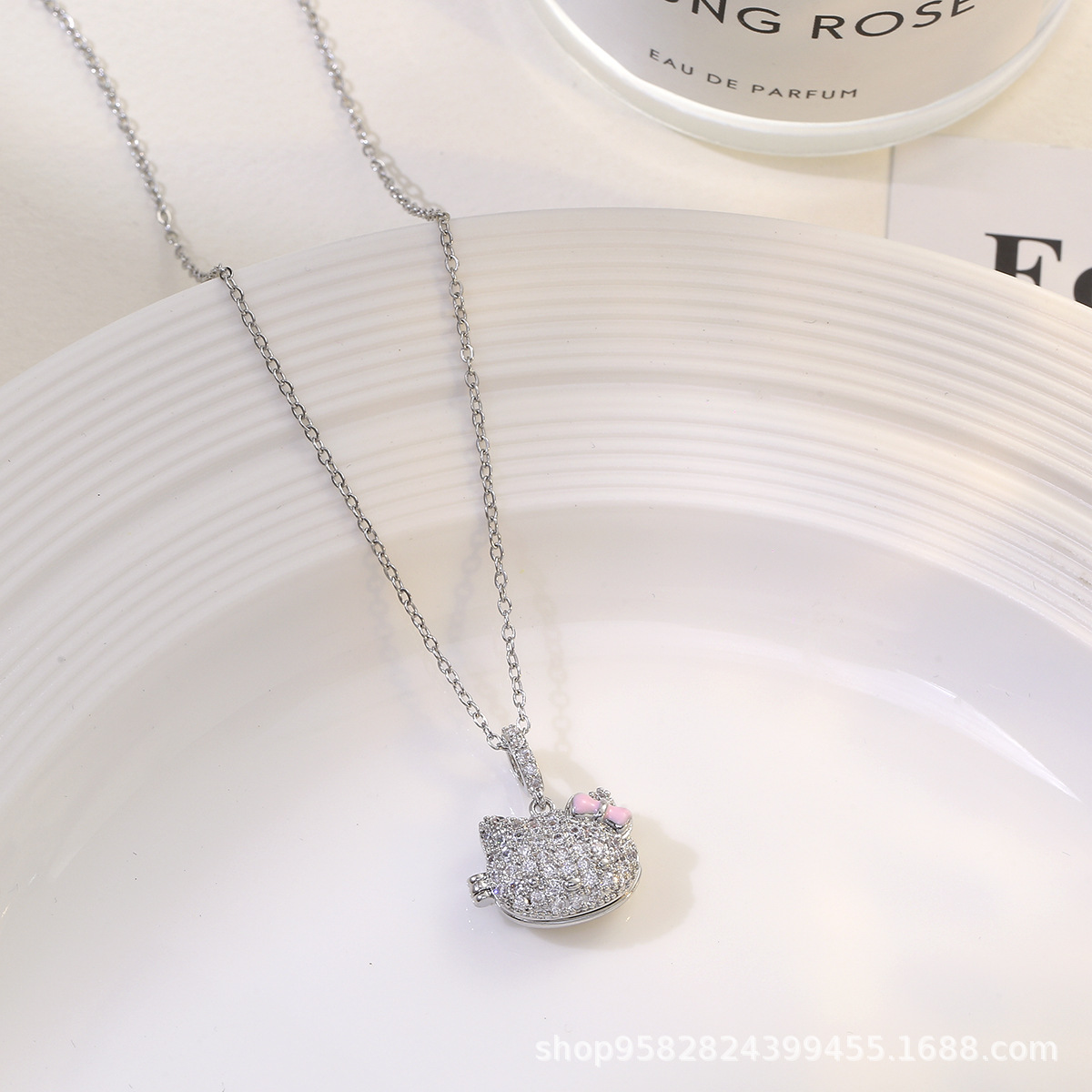 New Style Cat Necklace with Diamonds, Fashionable, Cute and Sweet Style Long Necklace, Autumn and Winter Clavicle Chain Pendant That Can Be Opened