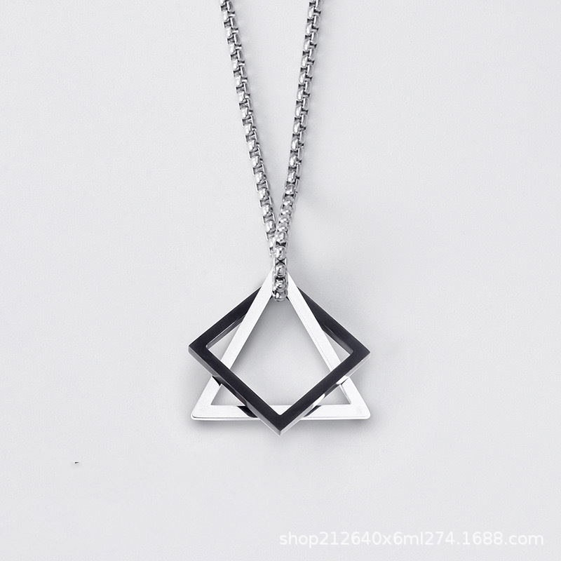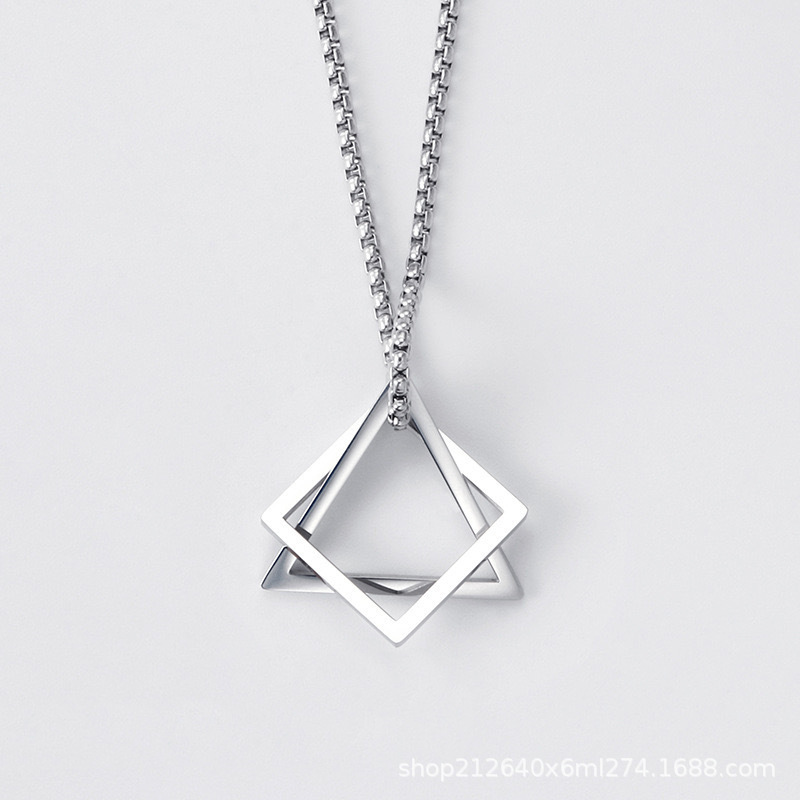 Geometric Pendant Titanium Steel Necklace for Men and Women Trendy Ins Hip-Hop Boys Light Luxury Niche Simple Versatile Jewelry Sweater Chain