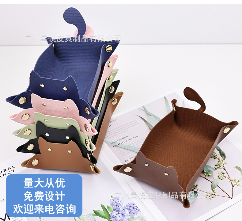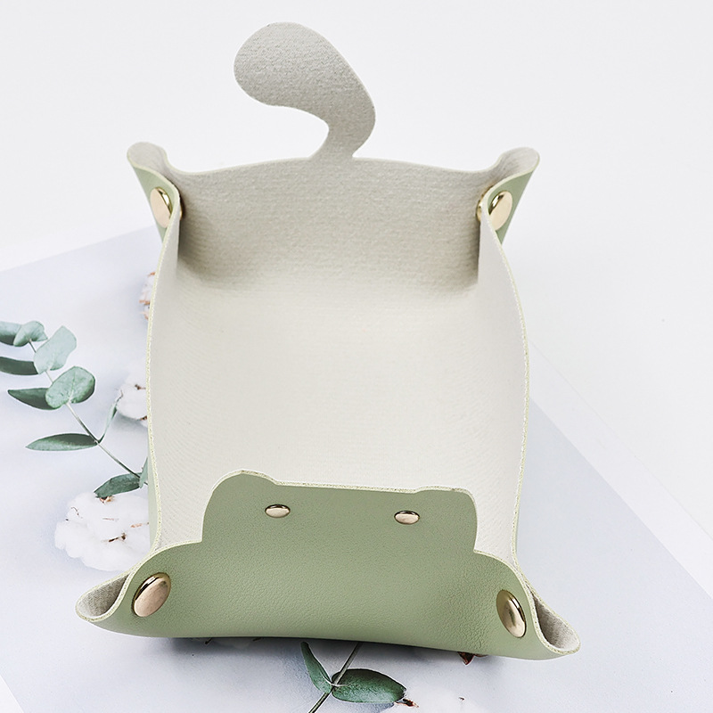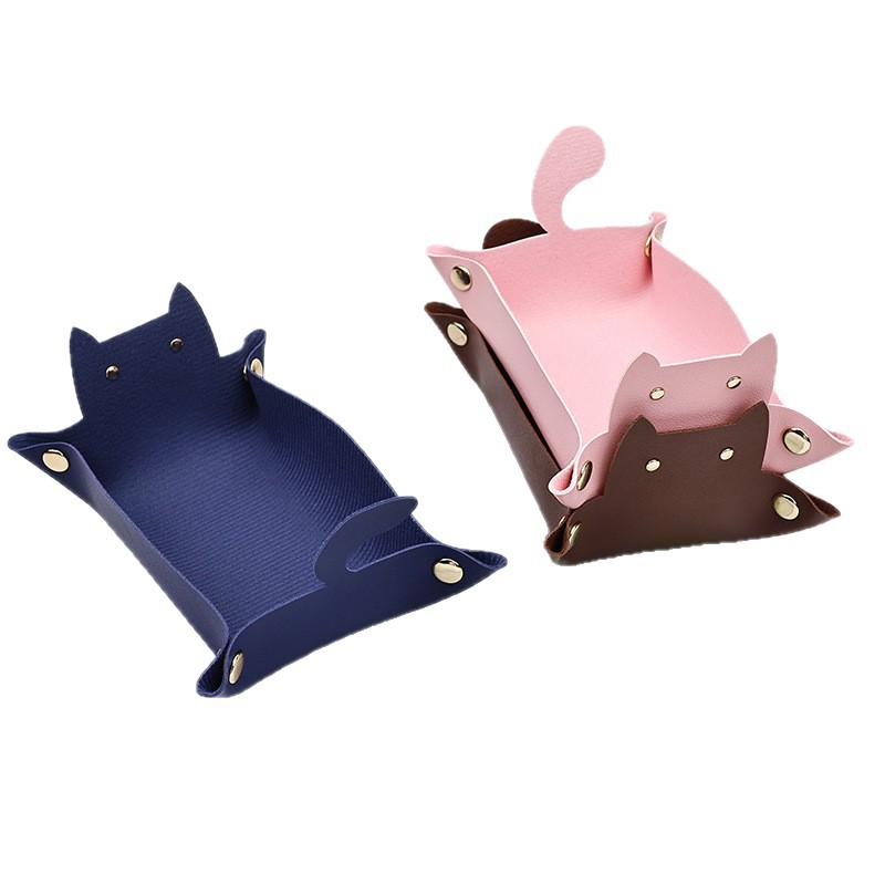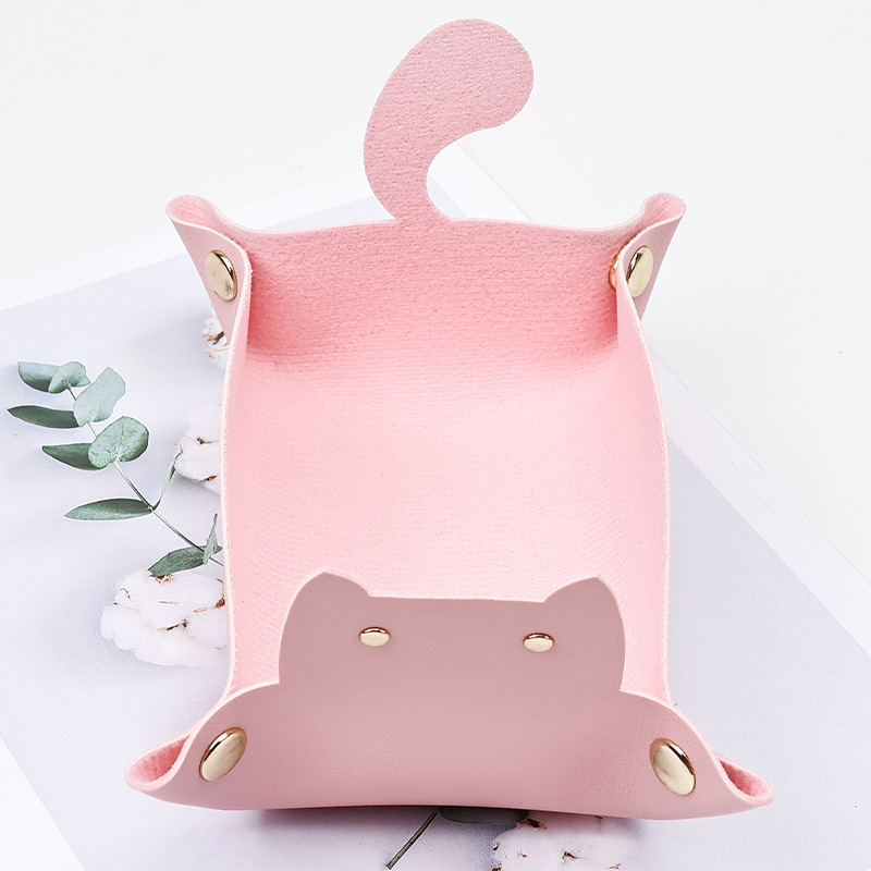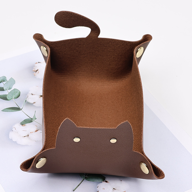 Creative Leather Storage Box Cute Cat Ins Style Entrance Key Storage Tray Desktop Sundry Jewelry Storage Box
