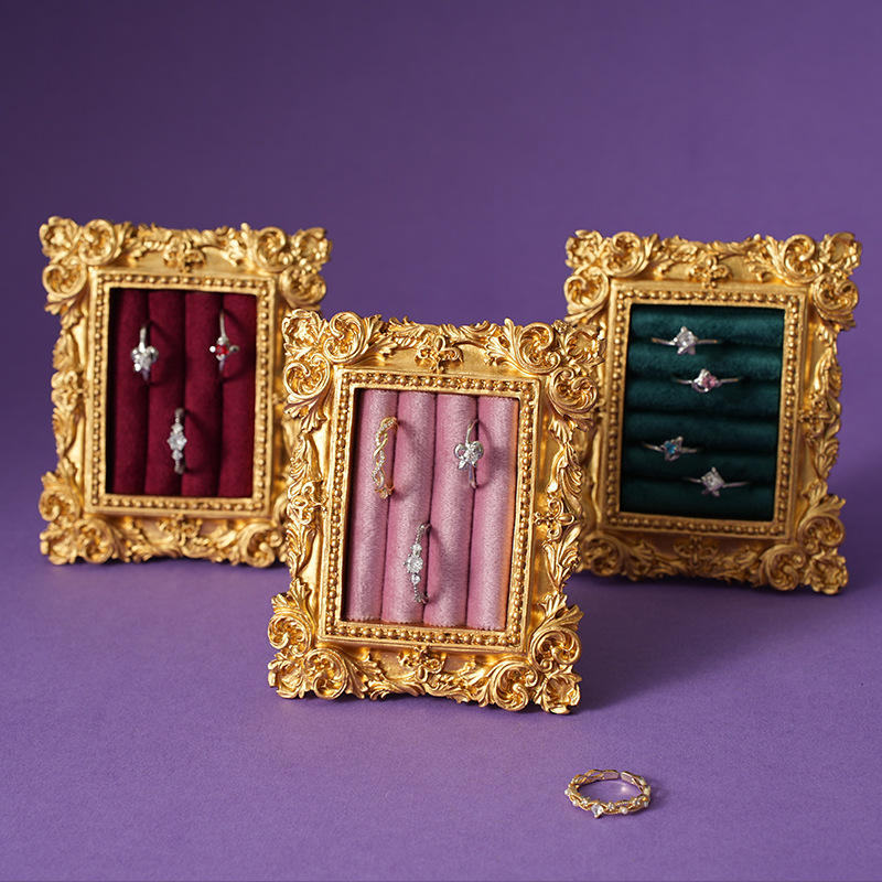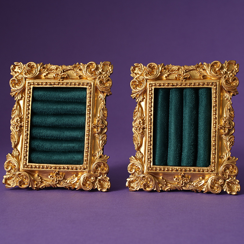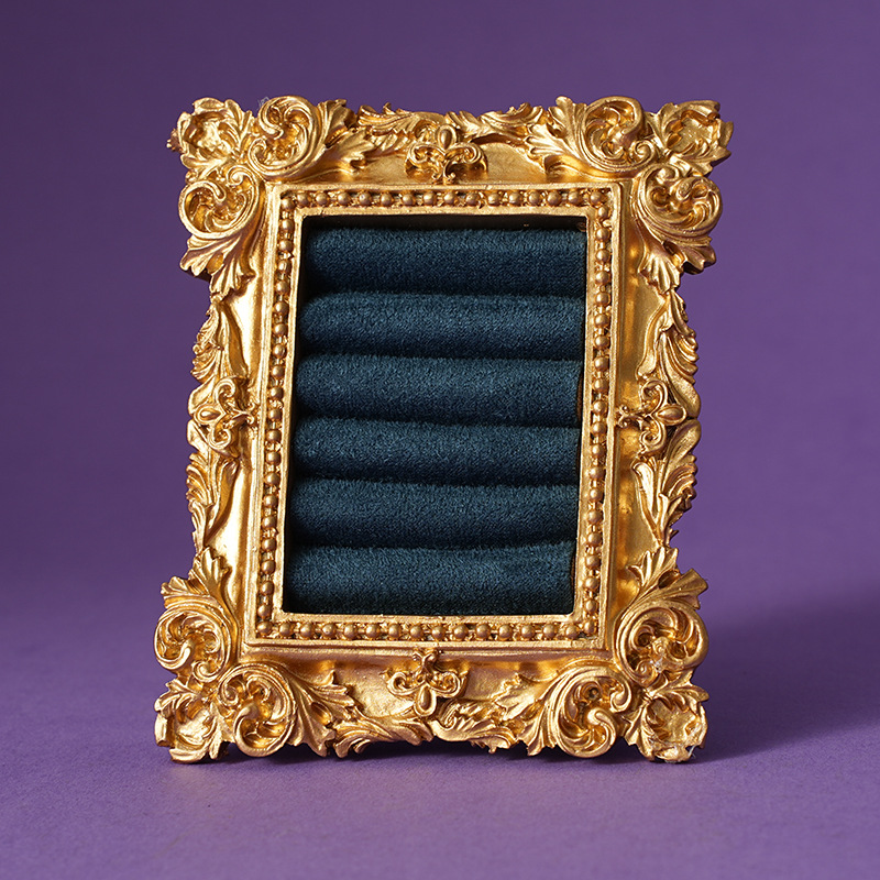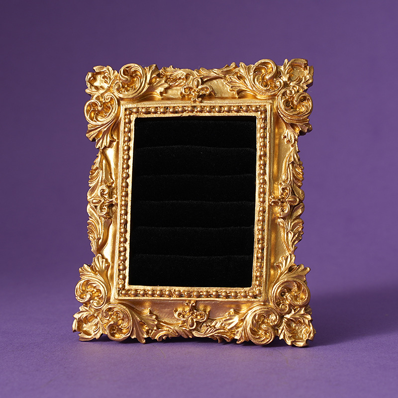 European Retro Mini Photo Frame Ring Storage Tray Bronze Resin Hollow Jewelry Positioning Frame Photo Props