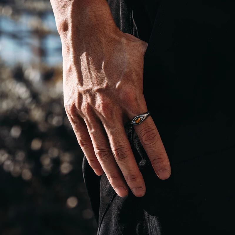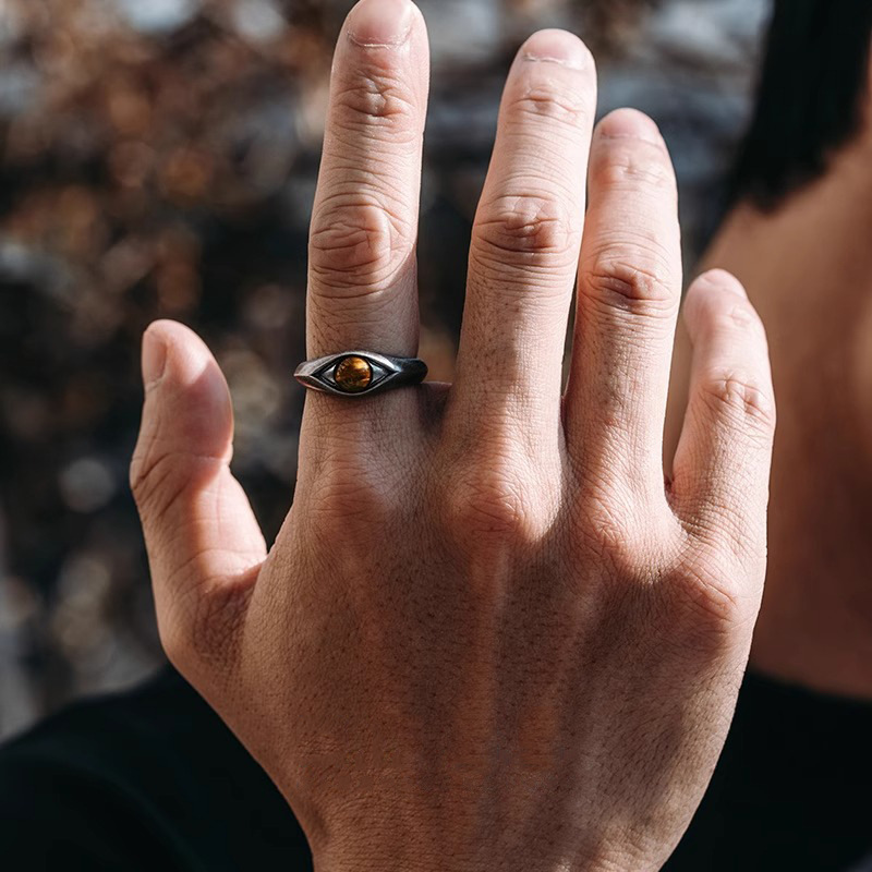 Vintage Textured Oval Tiger Eye Stone Ring for Women, Simple and Luxurious Versatile Adjustable Open Index Finger Ring, New Trend