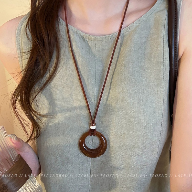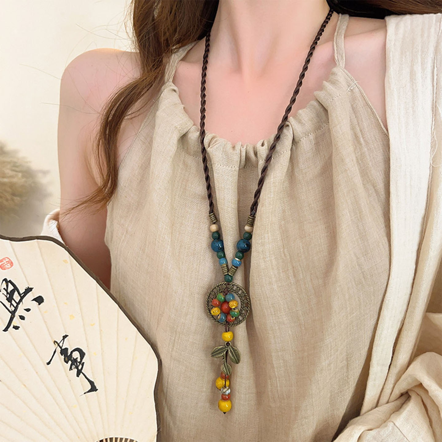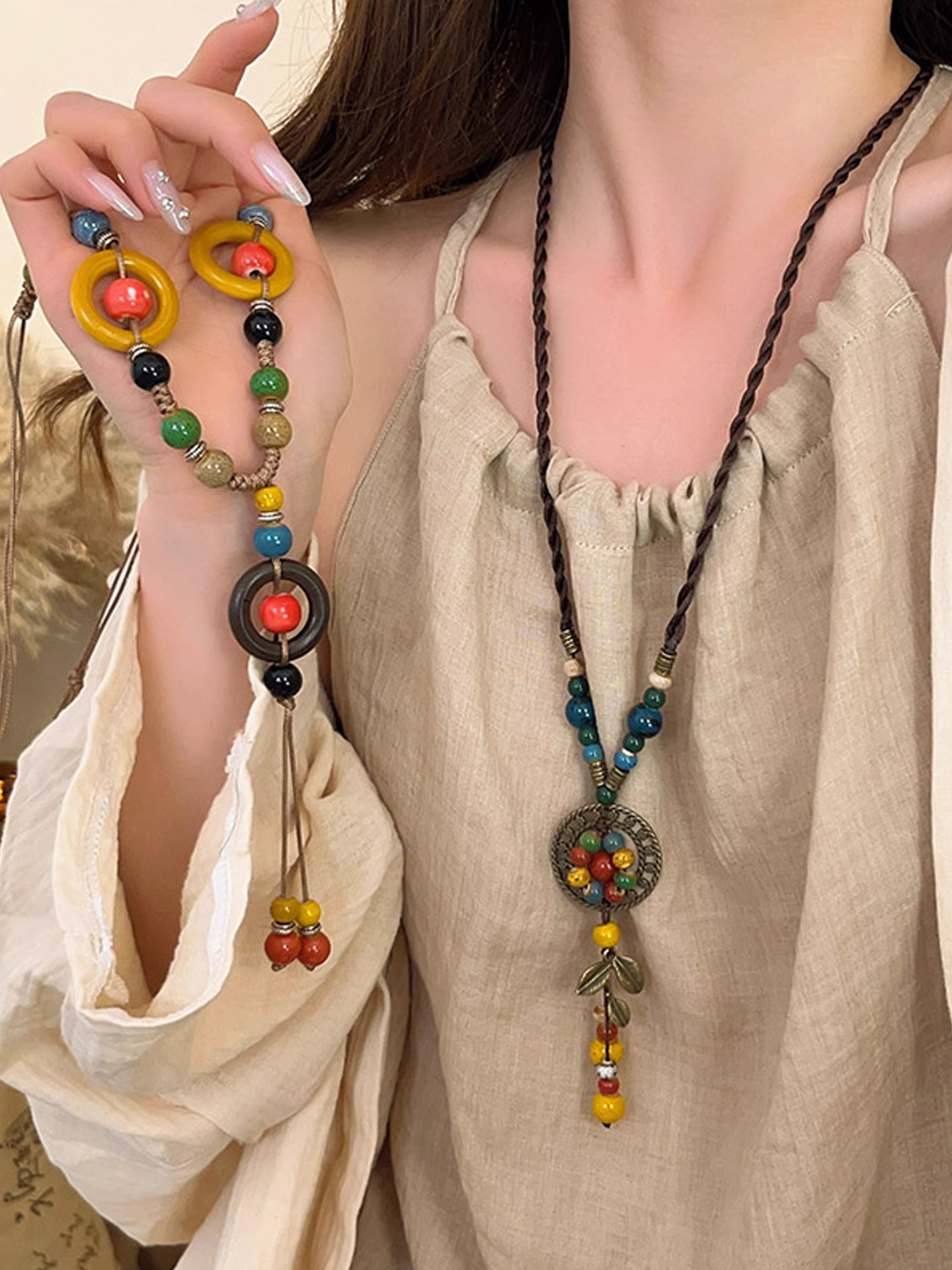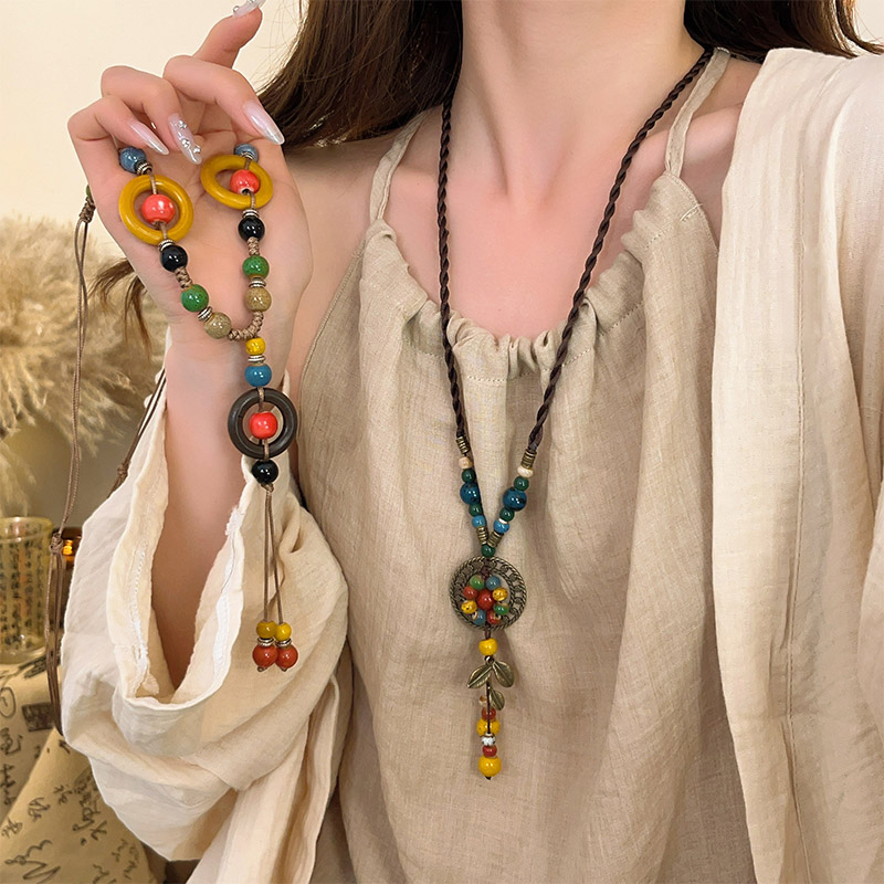 Color: 32#Big wooden lotus fruit random beaded necklace
