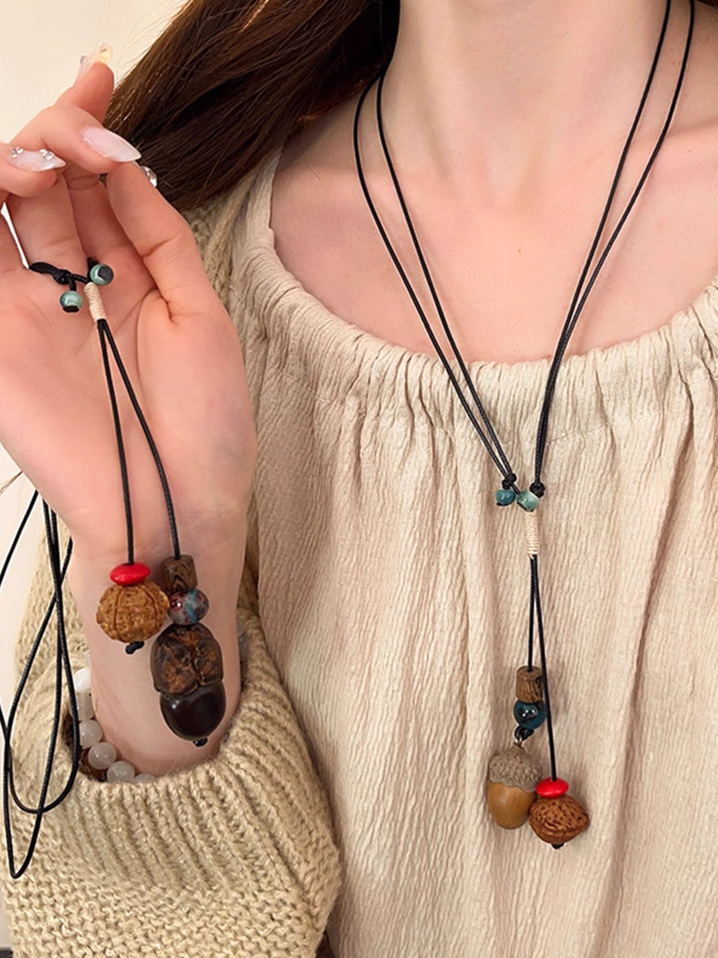 Color: 31#Random beaded pendant necklace with large and small acorns