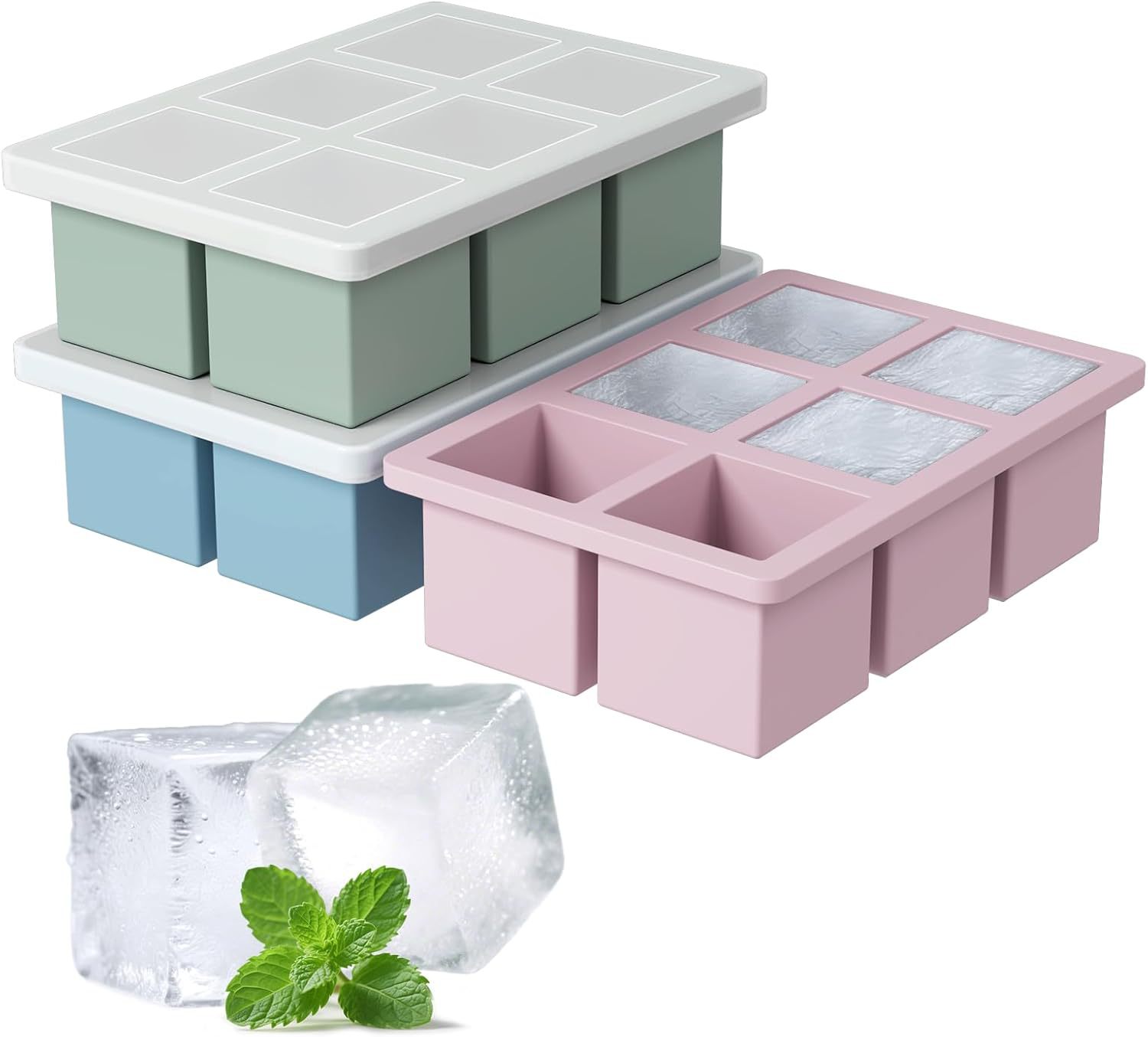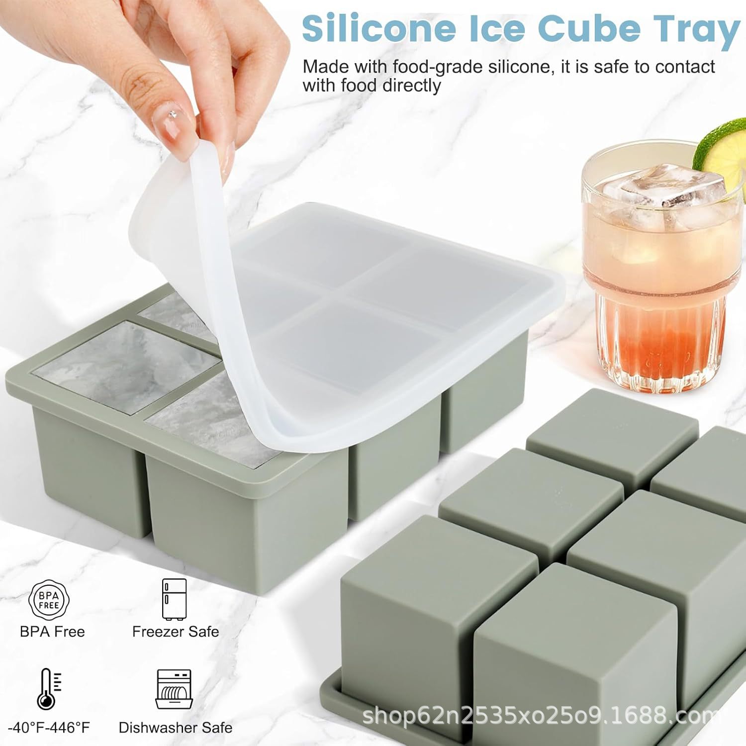 Color: 2025 new independent compartment 5cm large ice cube silicone support [morandi green 4 compartments]