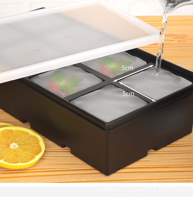 Color: Independently divided 5cm large ice cube wrapped in iron support [black 4 grids]