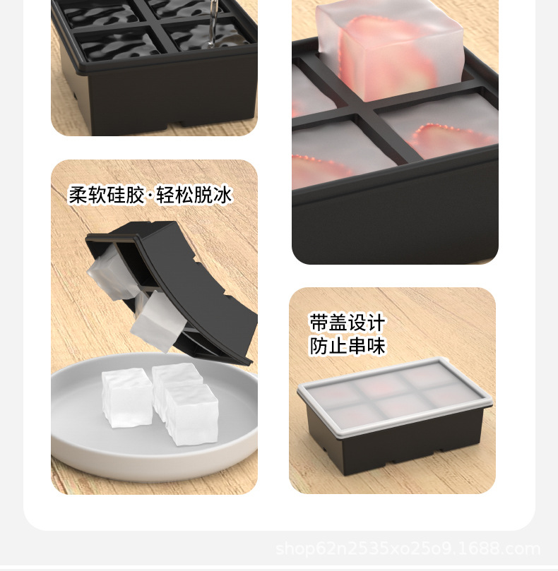 Color: Independently divided 5cm large ice cube wrapped in iron support [black 6 grids]