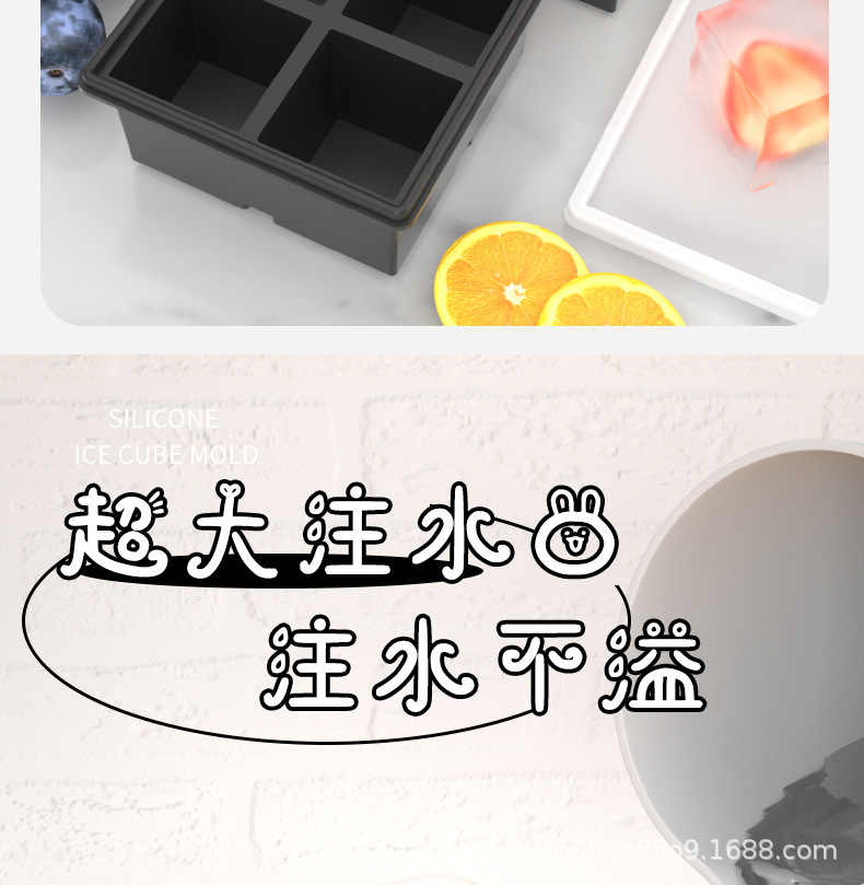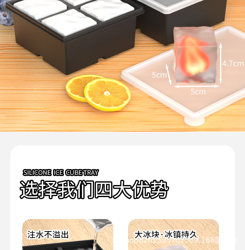 Color: 2025 new independent compartment 5cm large ice cube silicone support [black 4 compartments]