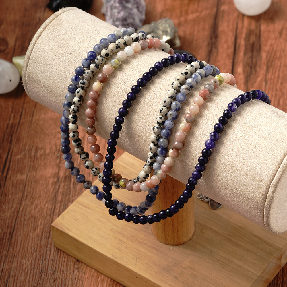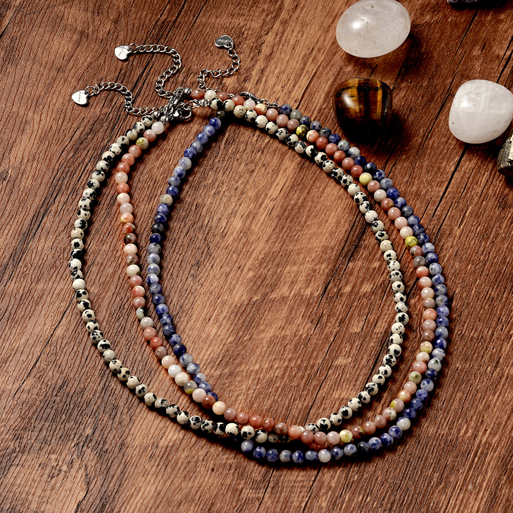 4mm Amazonite Beaded Necklace Blue Stone Indian Agate Natural Stone Women's Fashion Clavicle Chain Does Not Fade