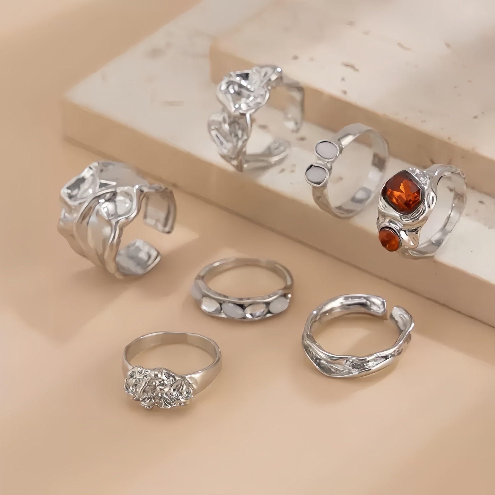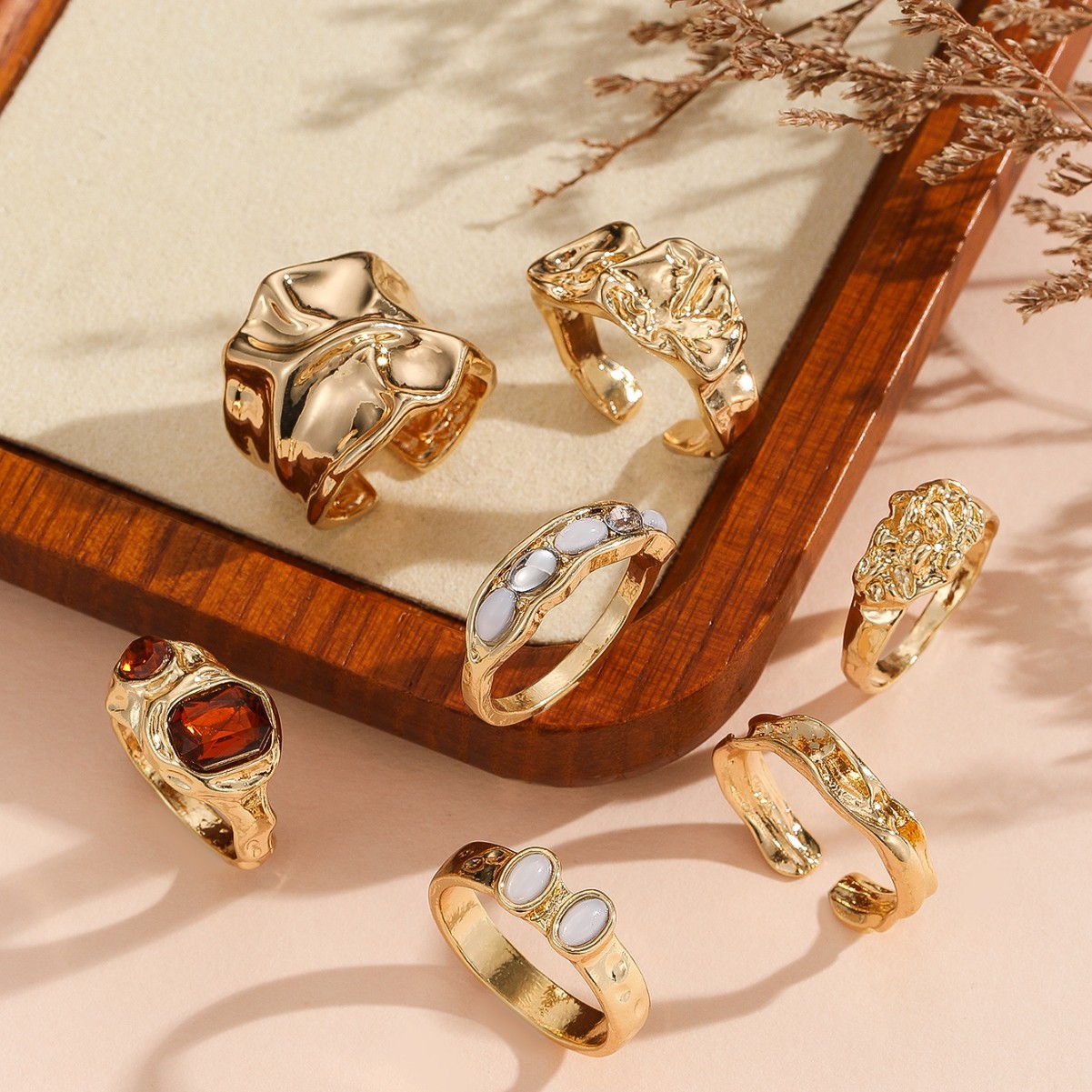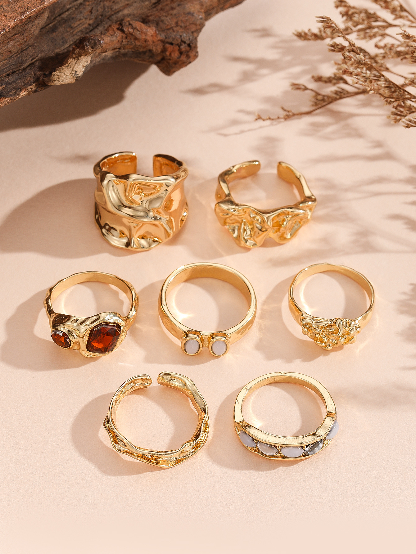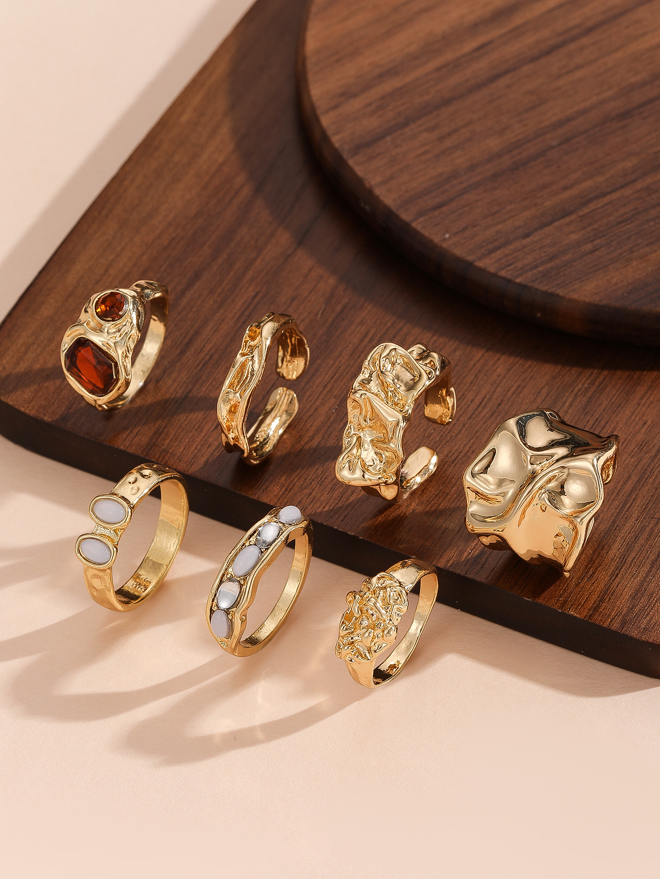 Cross-Border Rings, Popular Ins-Style, Unique 7-Piece Set, Liquid Lava Irregular Moonstone European and American Ring Set for Women