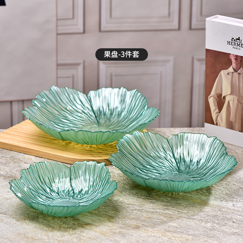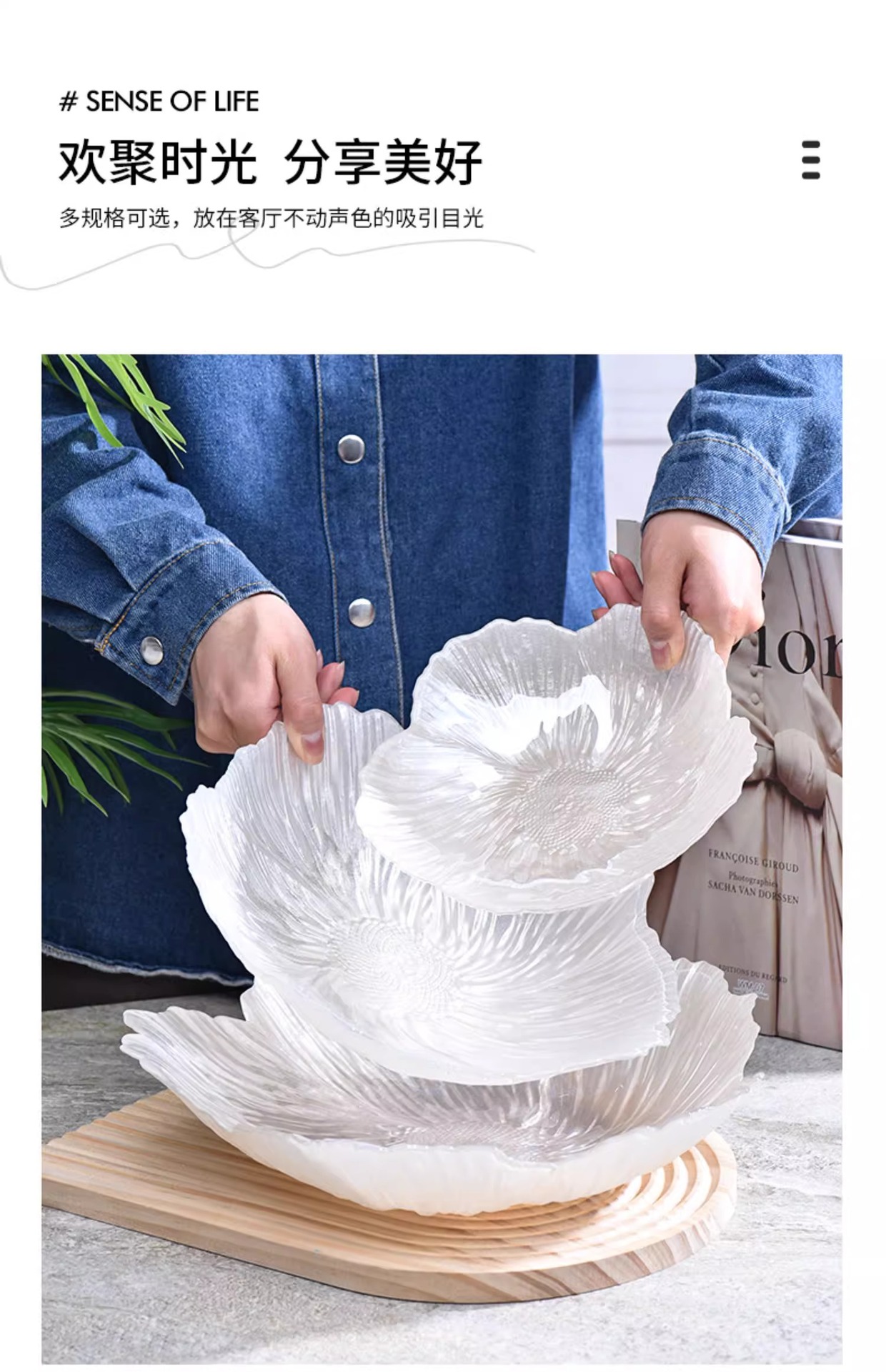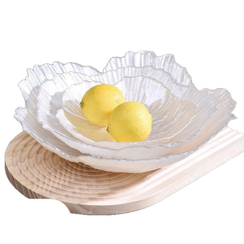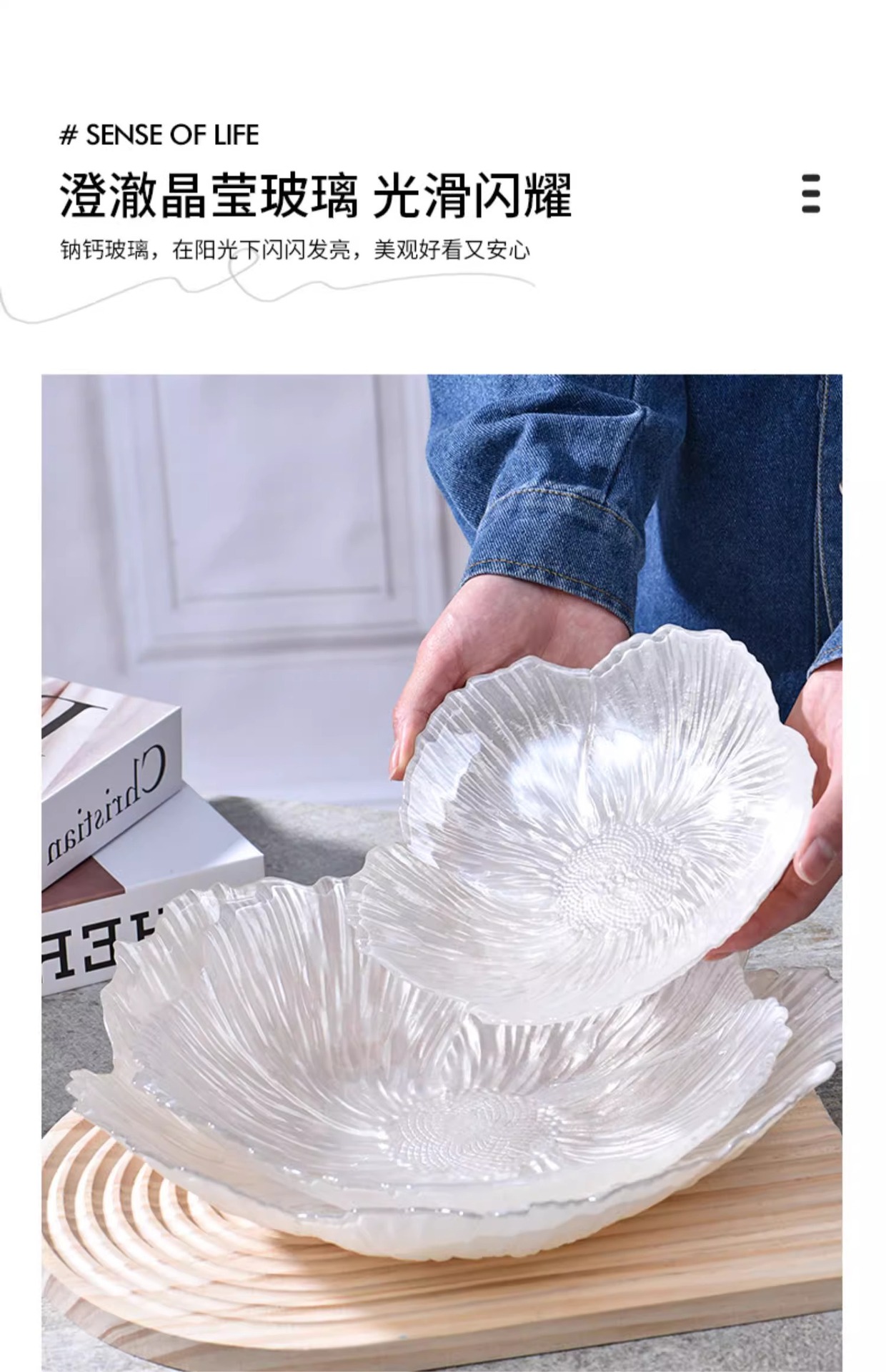European Flower Crystal Glass Fruit Plate Household Snack Candy Plate Pearlescent White High-Value Dry Fruit Plate Snack Plate