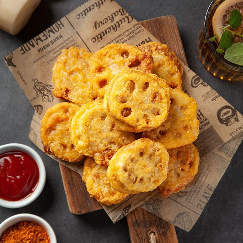 3 Packs of Crispy Golden Lotus Root Sticks, Hubei Specialty Lotus Root Chicken Sticks, Lotus Root Cakes, Fried Snacks, Semi-Finished Dishes for Hotels