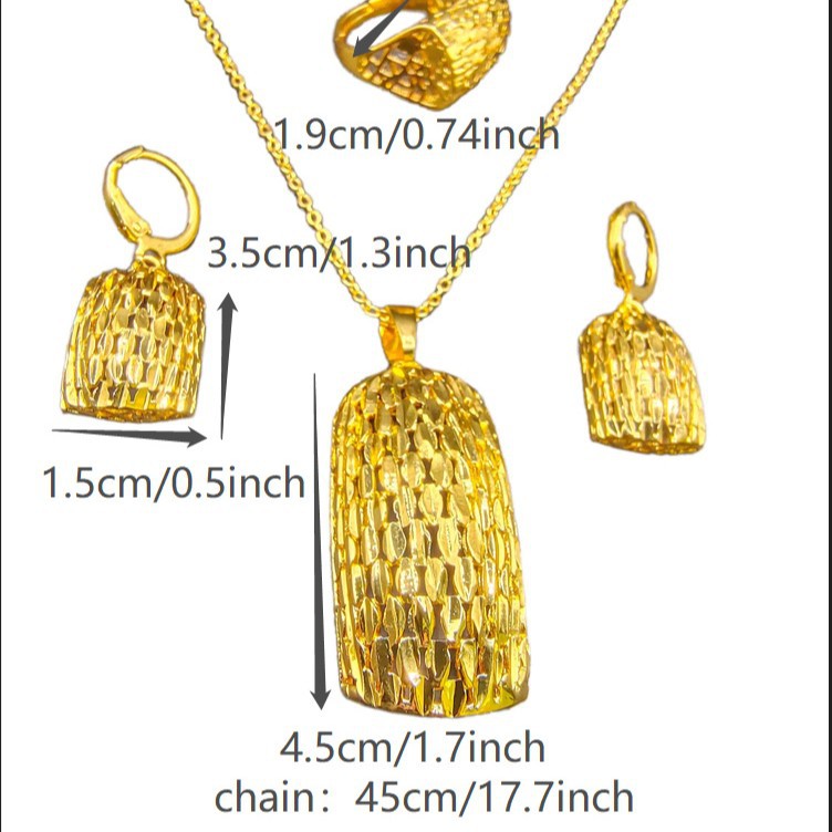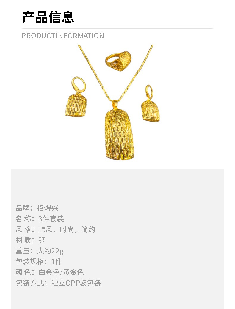 Dubai Bridal Luxury Jewelry Set Women's Wedding Gold Sparkling Retro Necklace Earrings Ring Three-Piece Set