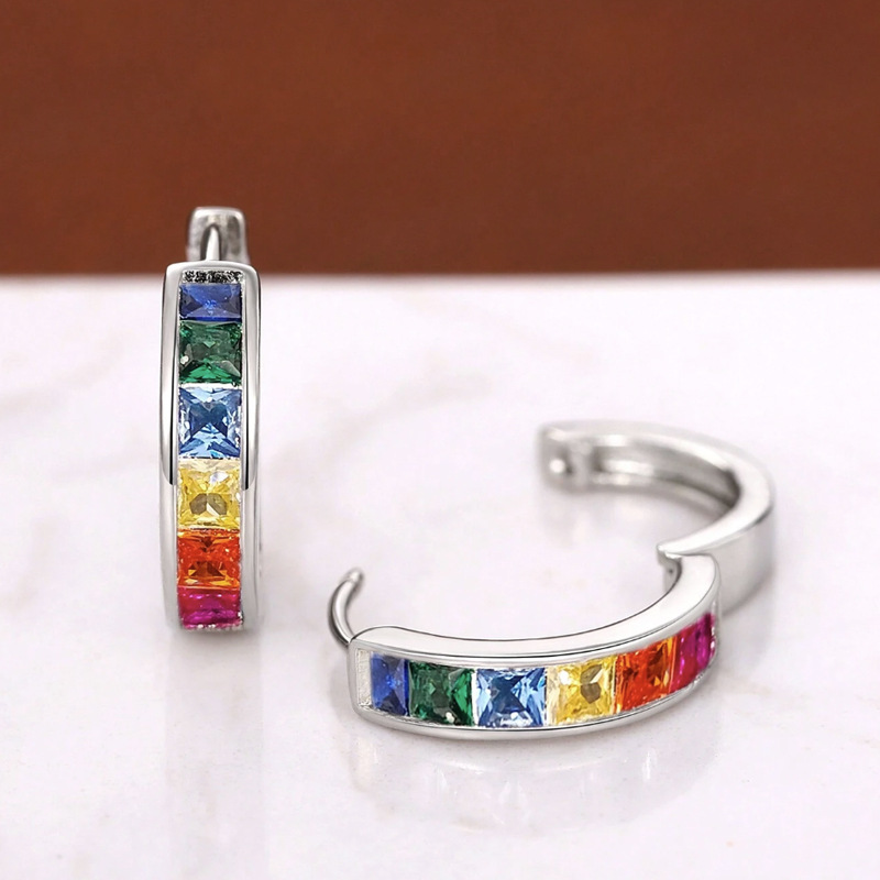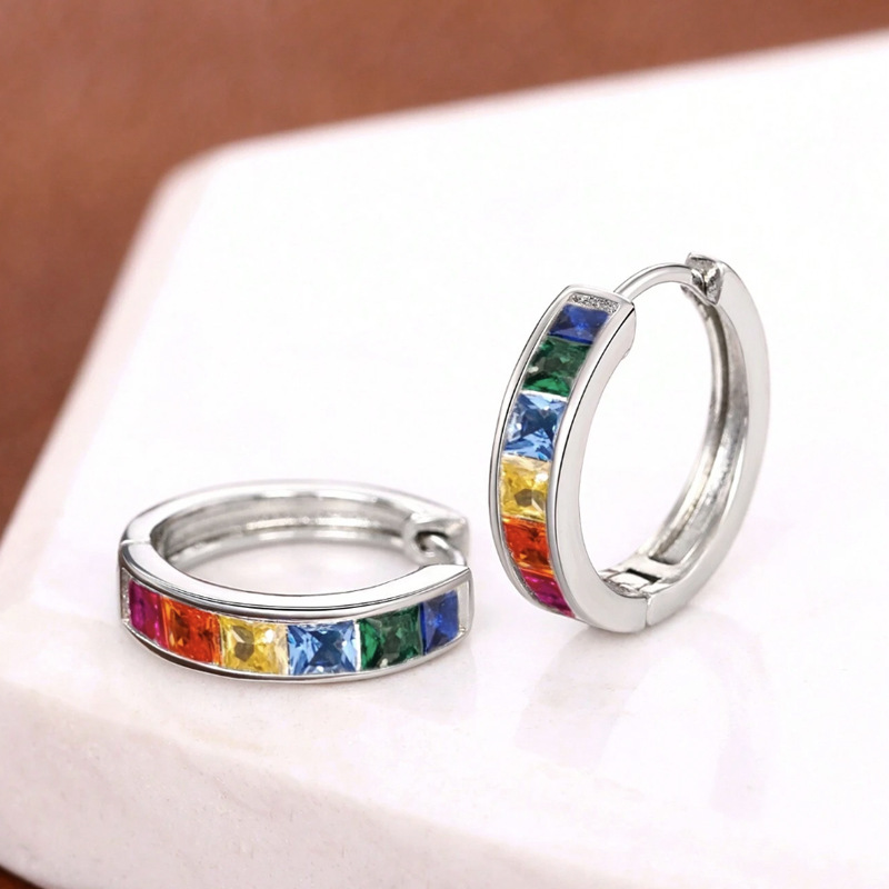 European and American Aliexpress Cross-Border Hot-Selling Diamond-Encrusted Square Color Zircon Earrings for Women, Light Luxury Fashion Earrings, Earrings and Jewelry