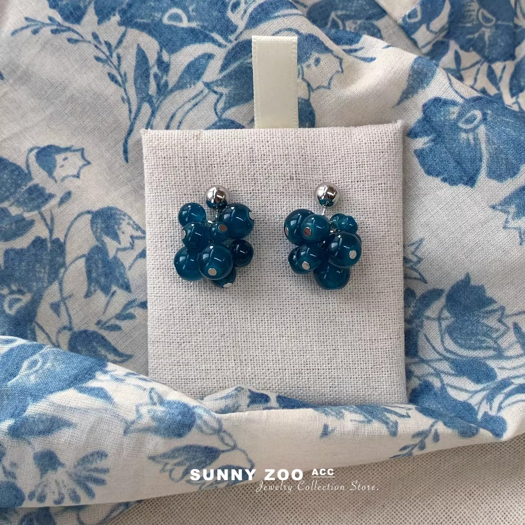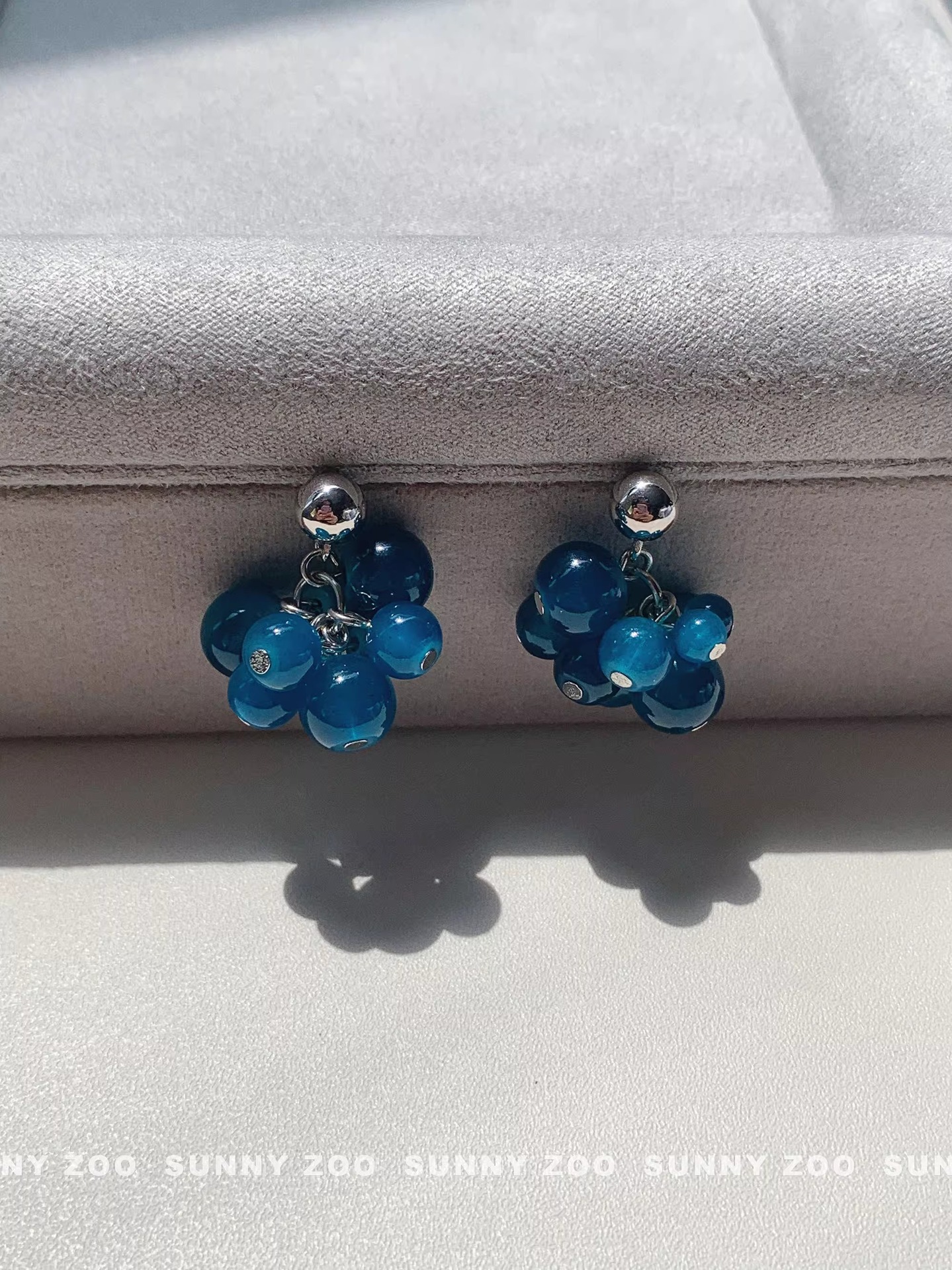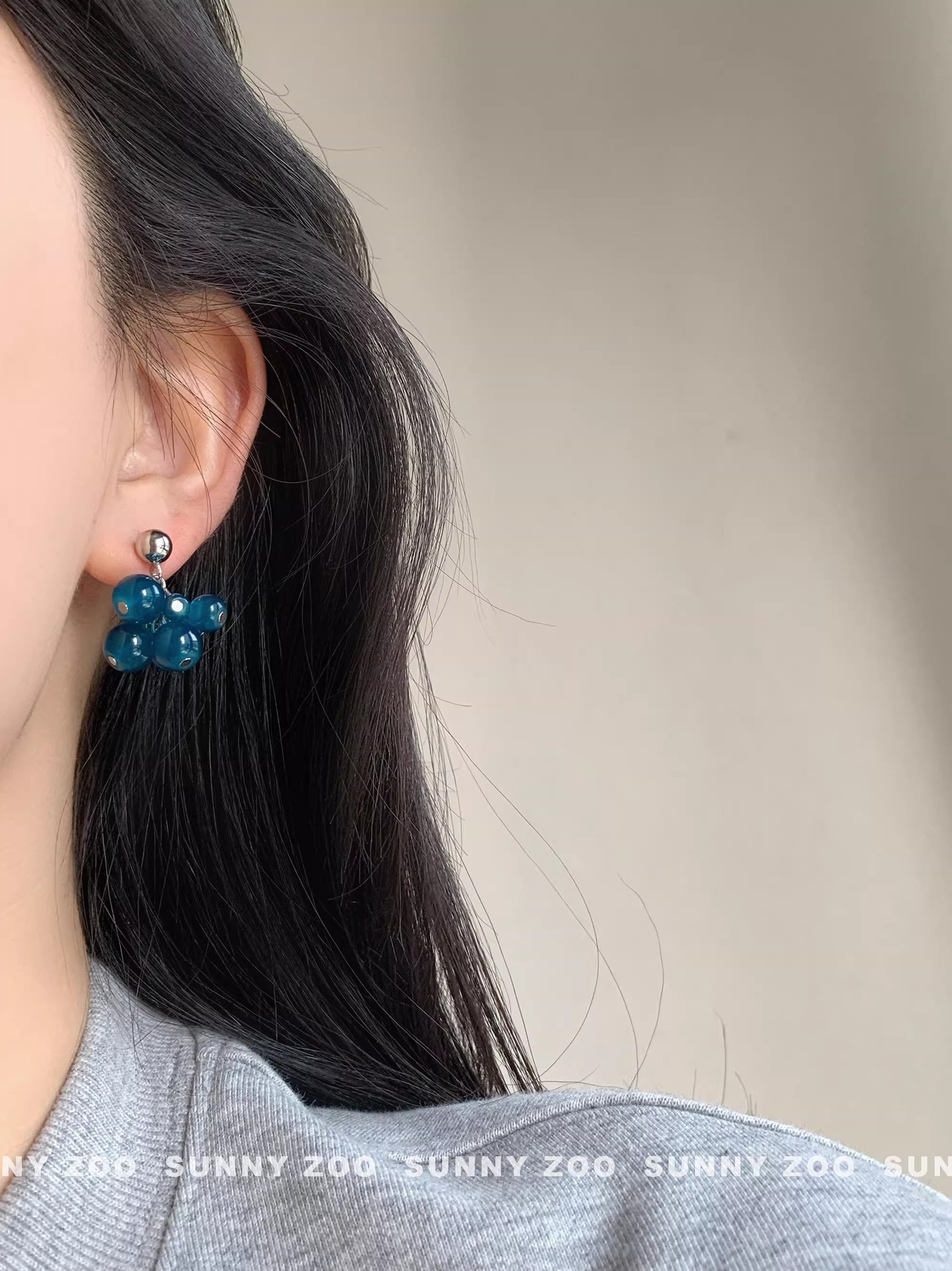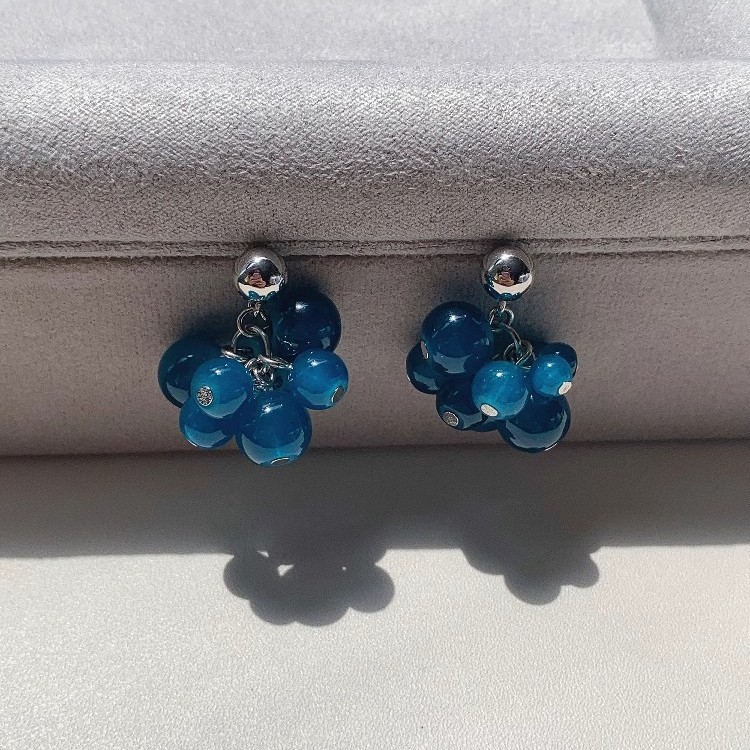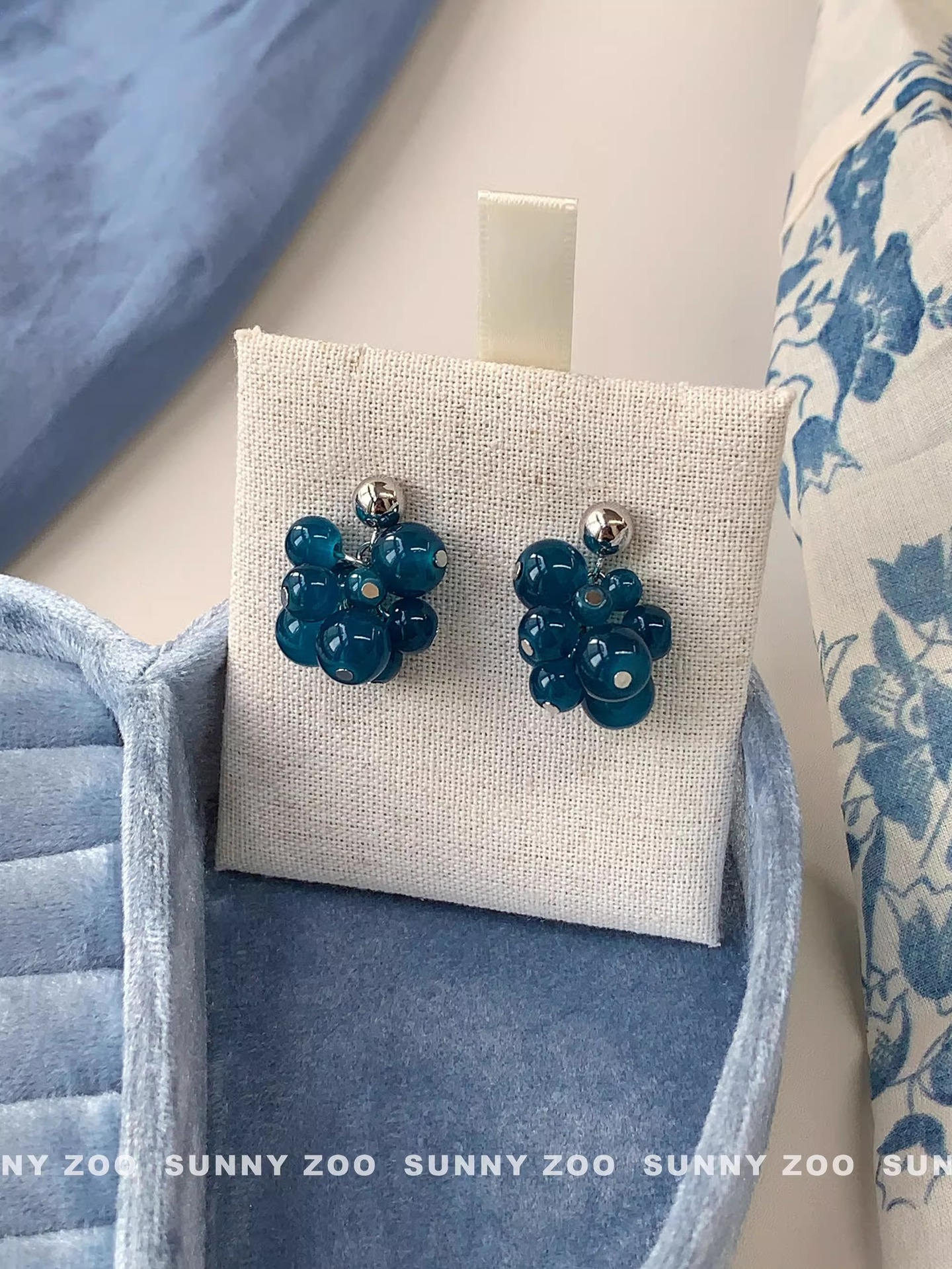 Turquoise Homemade Natural Stone Grape Beaded Earrings Korean Ins Niche Elegant Earrings