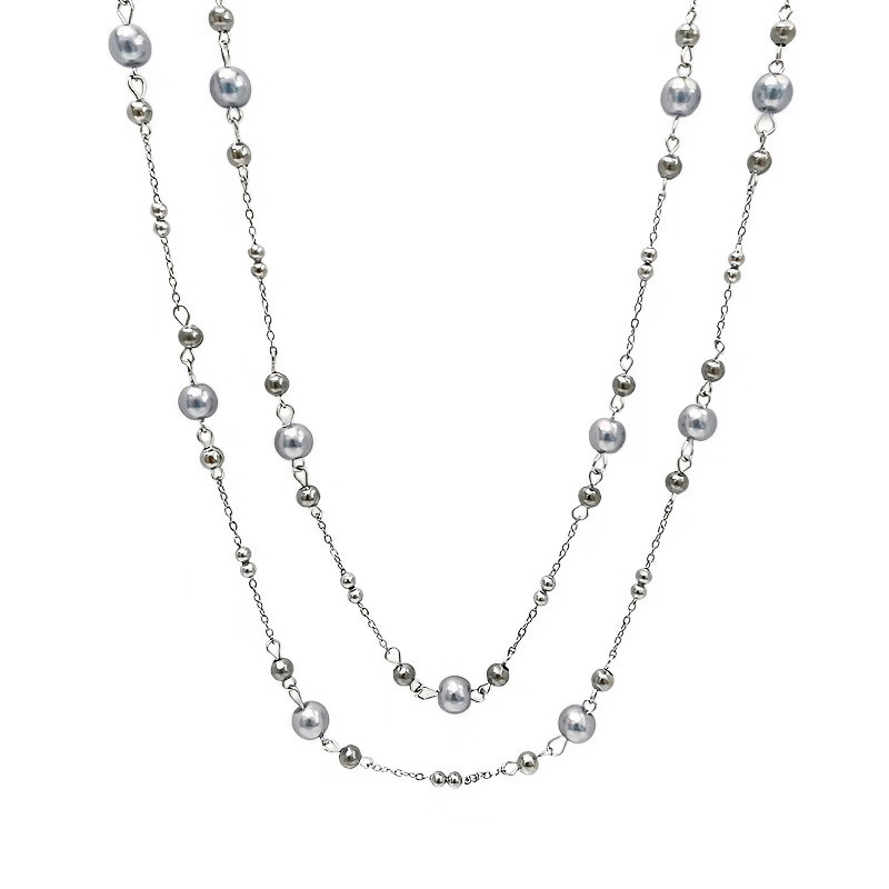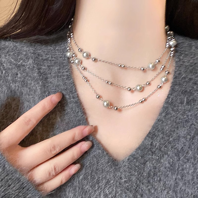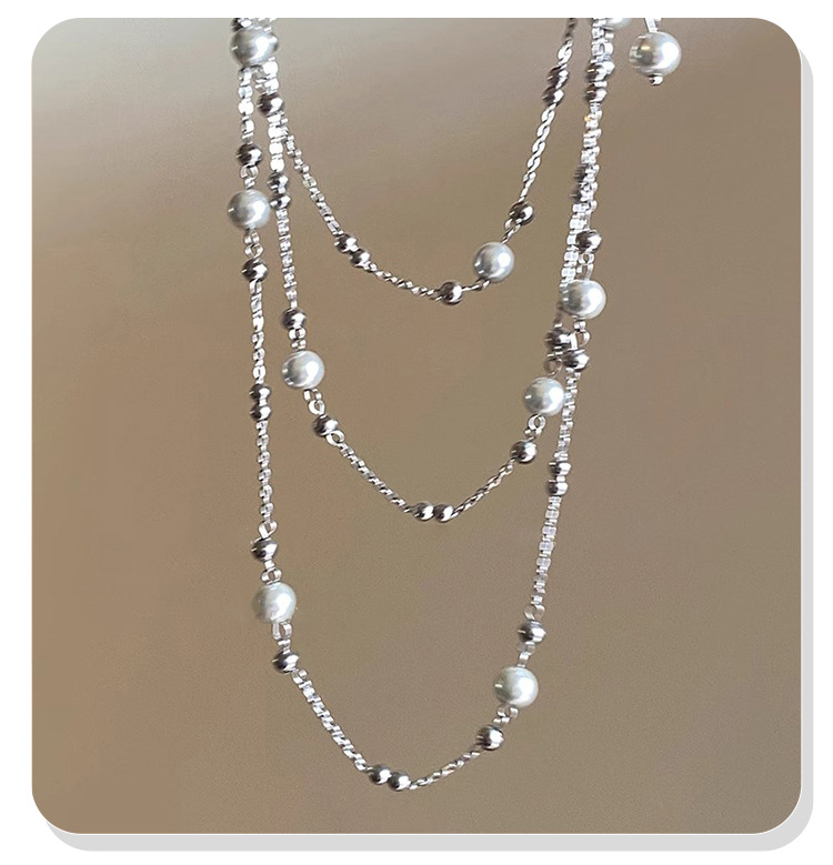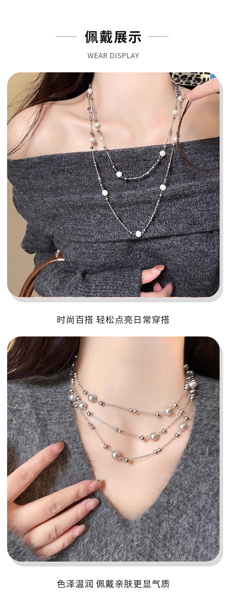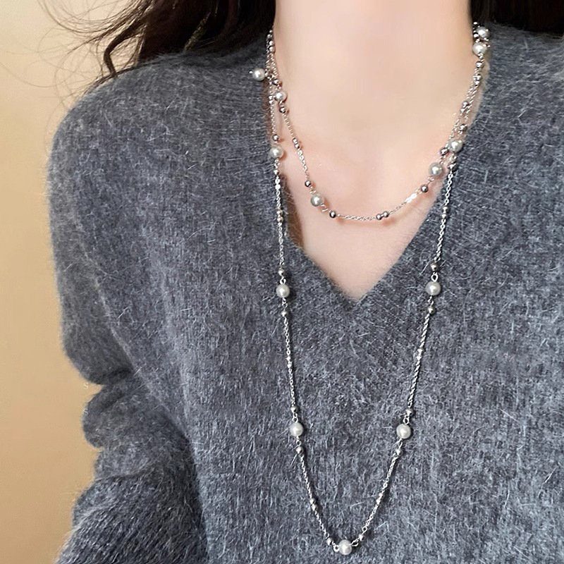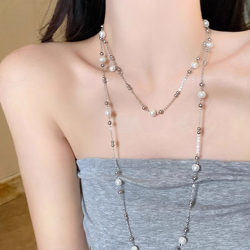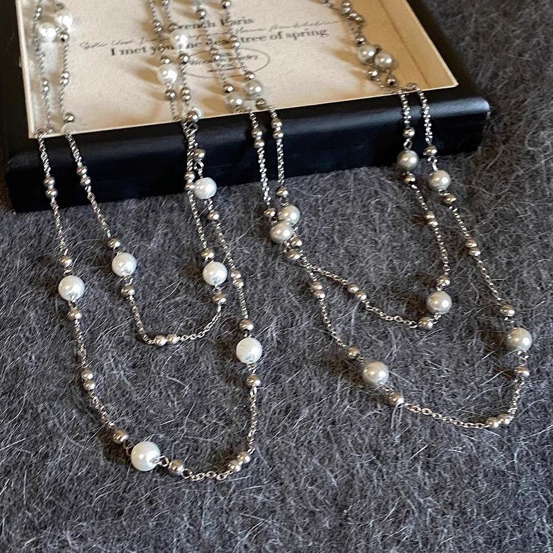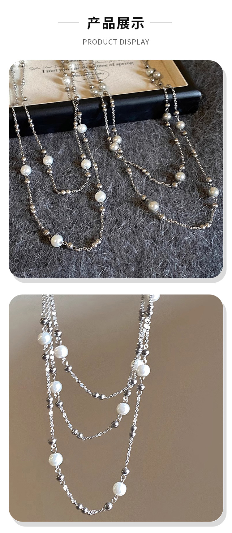 Gray Pearl Multi-Layered Long Necklace for Women 2025 New Fashion Accessible Luxury Niche Design Seaside Atmosphere Accessories