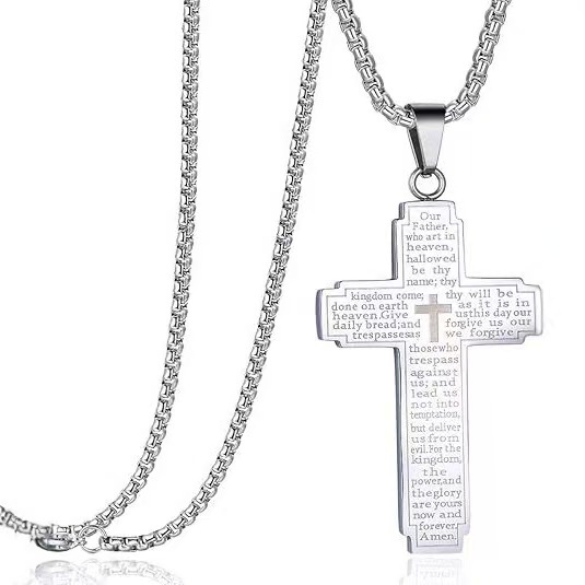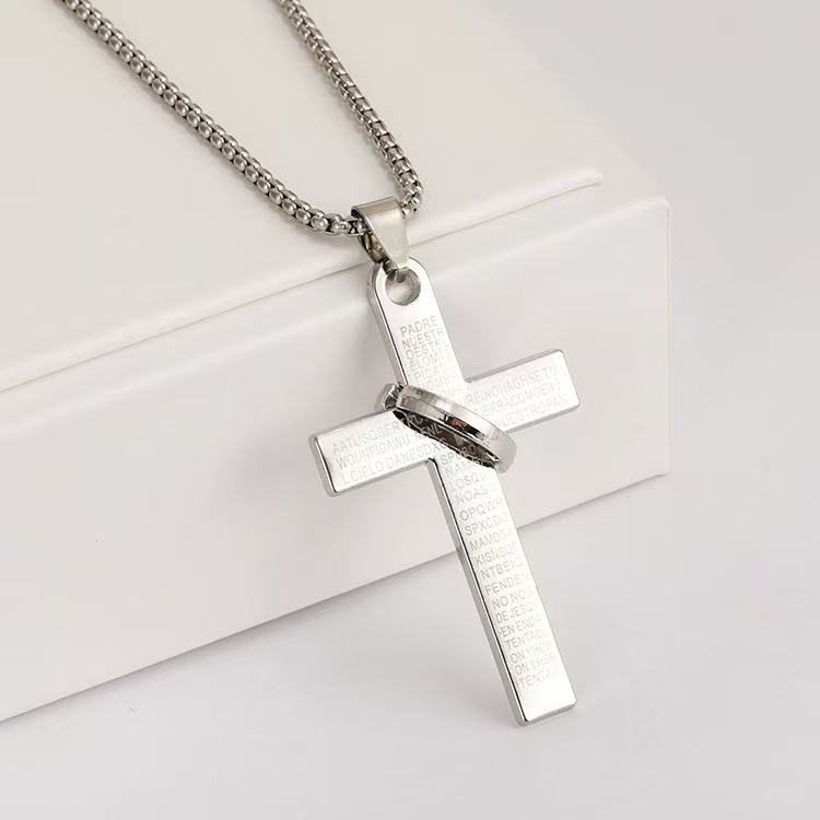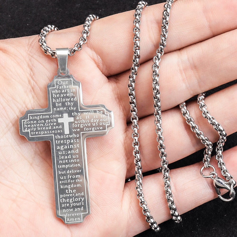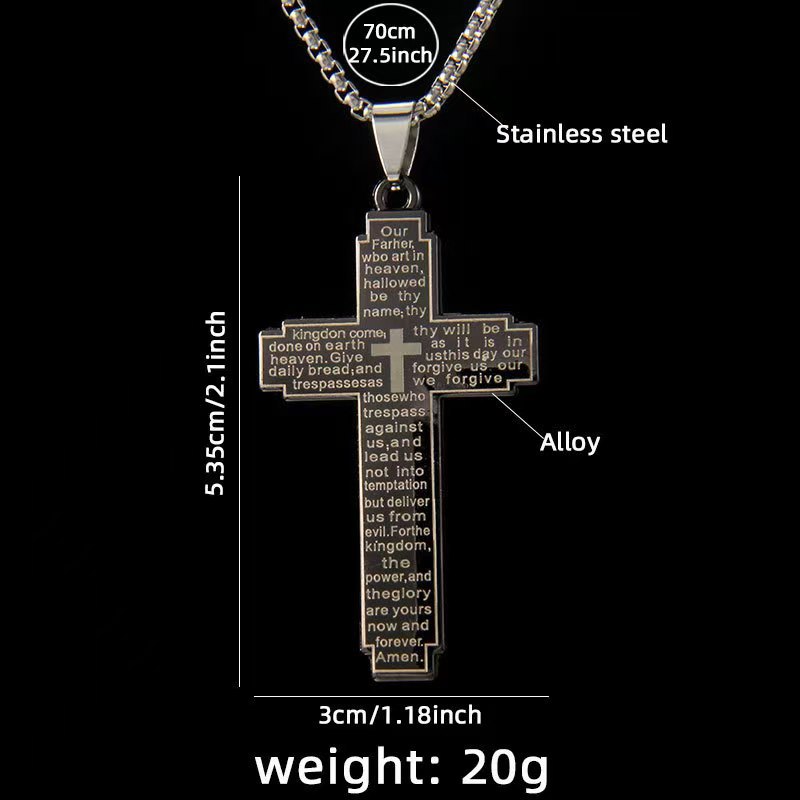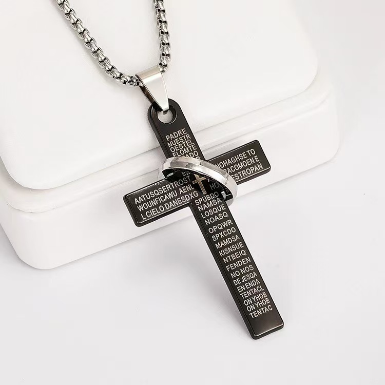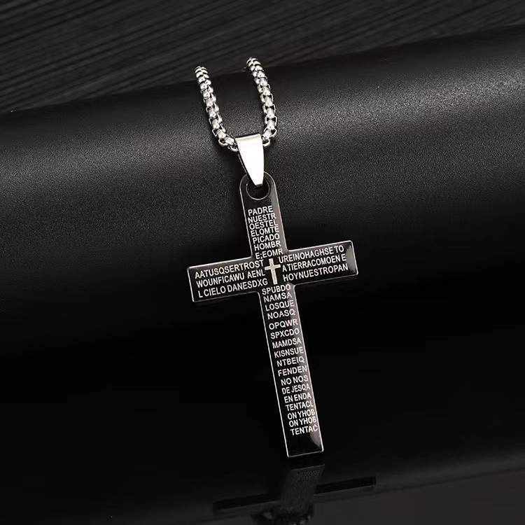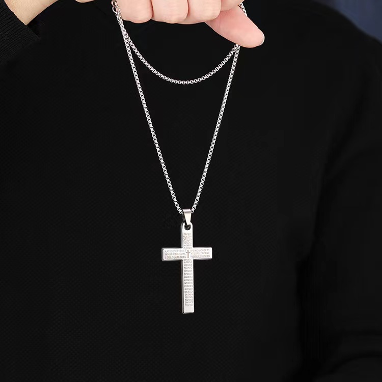Cross-Border European and American Best-Selling Bible Cross Stainless Steel Necklace Men's Niche Hip-Hop Retro Jewelry Cross-Border Supply