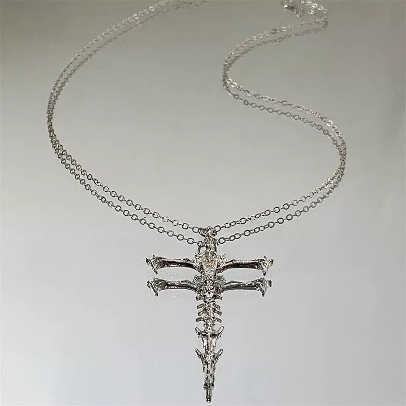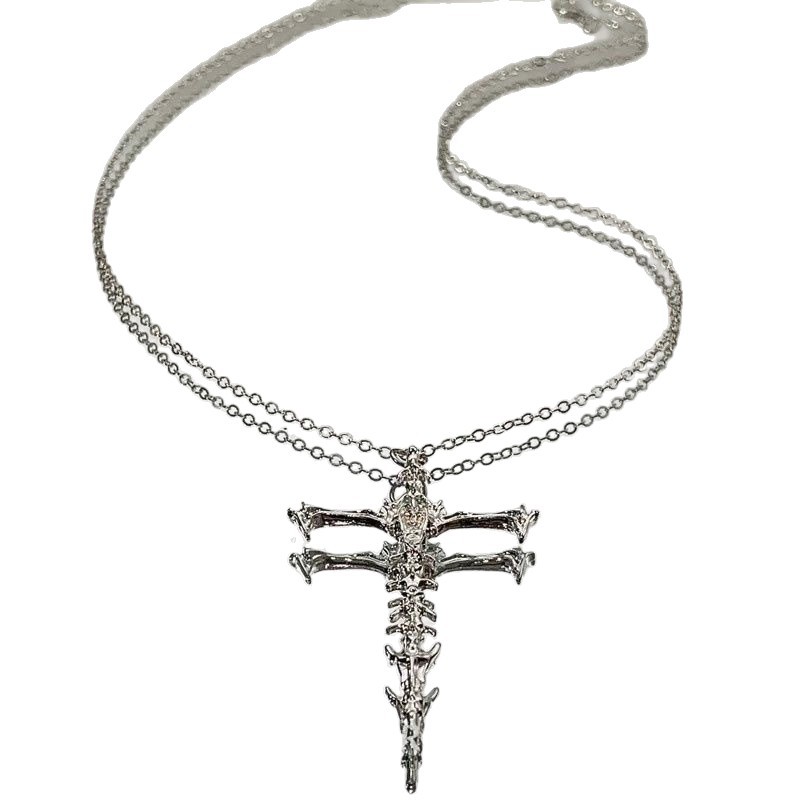 Dark Style Skull Skeleton Cross Pendant Necklace American Retro Fashion Old Trendyy Boys Necklace