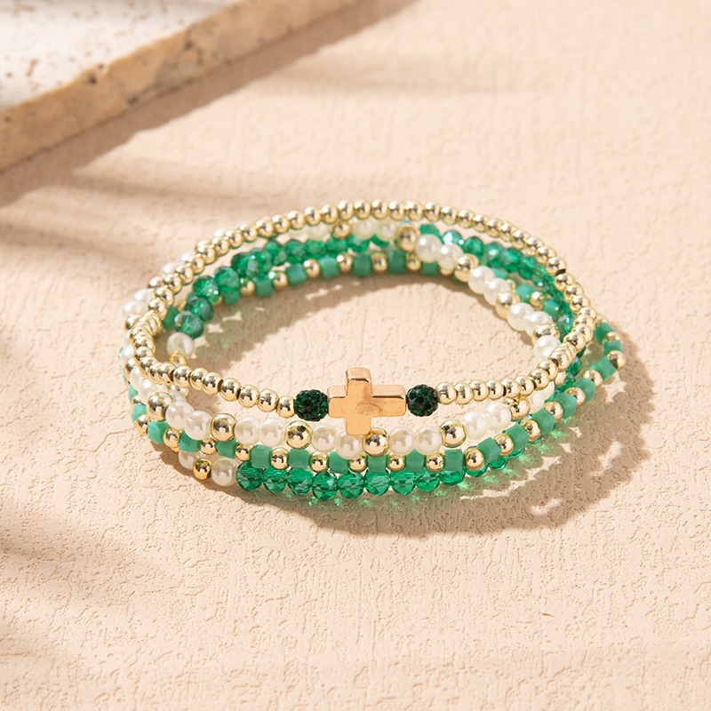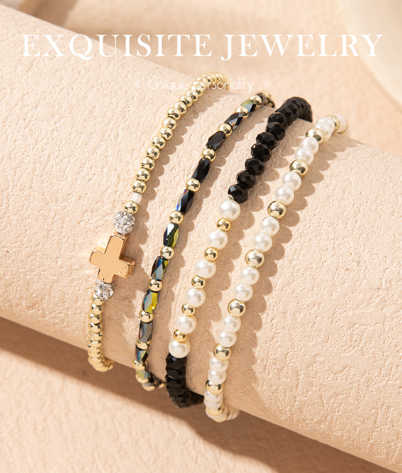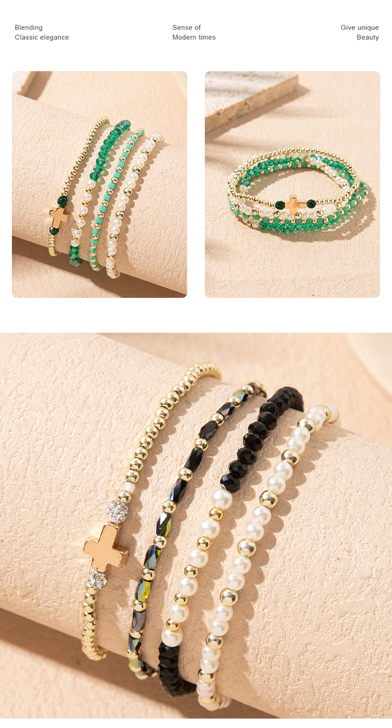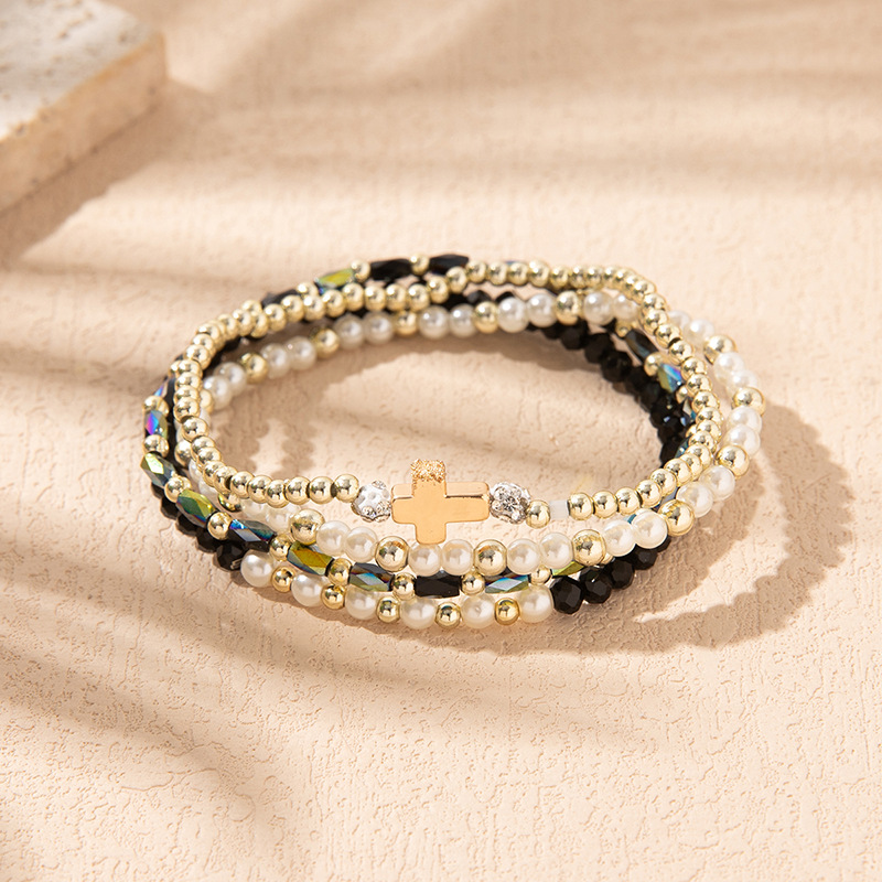 Cross-Border Supply of Colorful Crystal Elastic Bracelets Ins Style Niche Stacked Cross Bracelet Set Manufacturer Wholesale