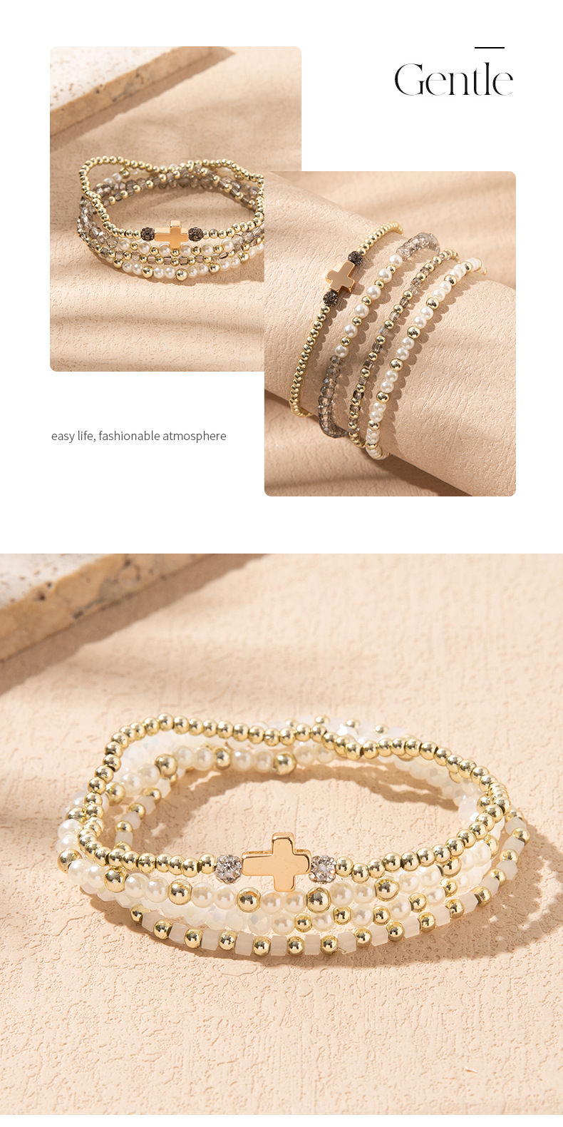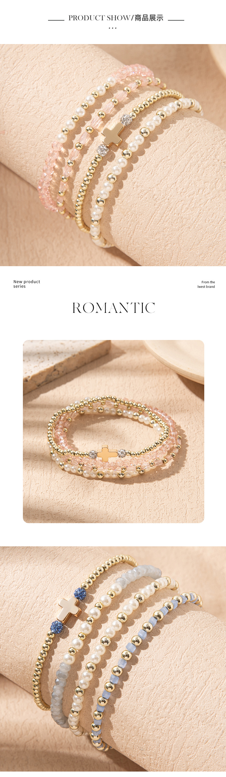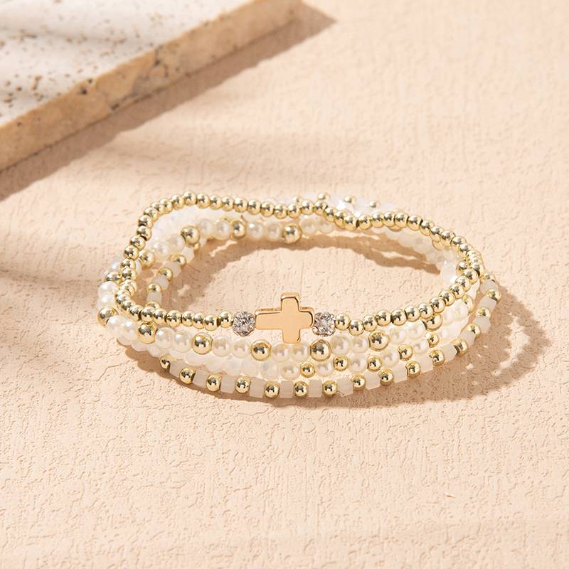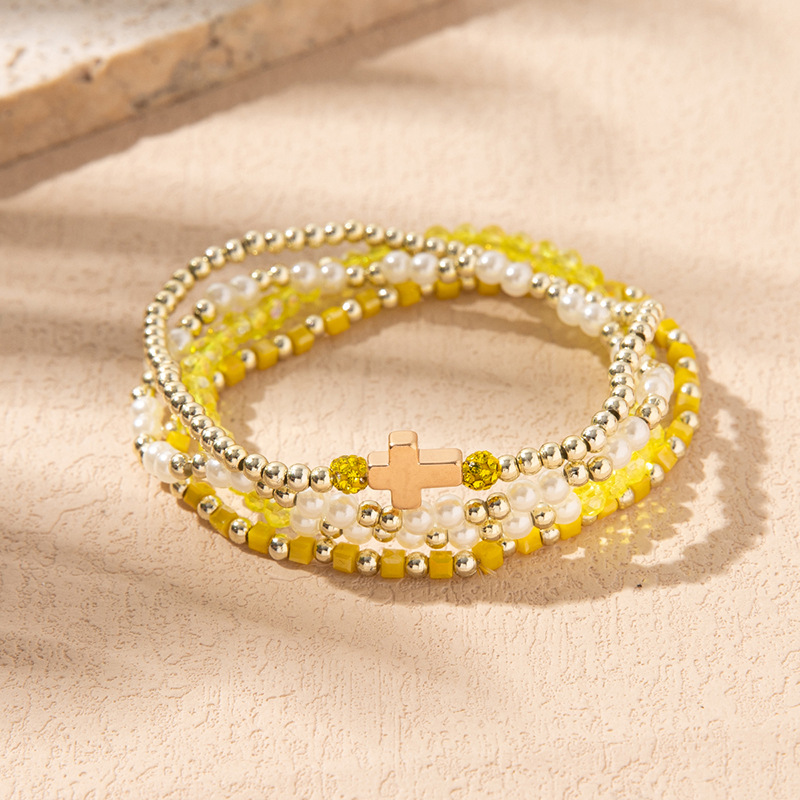 Cross-Border Supply of Colorful Crystal Elastic Bracelets Ins Style Niche Stacked Cross Bracelet Set Manufacturer Wholesale