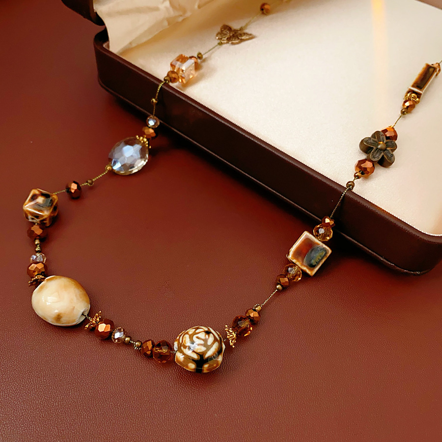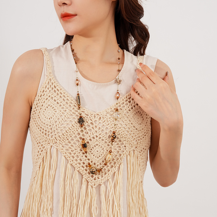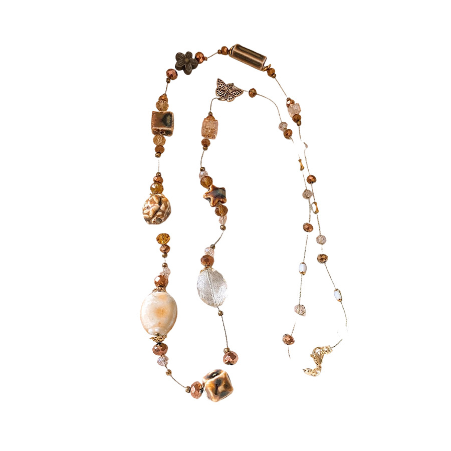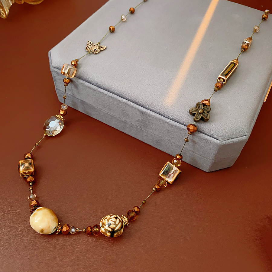 Glass Ceramic Butterfly Beaded Necklace Accessible Luxury High-End Long Sweater Chain Bohemian Ethnic Style Necklace for Women