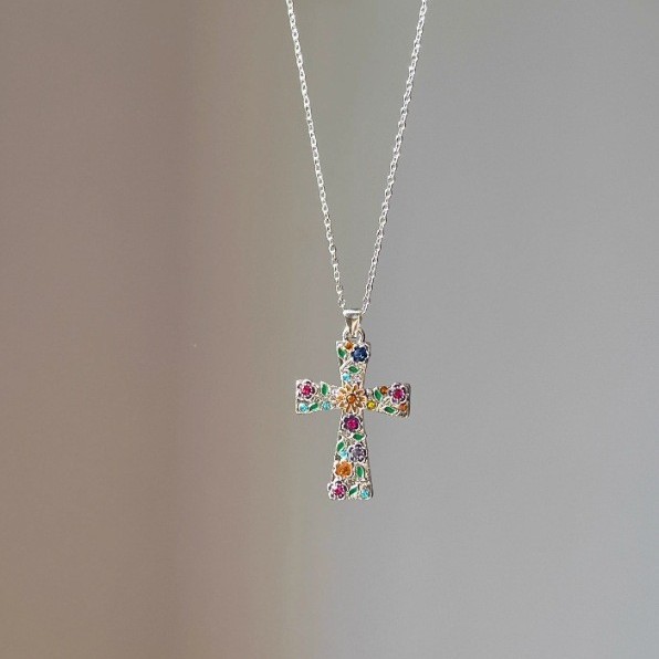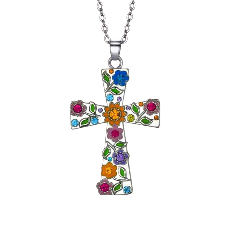 Cross-Border Popular Jewelry Wholesale Cross Flower Necklace Pendant Women's Fashion European and American Style Small Plum Blossom Religious Jewelry