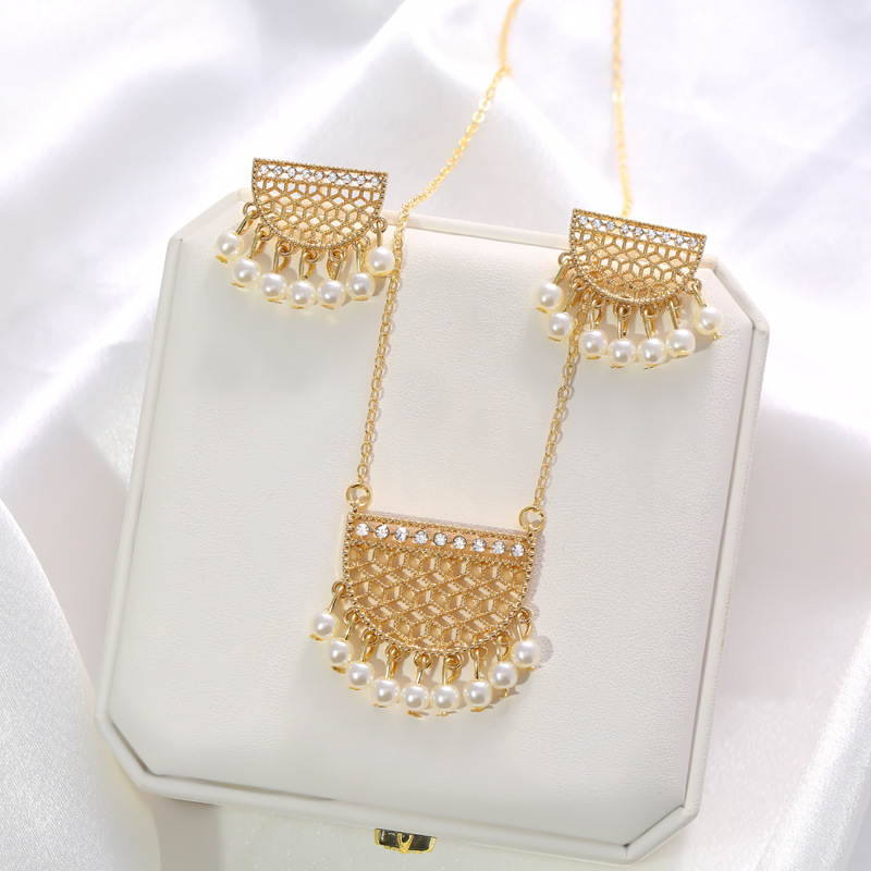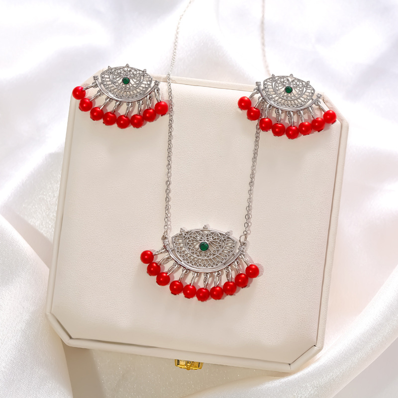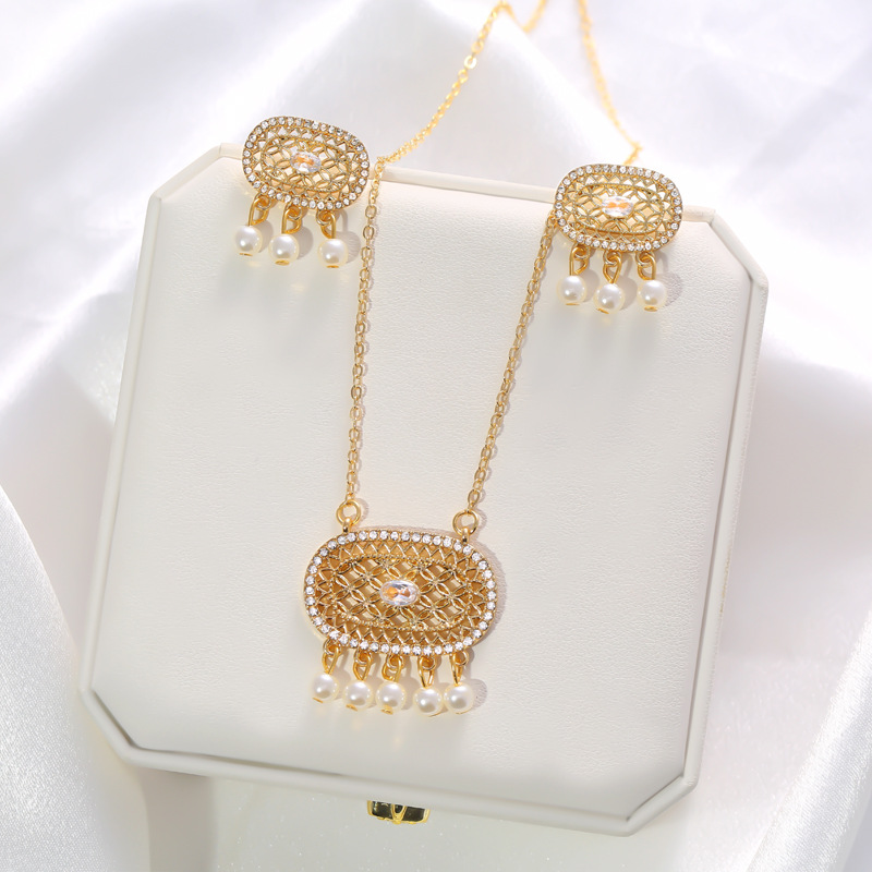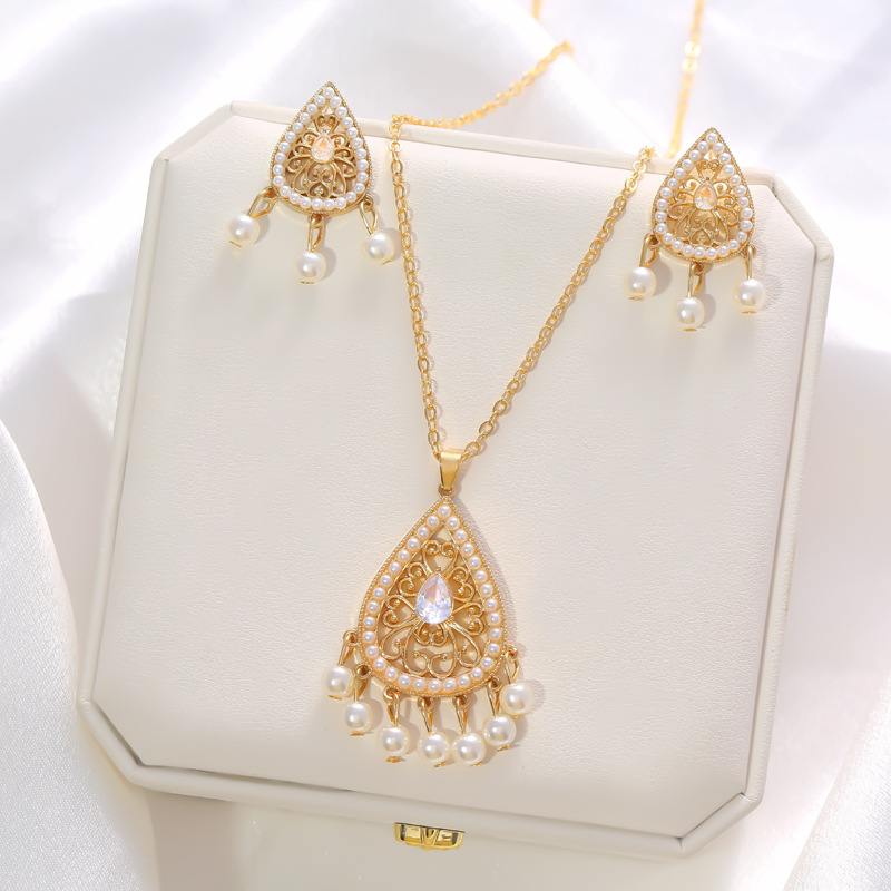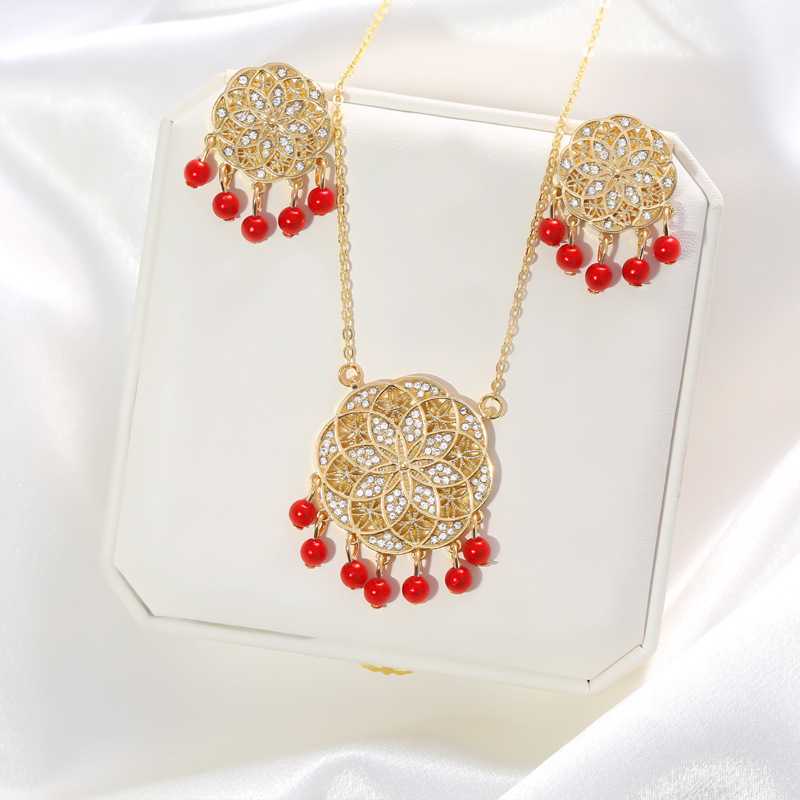 Cdd Earring and Necklace Set, Geometric Water Drop Design, Multi-Element Inlaid with Rhinestones or Turquoise, Vintage Style, Direct from the Source Factory