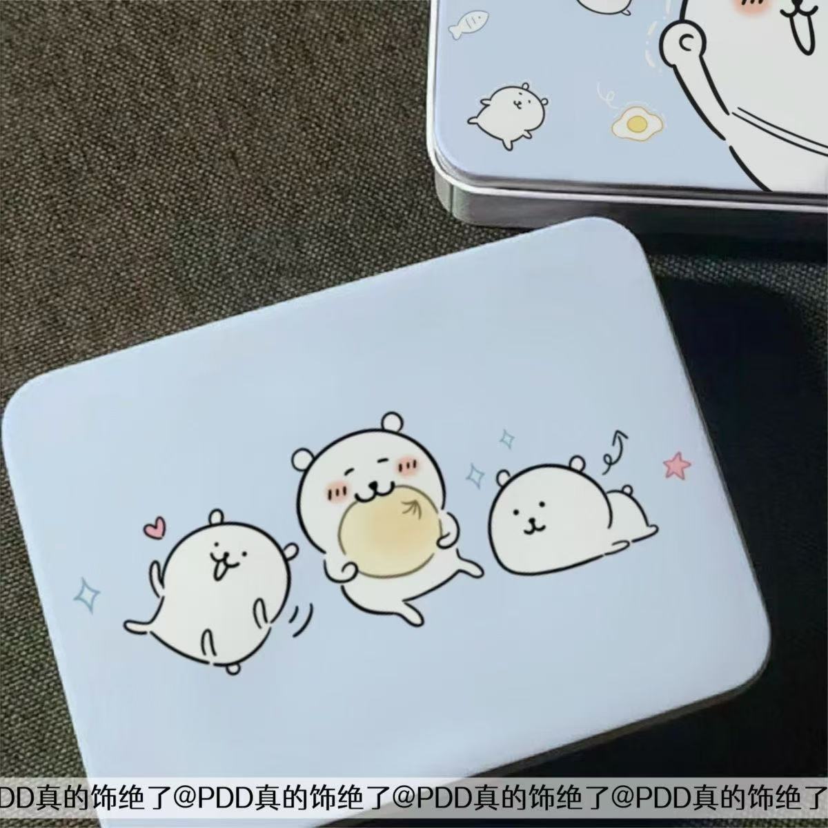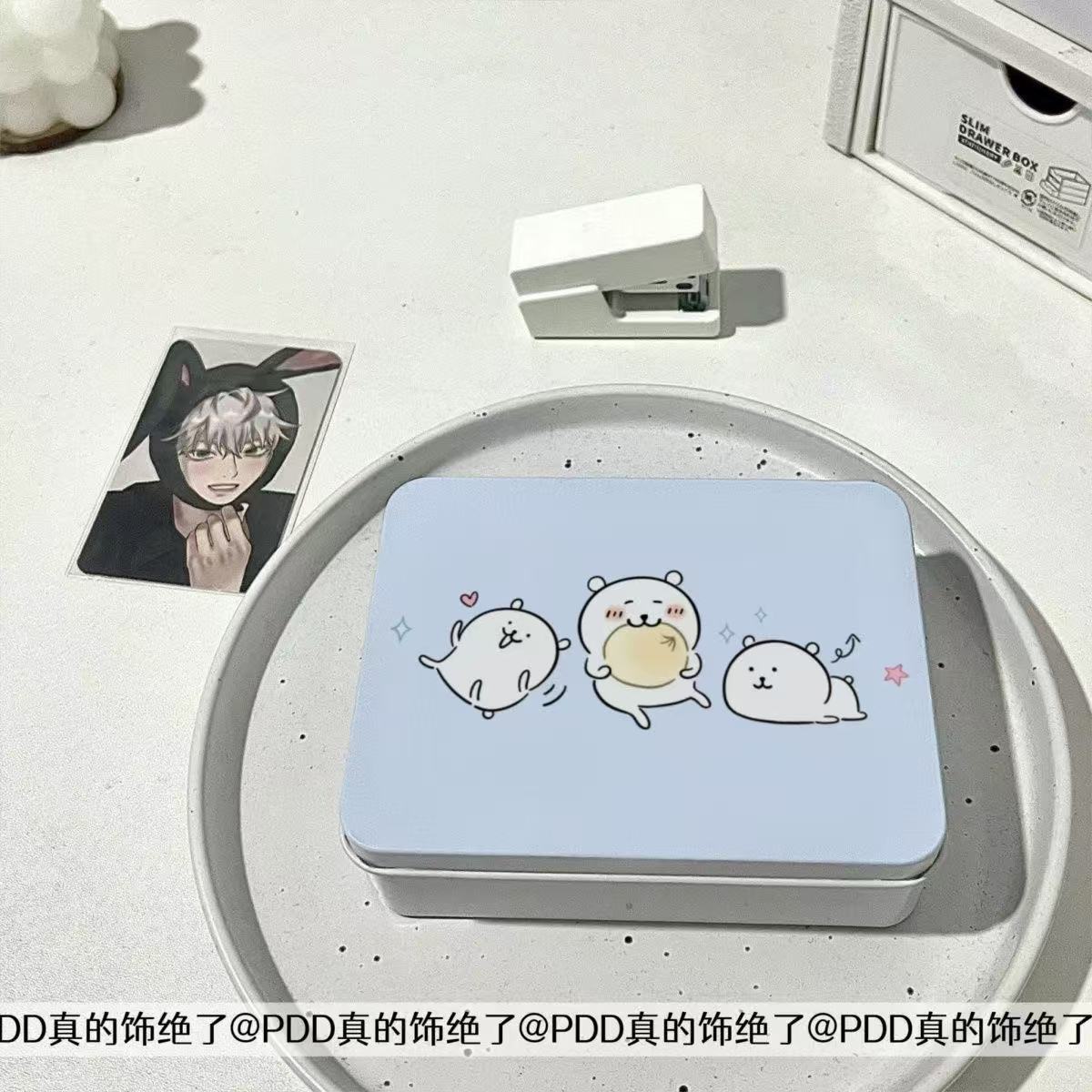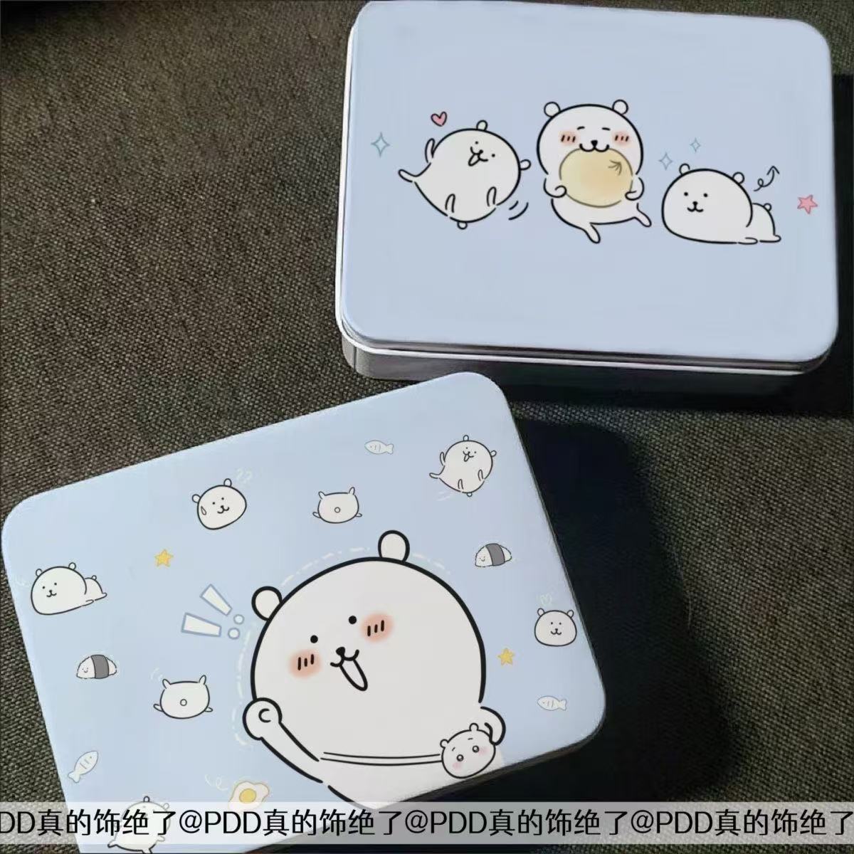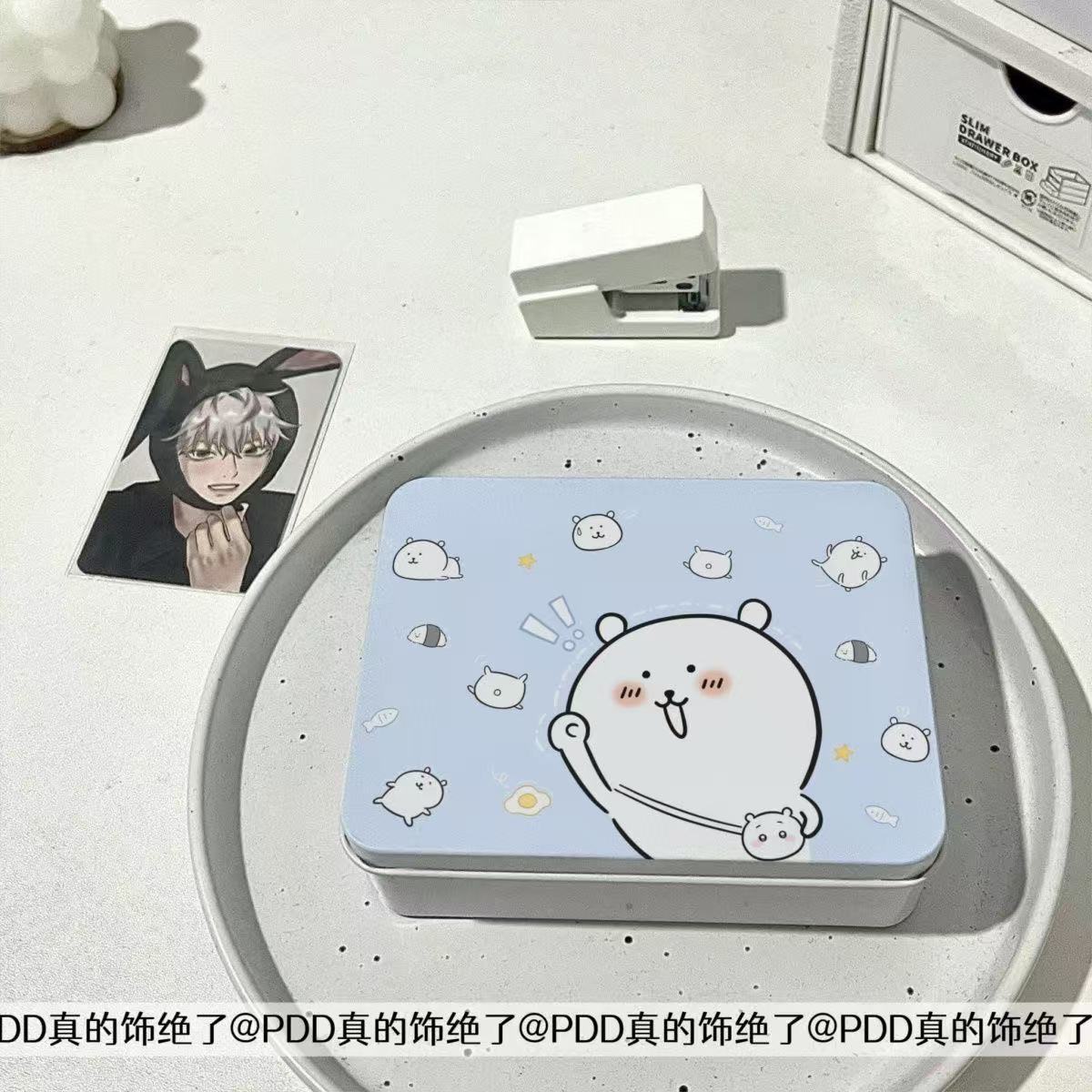 Cute Self-Deprecating Bear Ins Tin Box Sticker Small Card Jewelry High-Value Storage Box Student Desktop Material Organization
