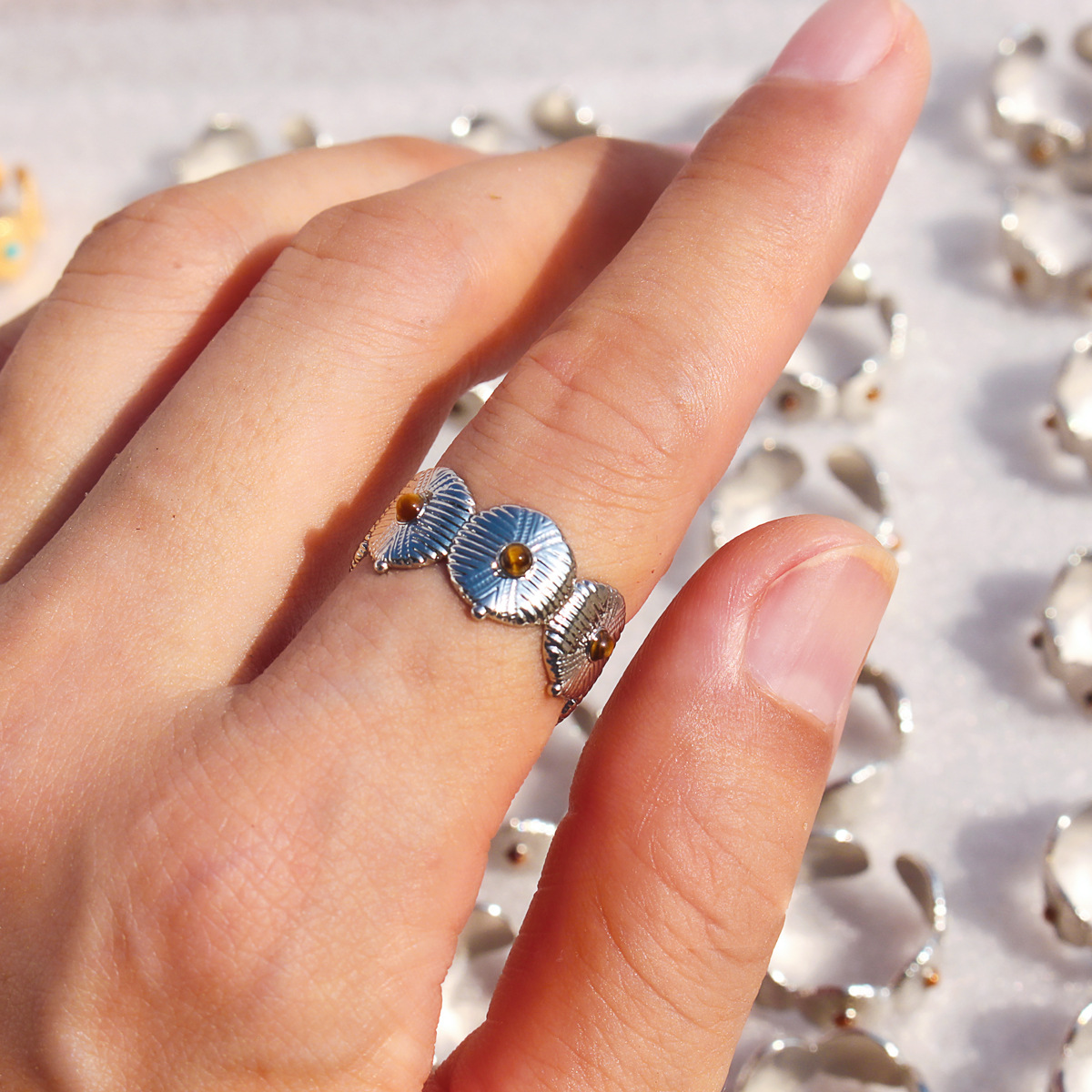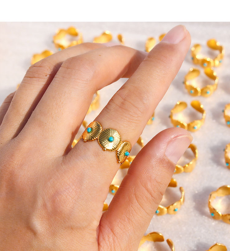 Niche Tribal Totem Inlaid Turquoise Gold Coin Open Ring Retro High-End Tiger Eye Stone Gold and Silver Ring 765