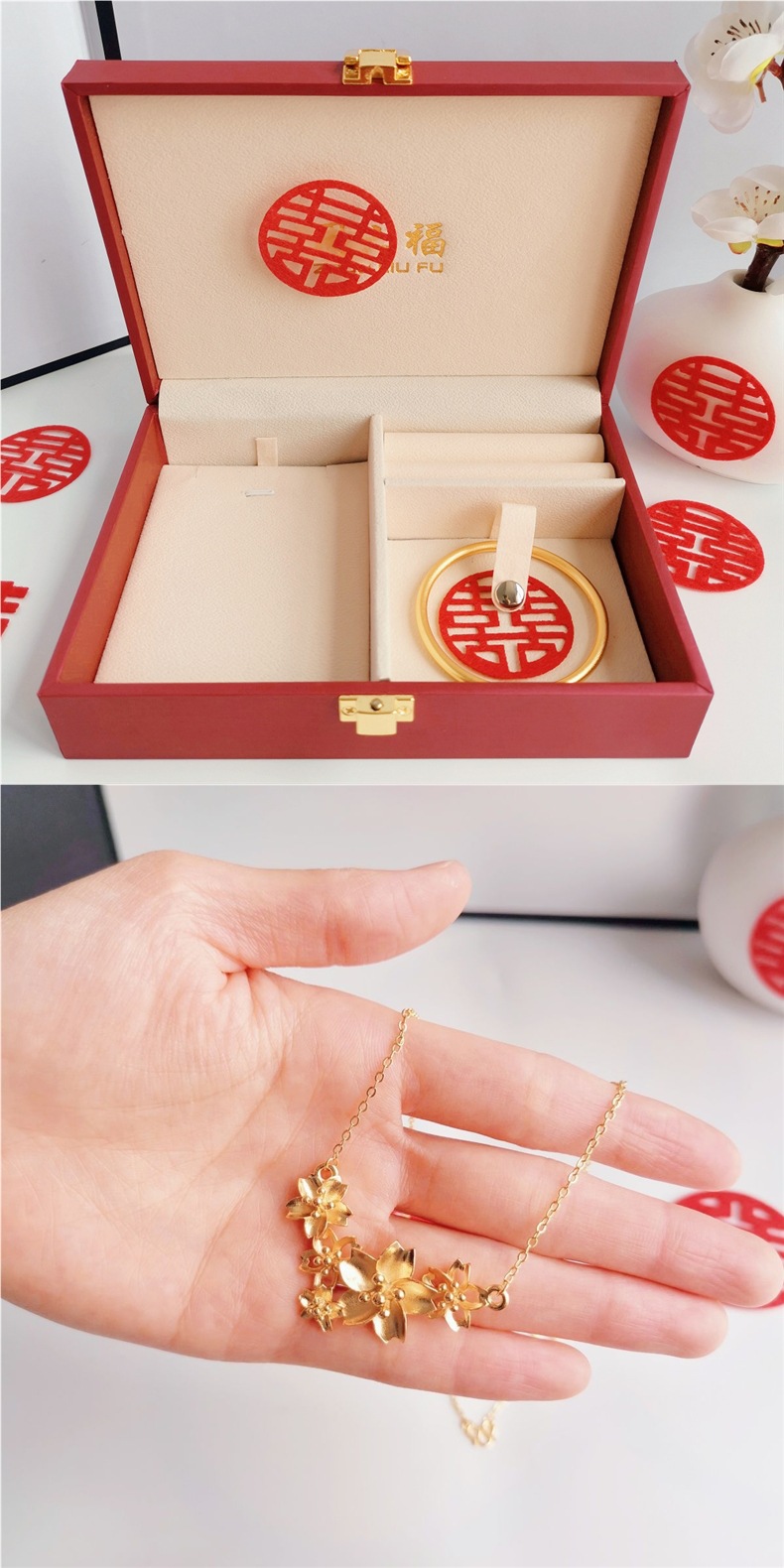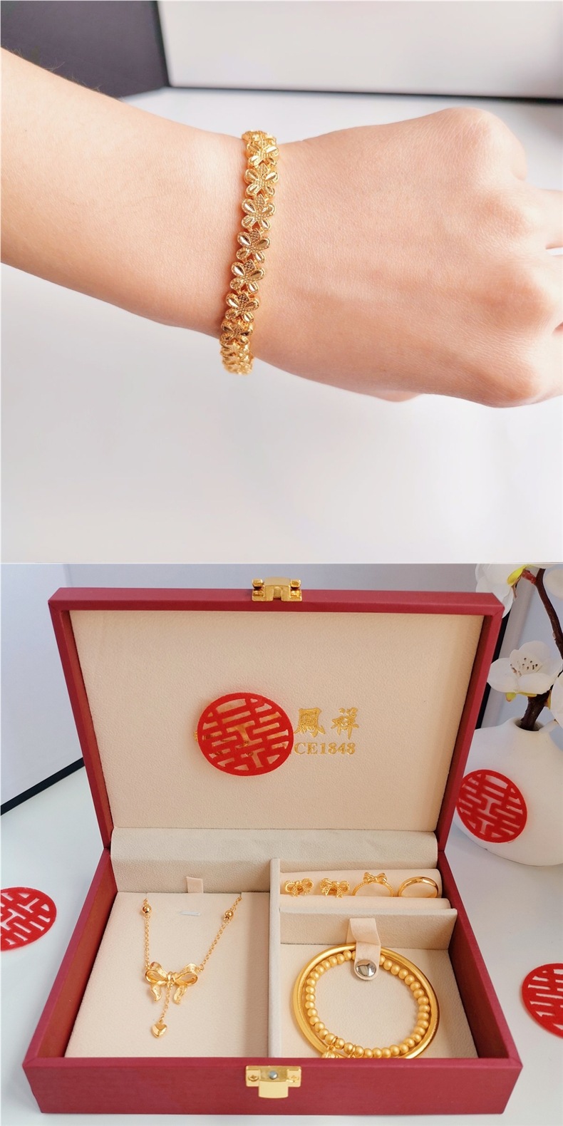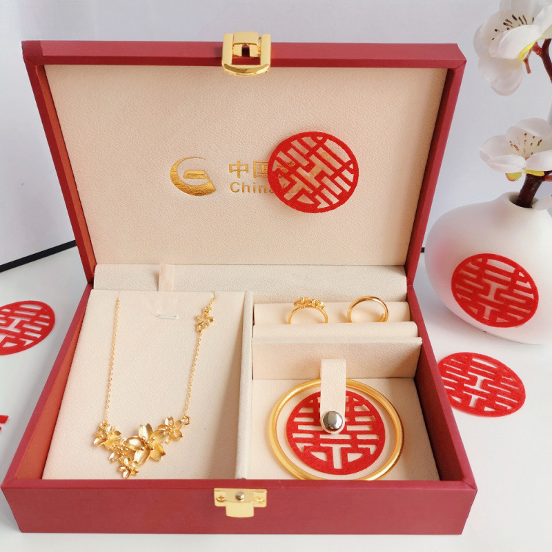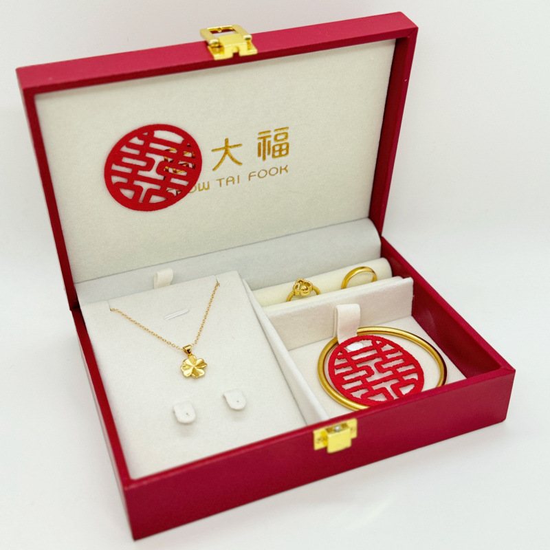 Color: Four-leaf clover three-gold set + upgraded single-layer gift box (fayunda)