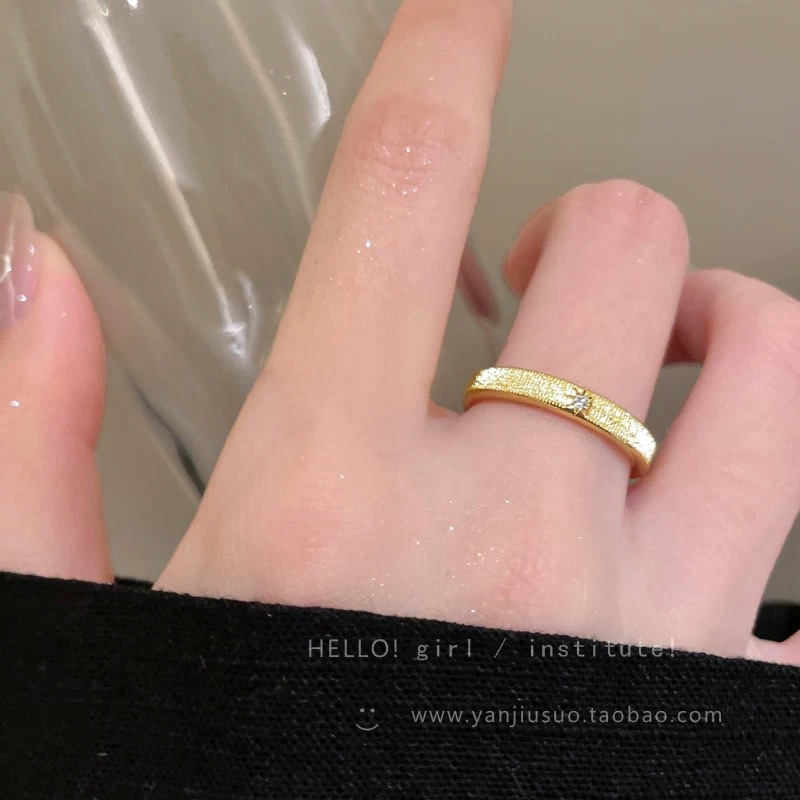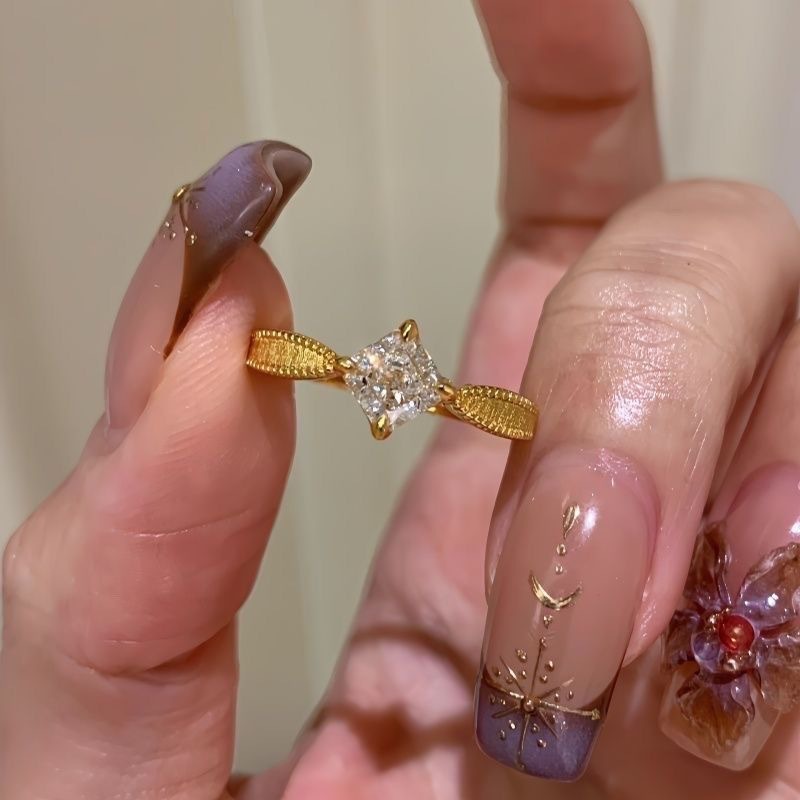 Vintage Gold Brushed Small Square Diamond Starburst Ring for Women, Niche Design, Light Luxury, High-End Feel, Super Shiny Stackable Index Finger Ring