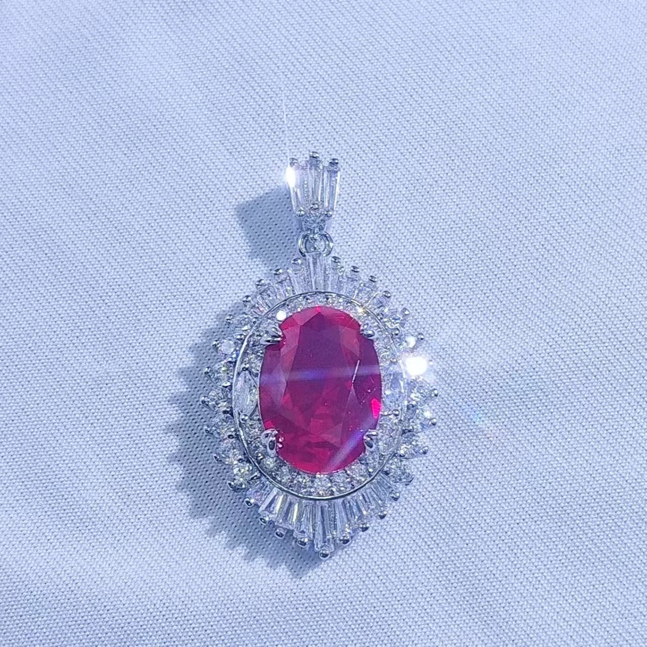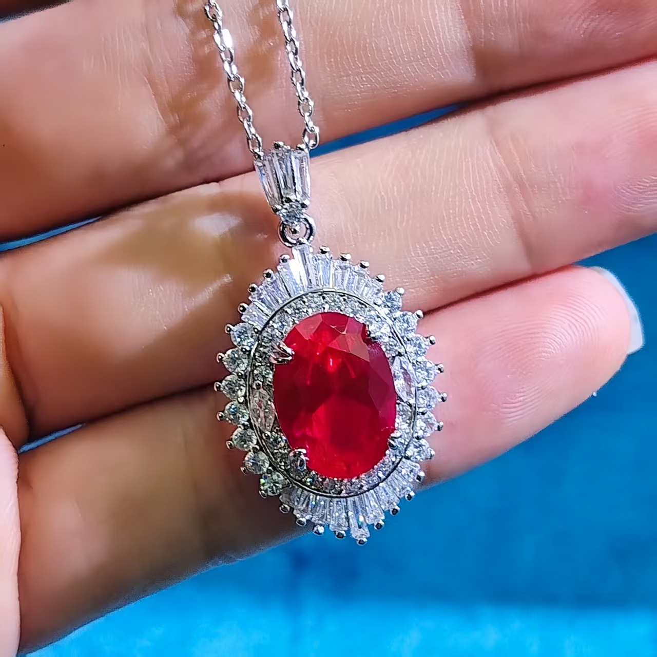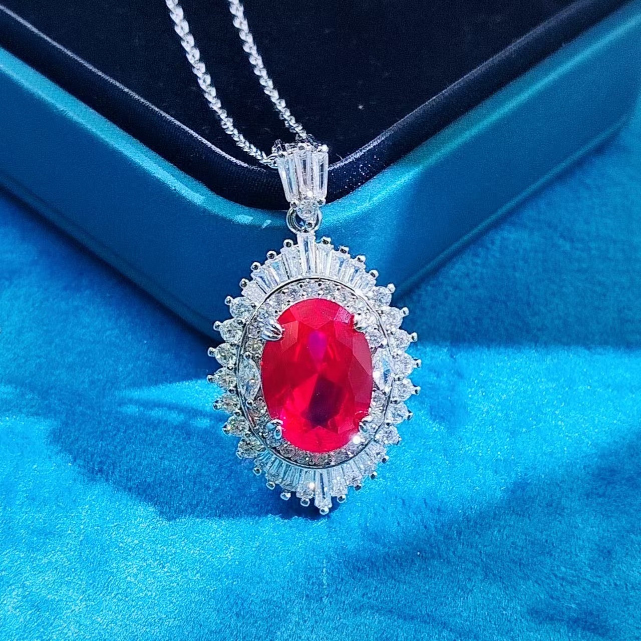 Pattern: Fashionable coconut round red corundum blue spinel pendant necklace for women