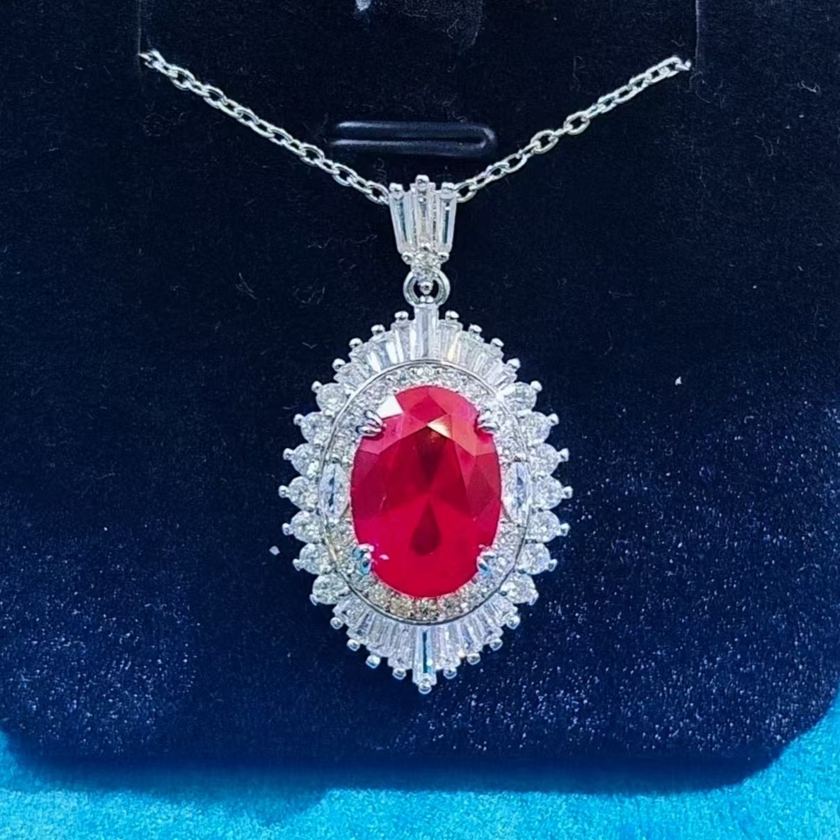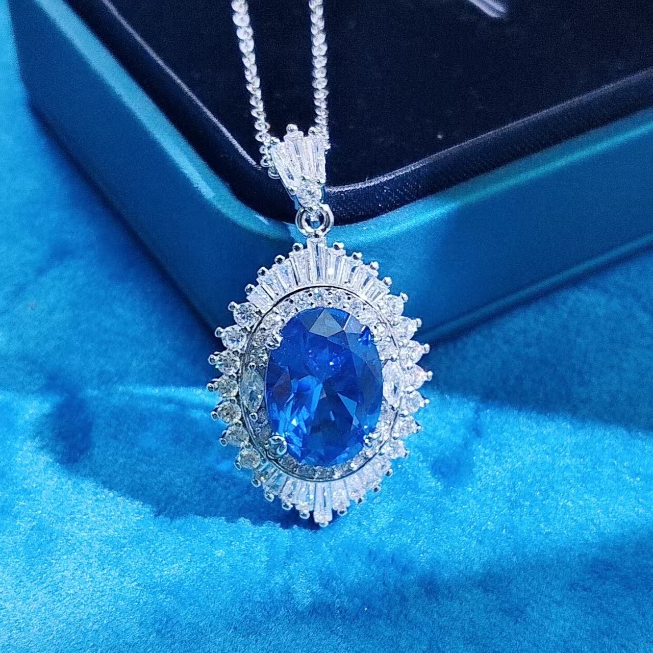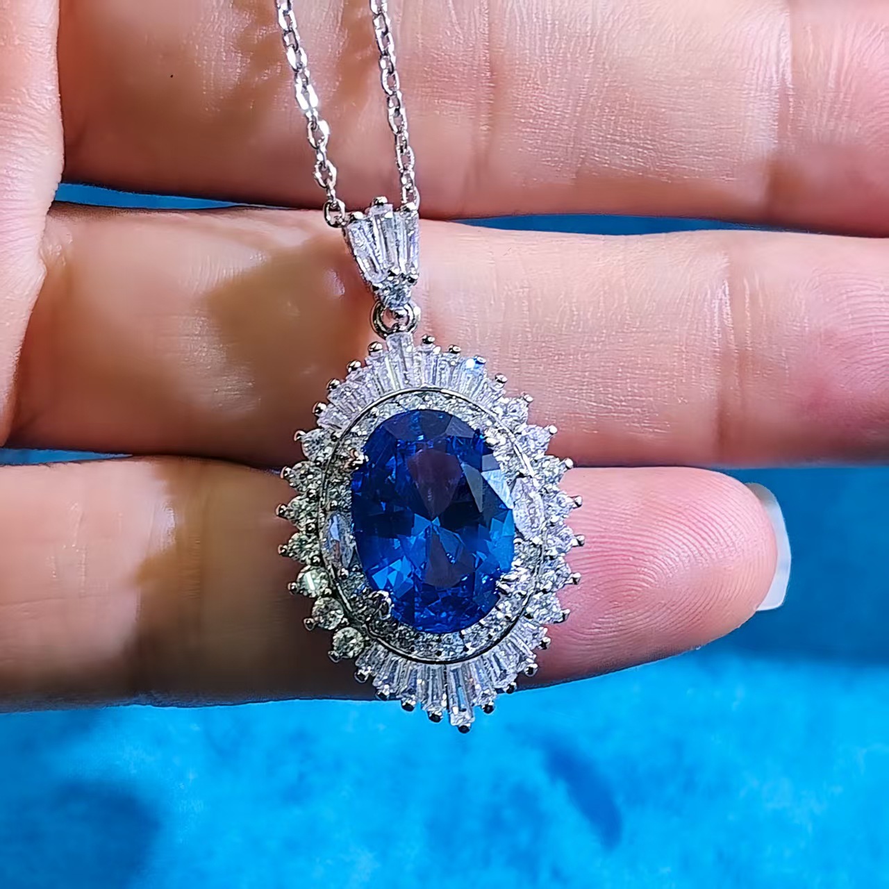 Pattern: Fashionable coconut round red corundum blue spinel pendant necklace for women