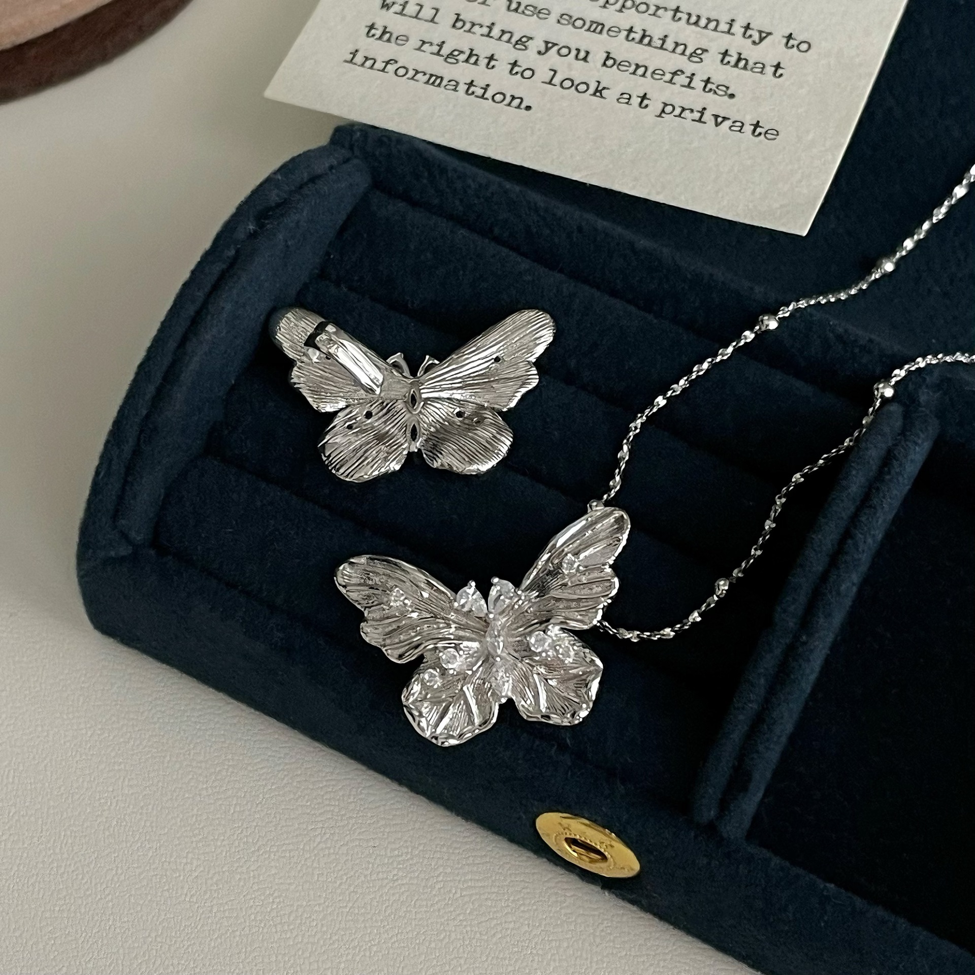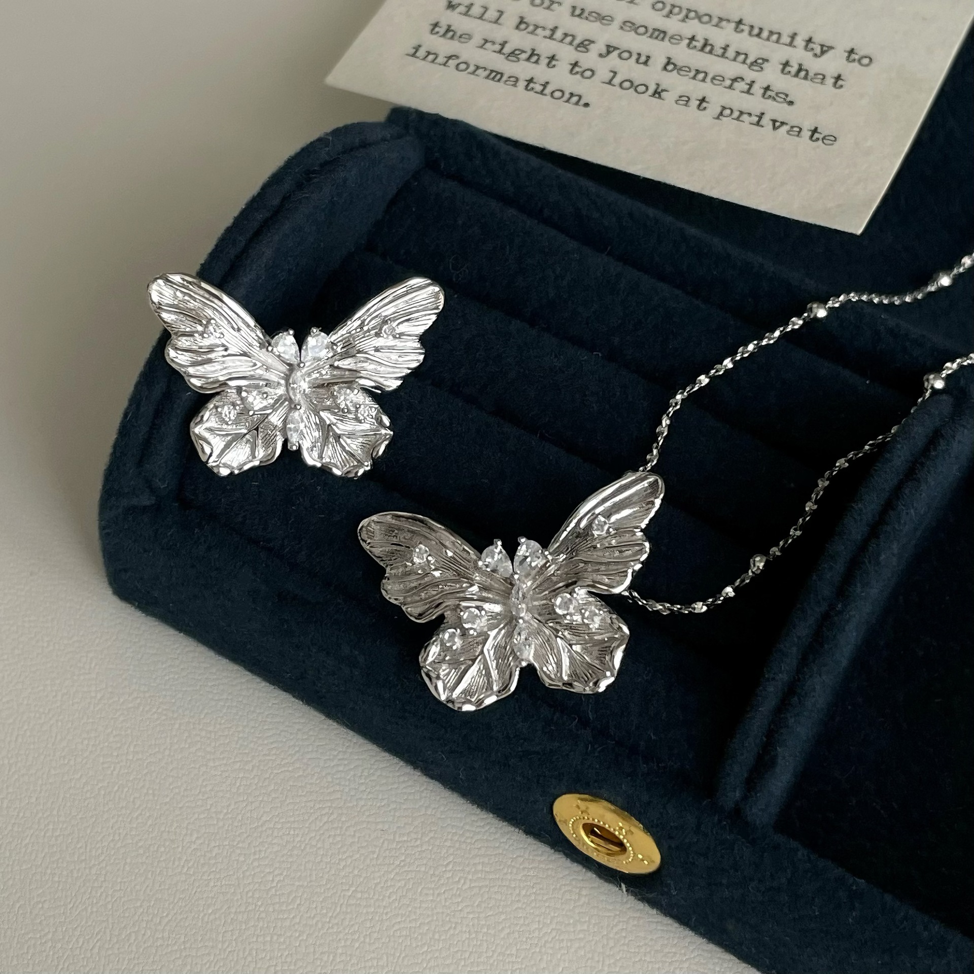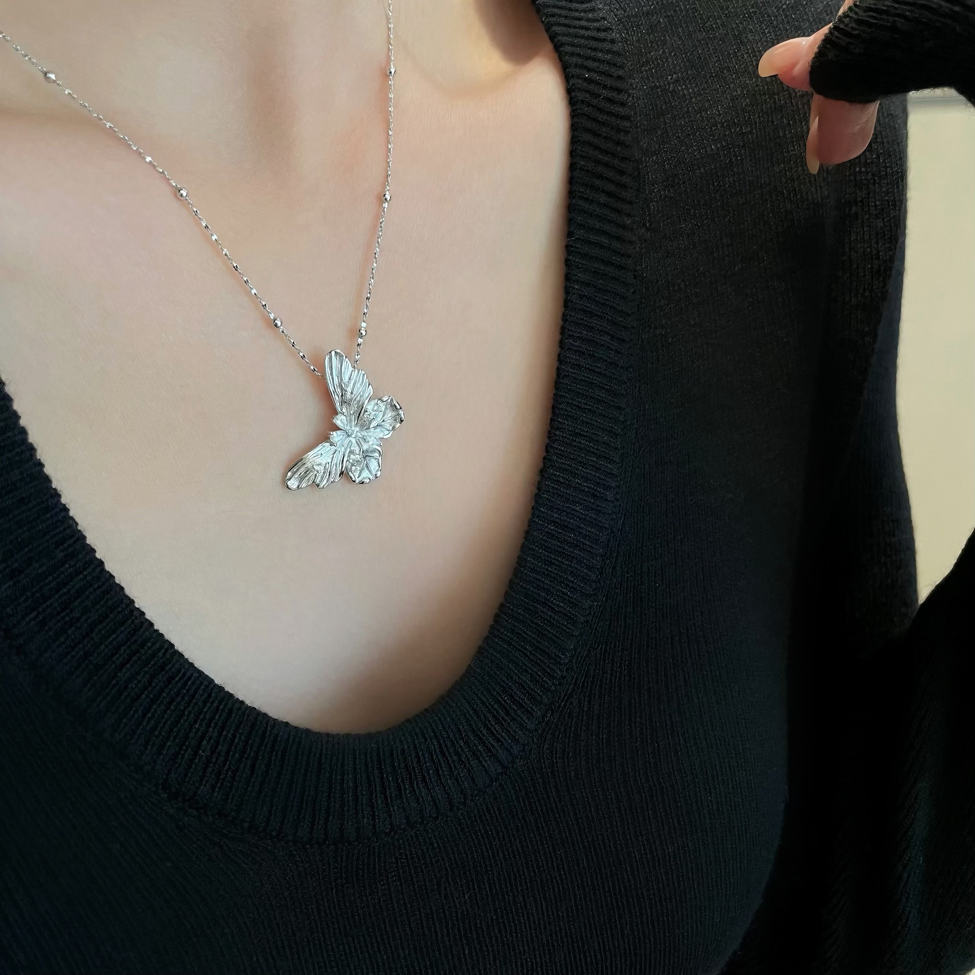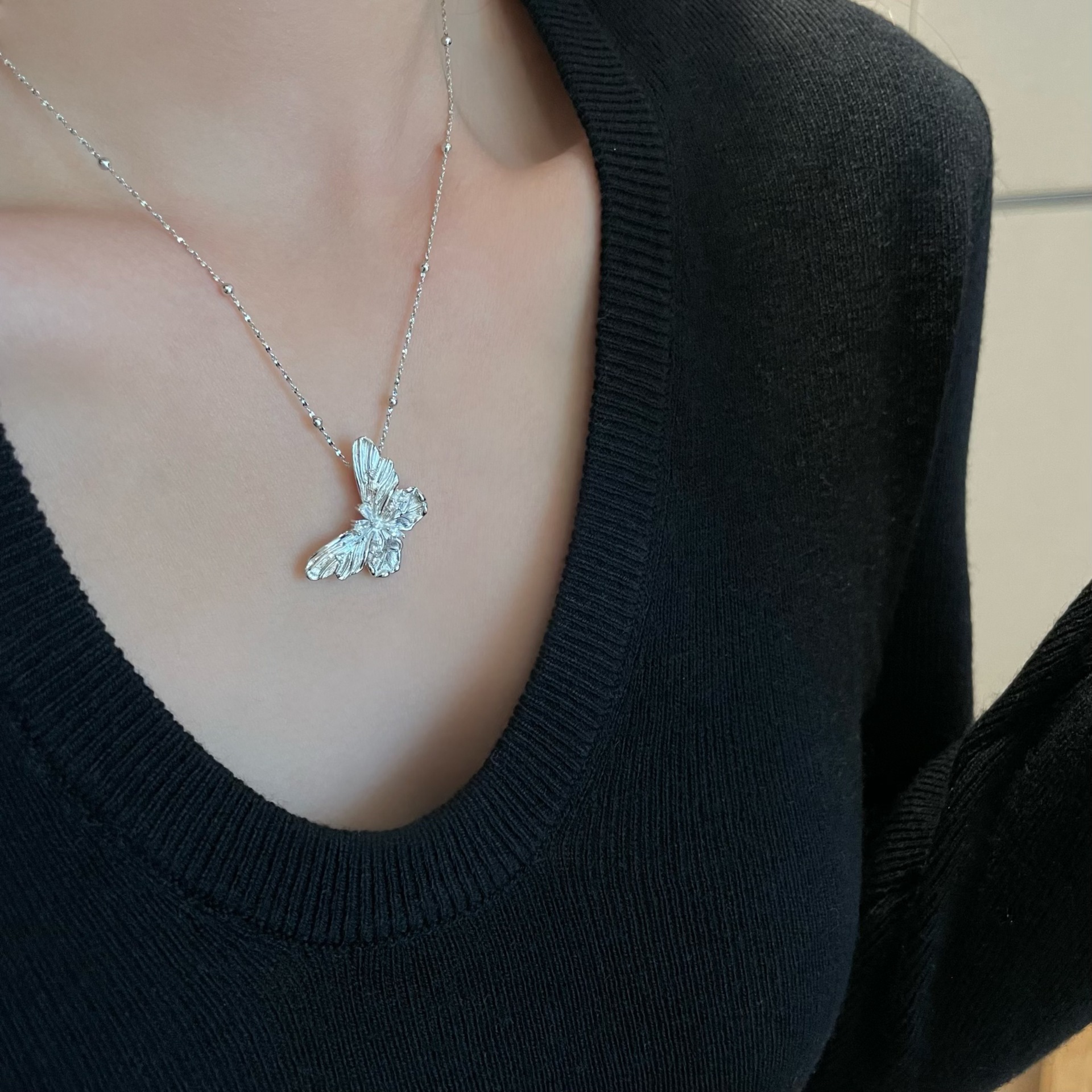 S925 Sterling Silver Butterfly Zircon Flash Pendant Accessible Luxury Simple Fashion French Niche Design High-End Sense