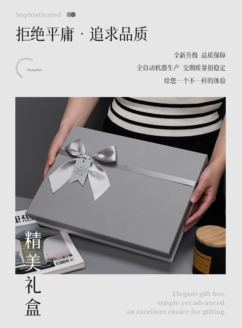 Specifications and models: High-end gray bow gift box; matching gift bag no. 3-4 20*9.3*27.8cm
