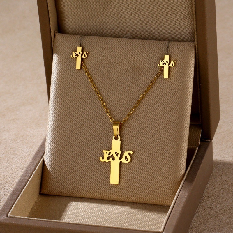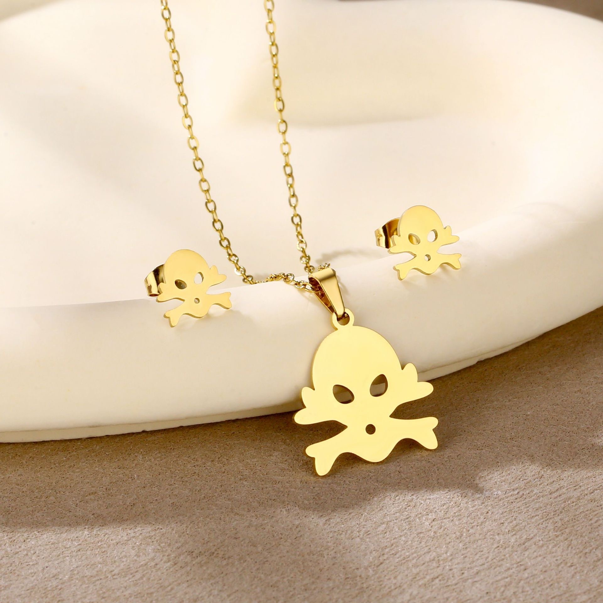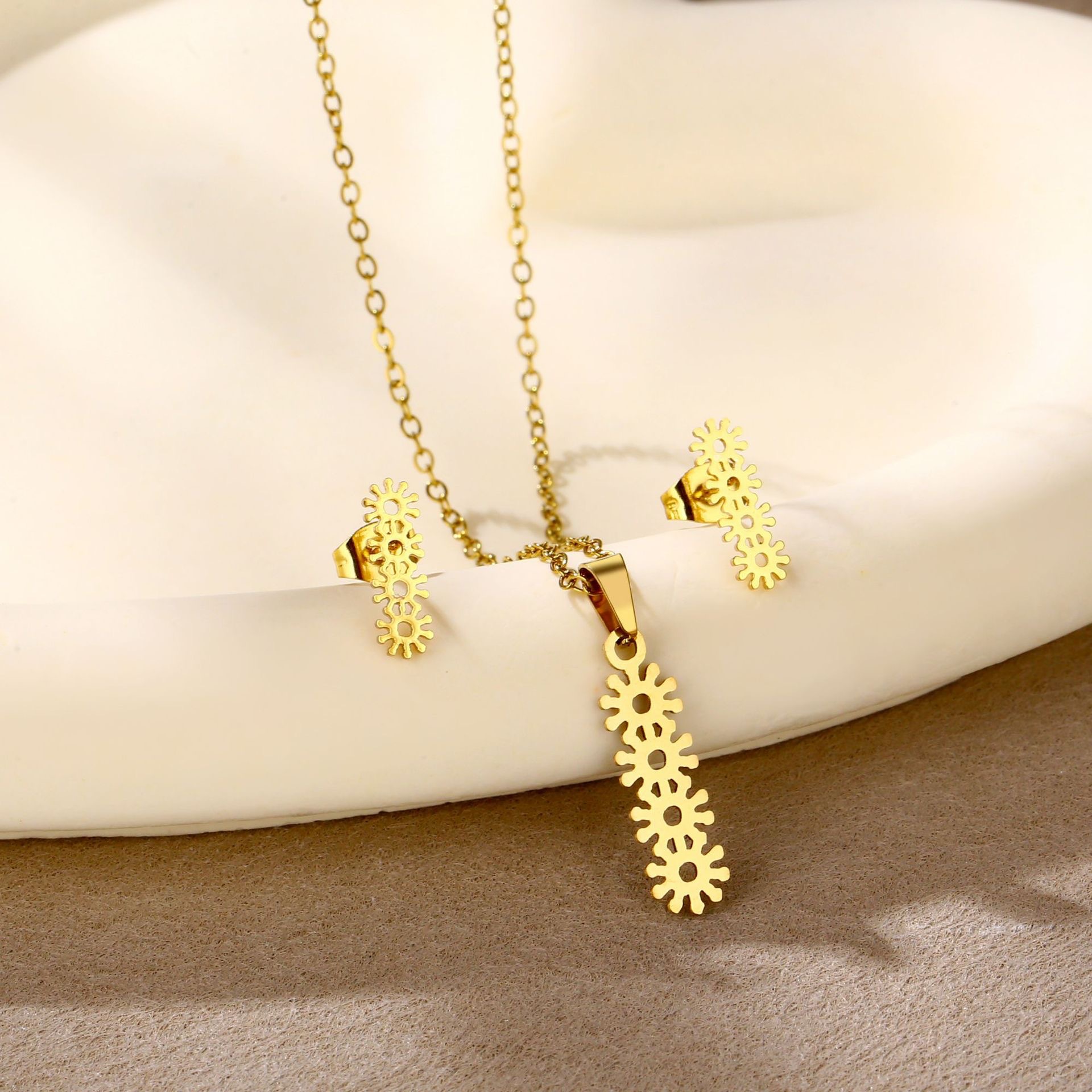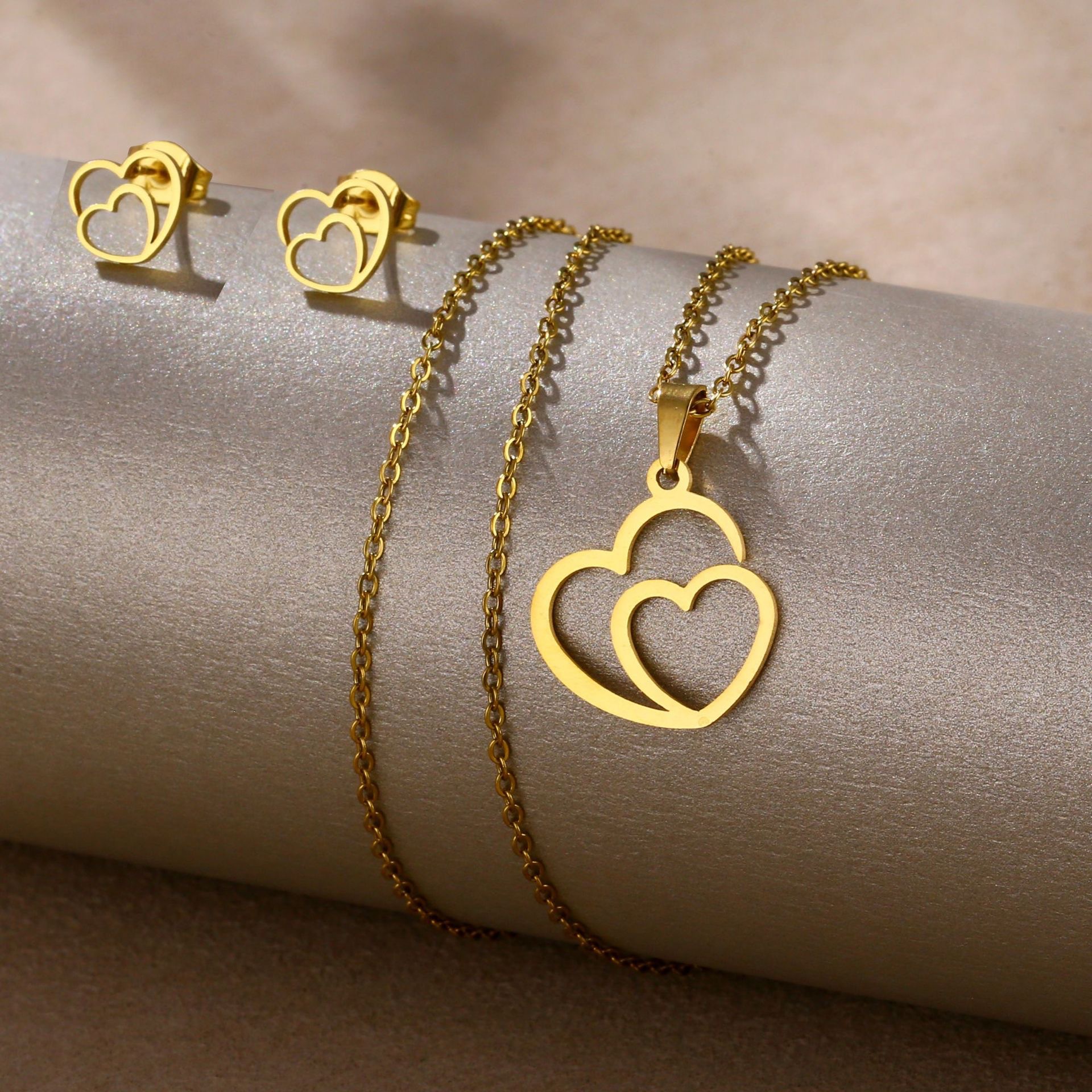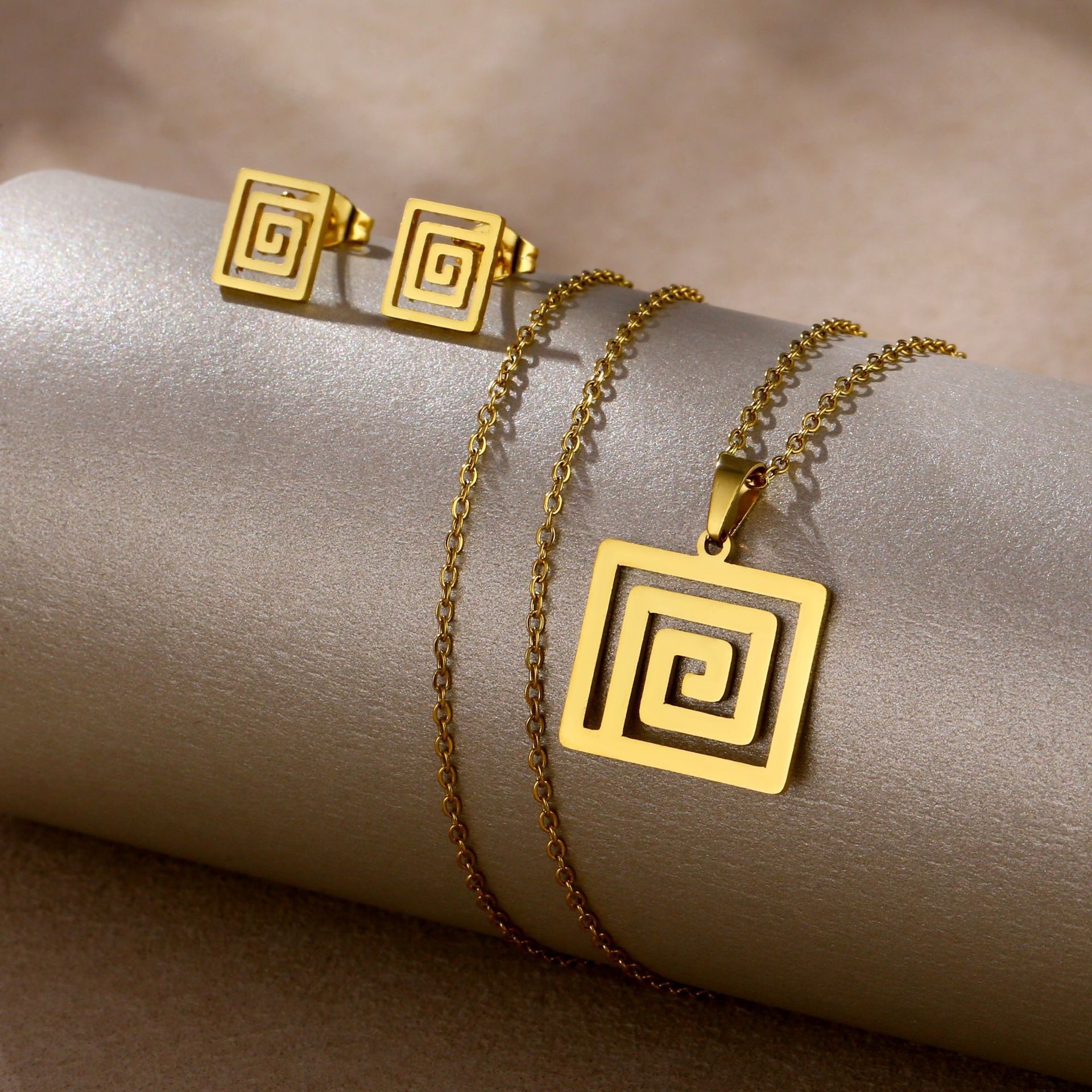European and American Cross-Border New Stainless Steel Necklace and Earrings Set for Women, Glossy Personalized Simple Set Wholesale