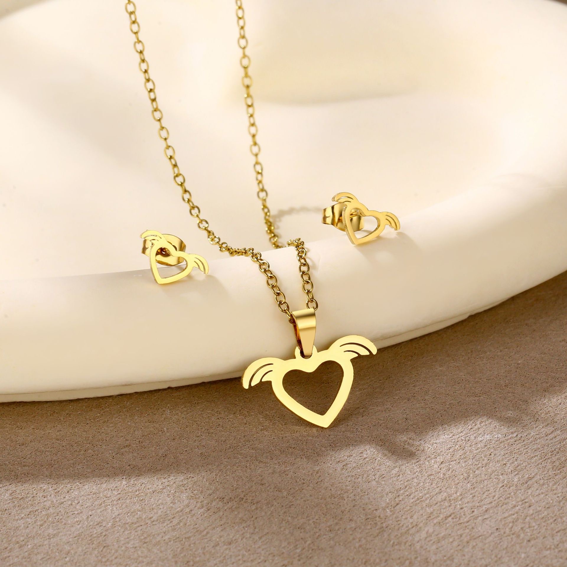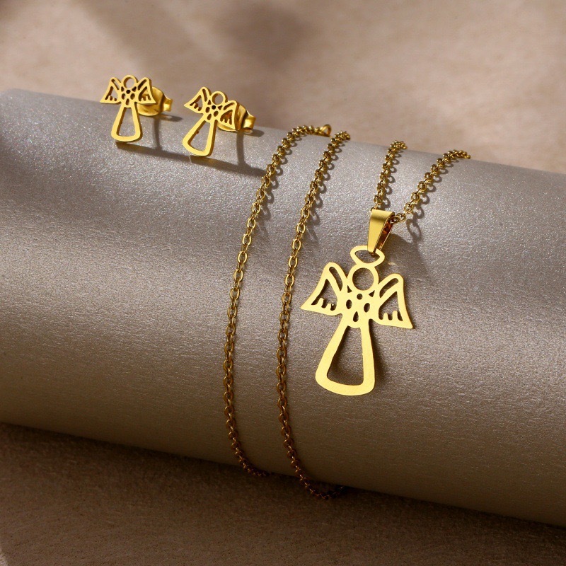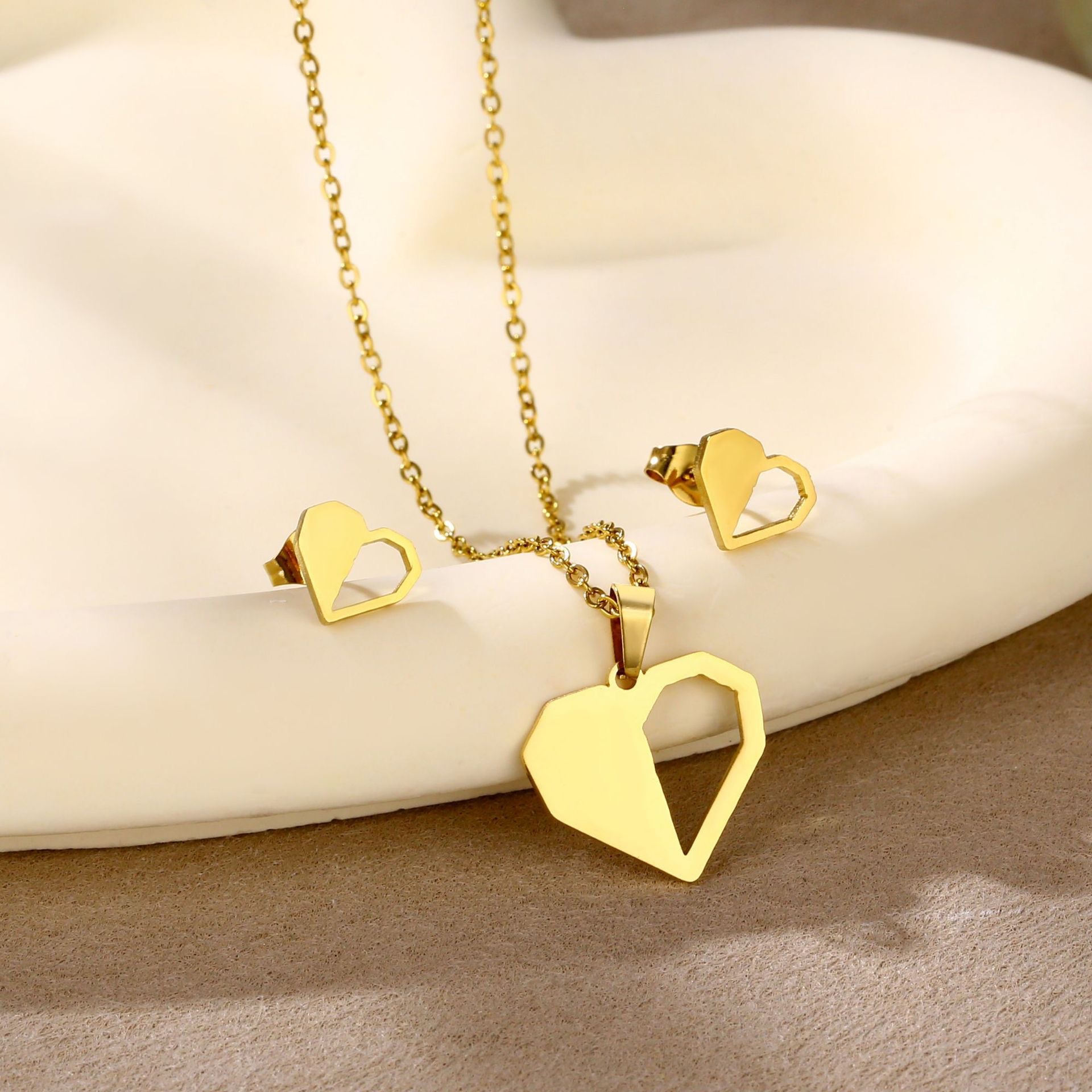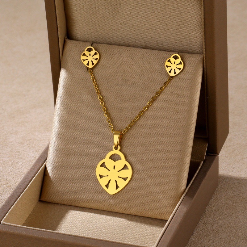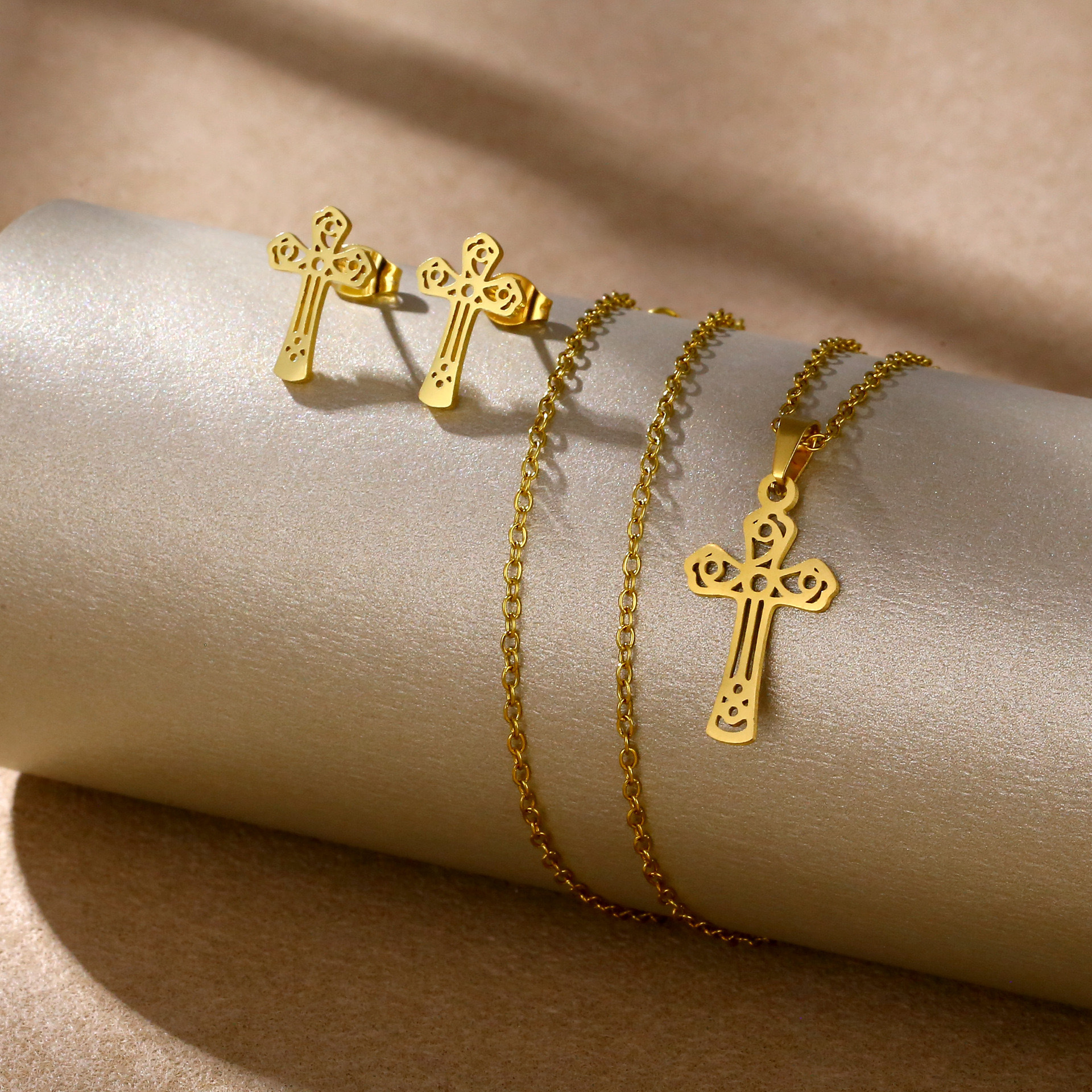 European and American Cross-Border New Stainless Steel Necklace and Earrings Set for Women, Glossy Personalized Simple Set Wholesale