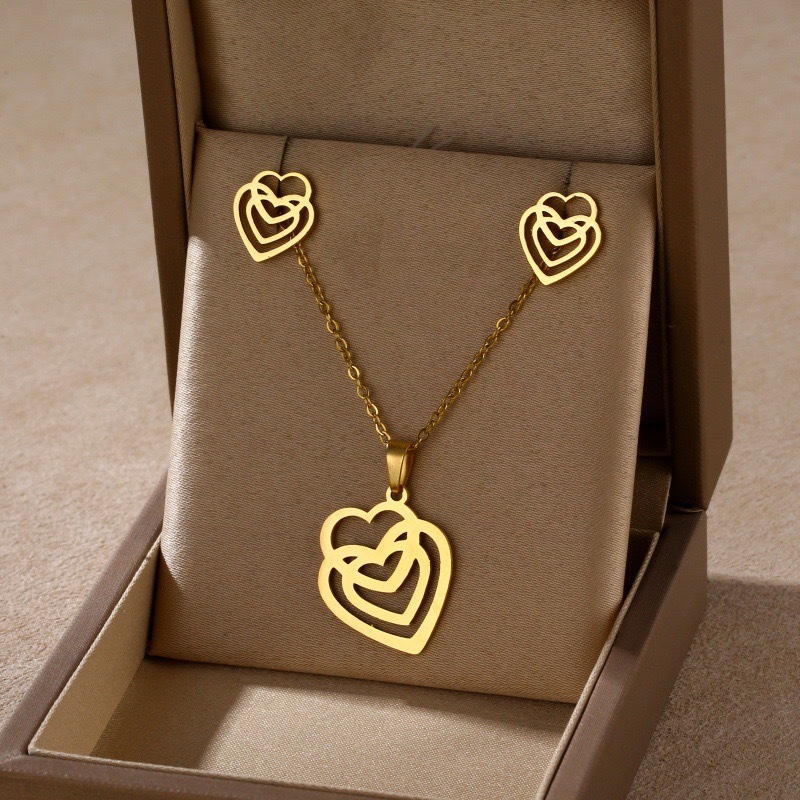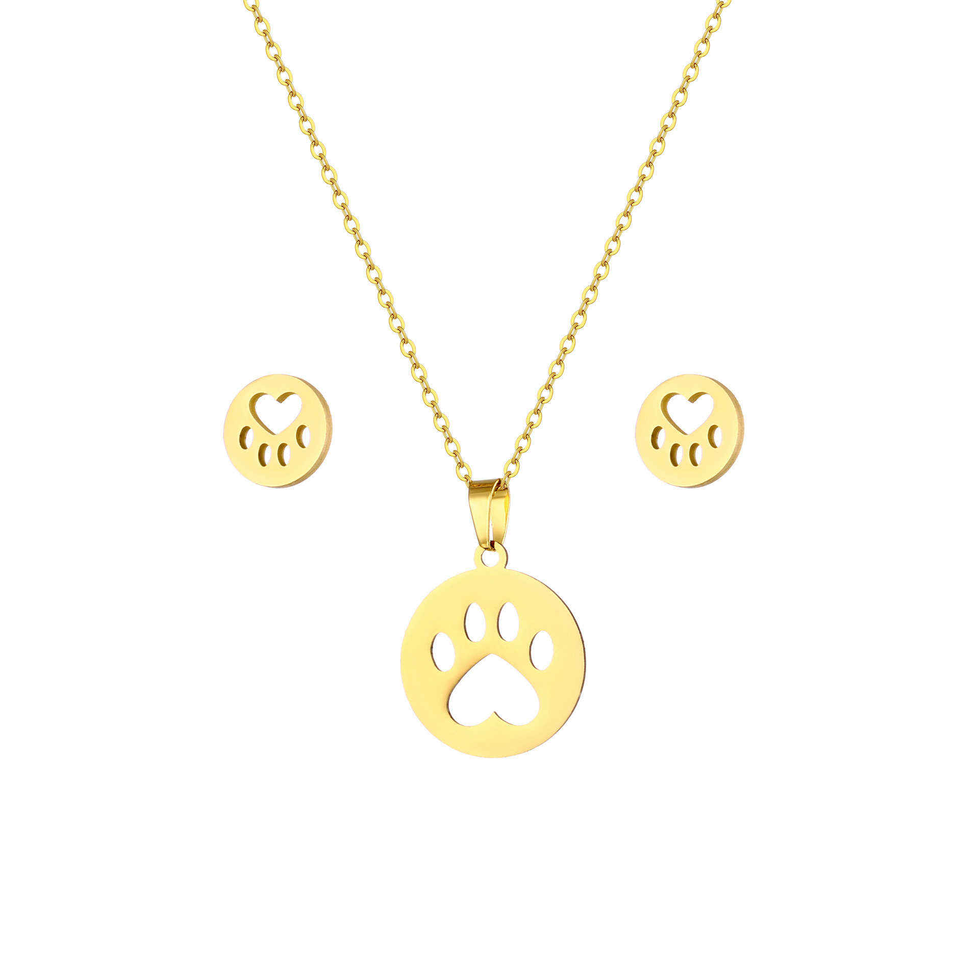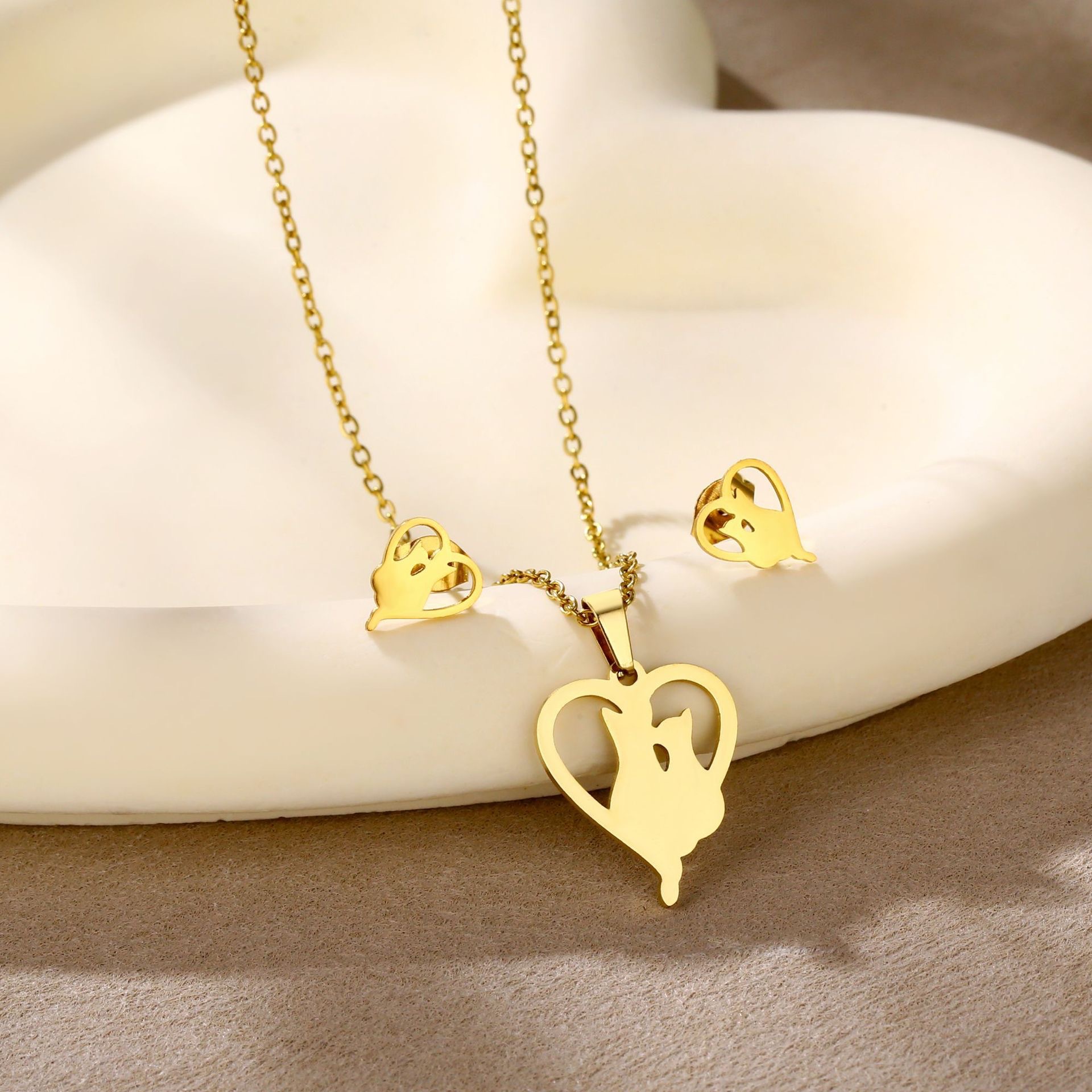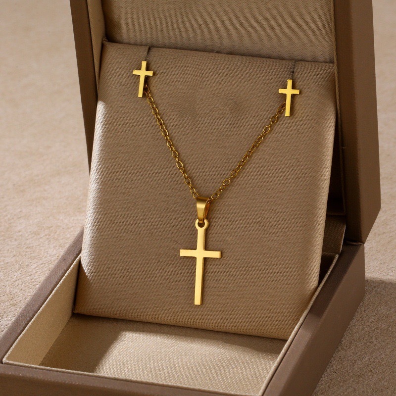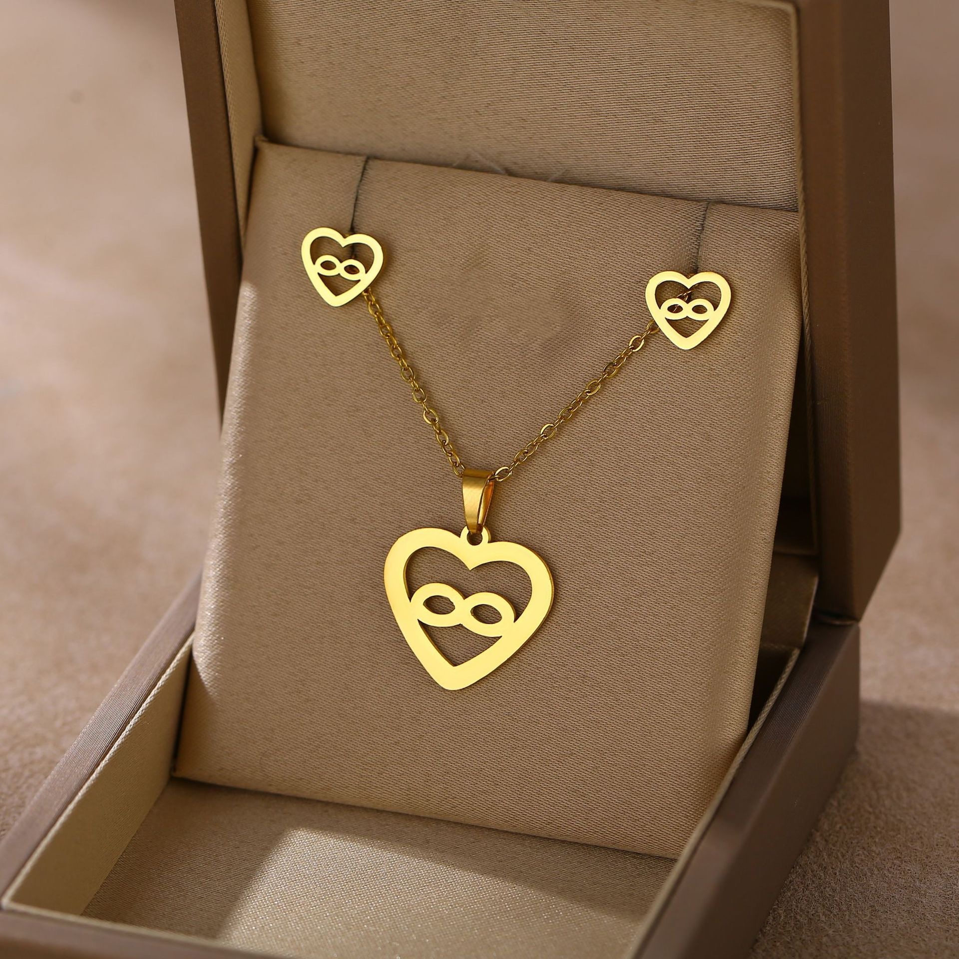 European and American Cross-Border New Stainless Steel Necklace and Earrings Set for Women, Glossy Personalized Simple Set Wholesale