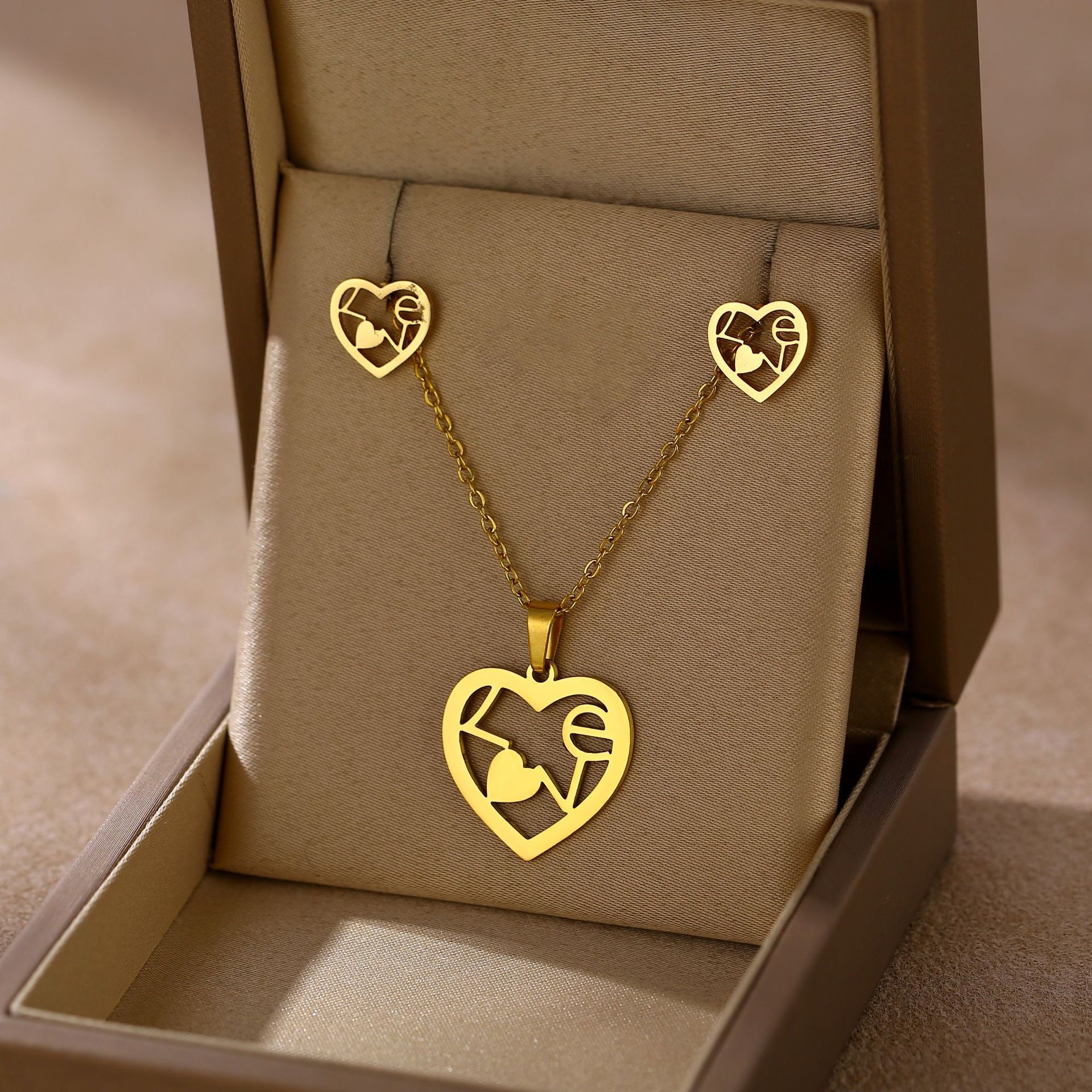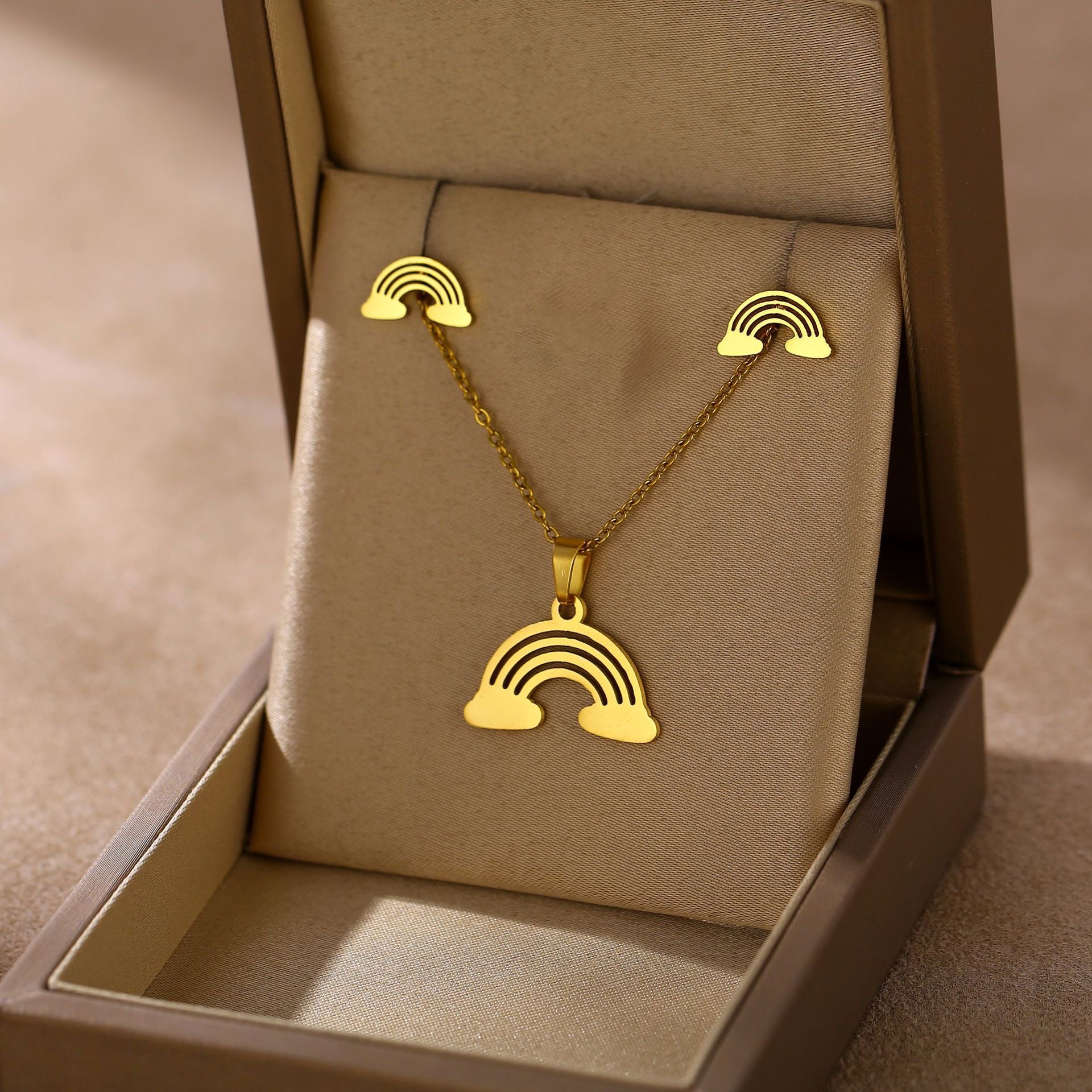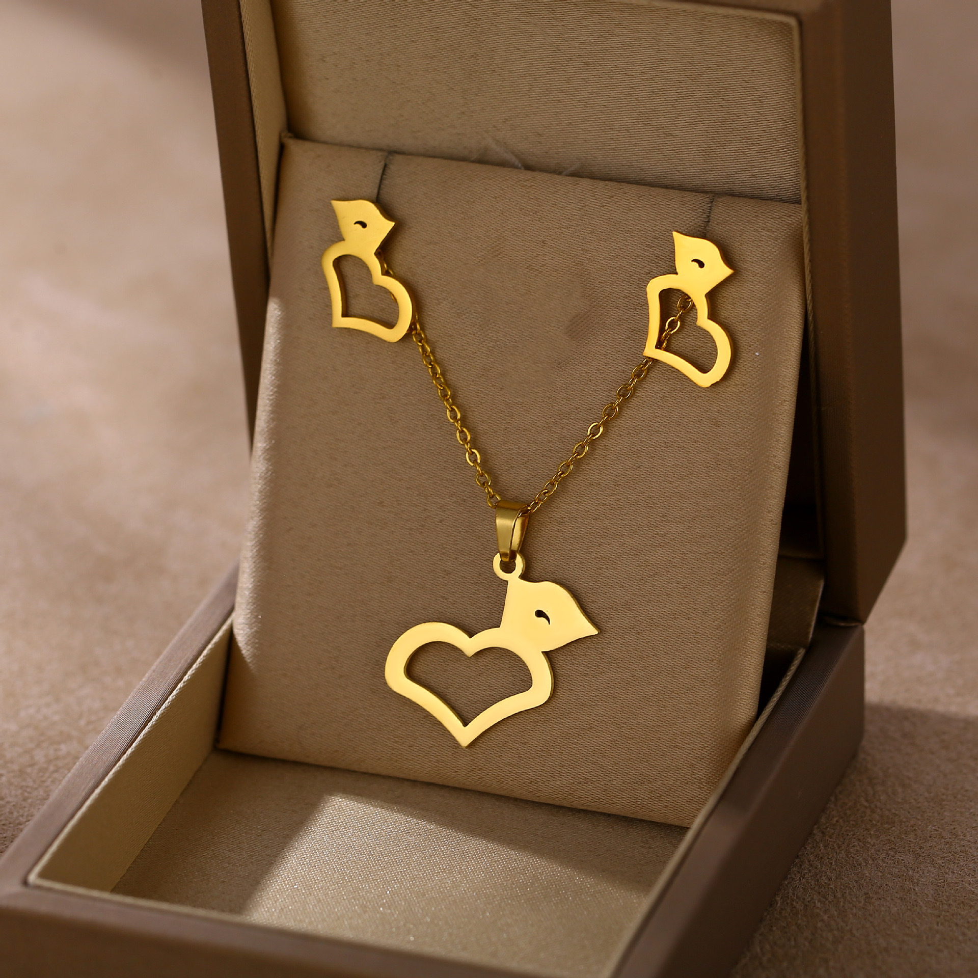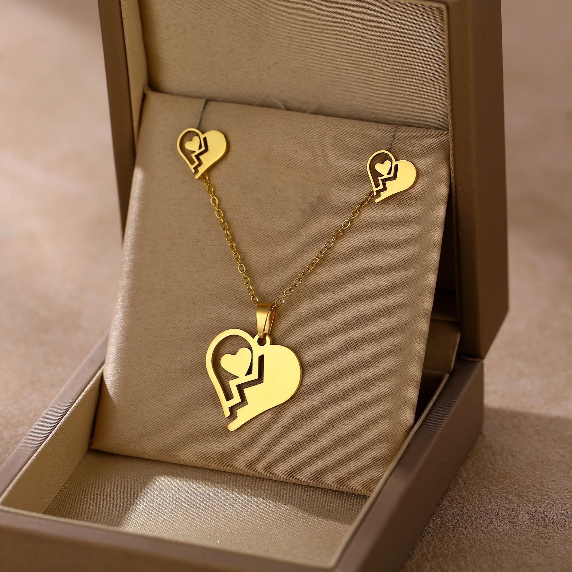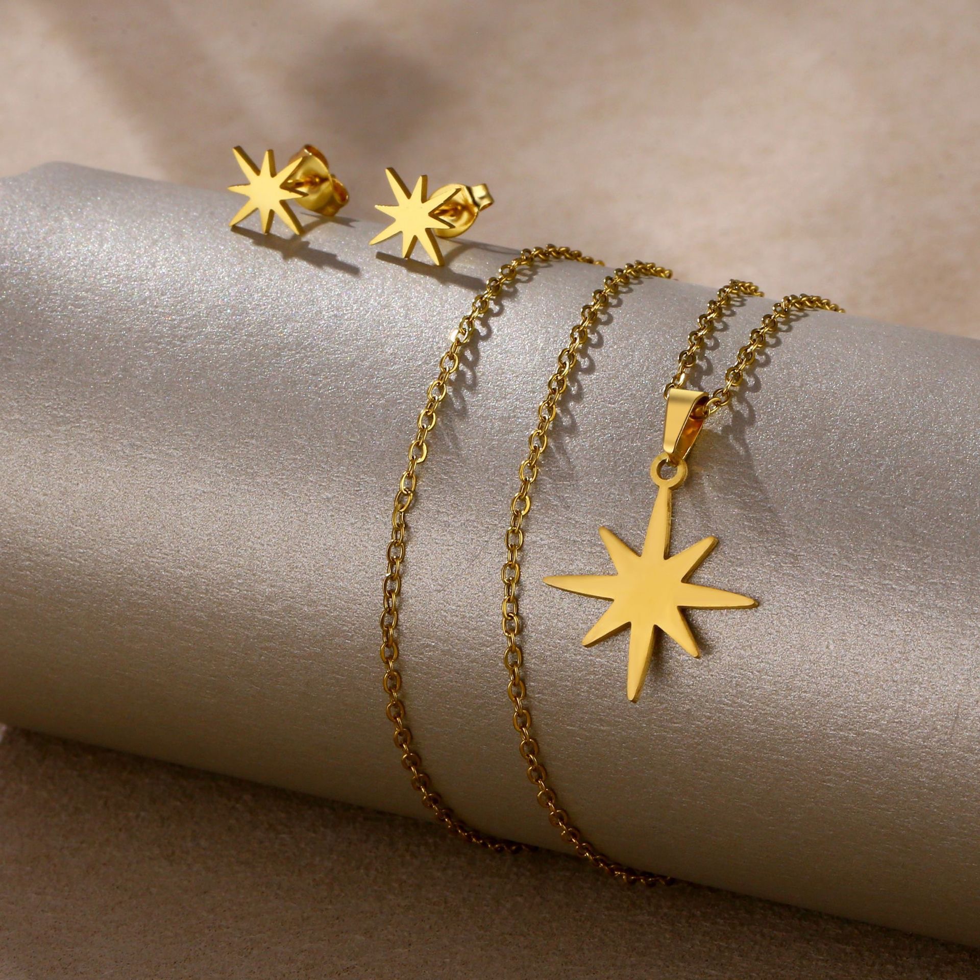 European and American Cross-Border New Stainless Steel Necklace and Earrings Set for Women, Glossy Personalized Simple Set Wholesale
