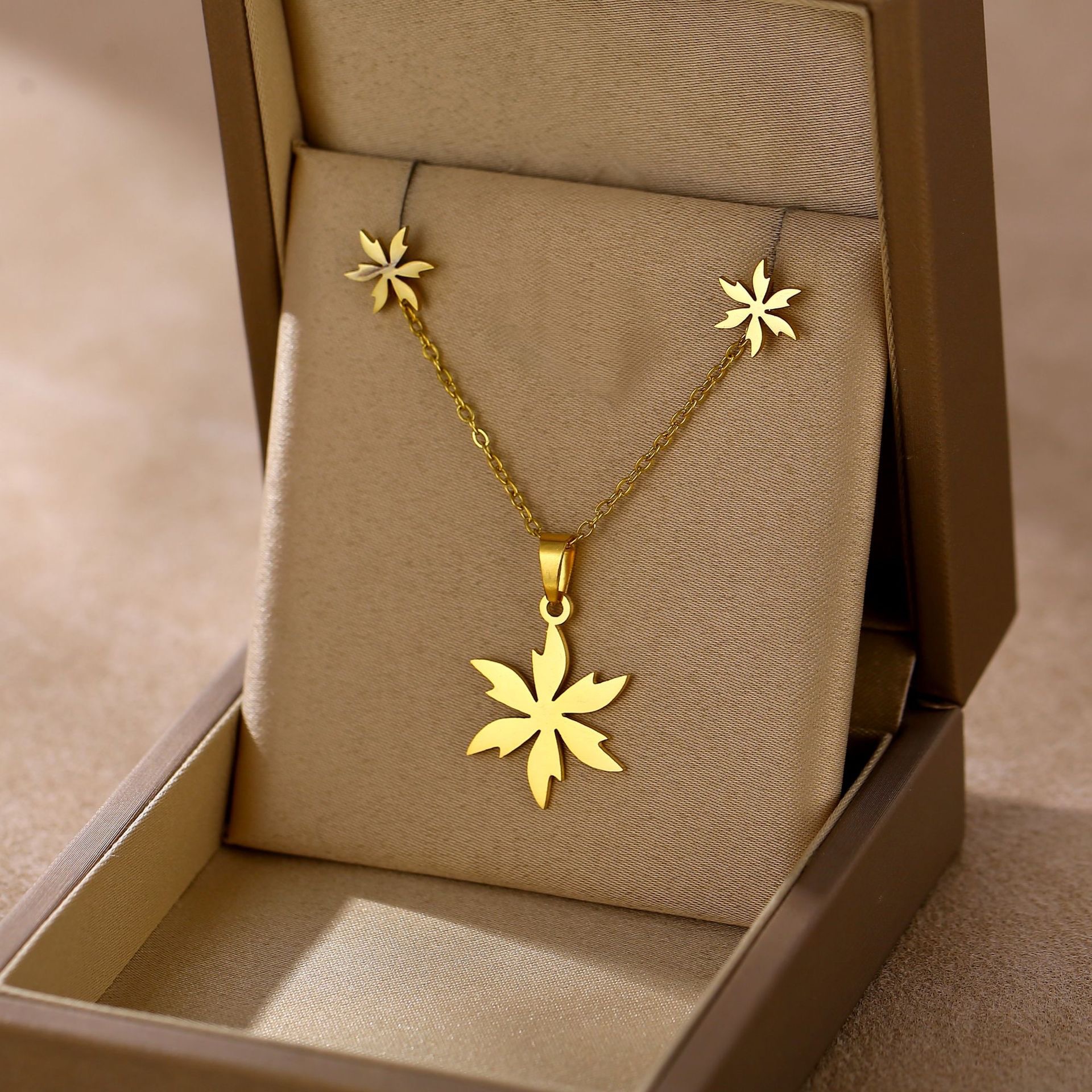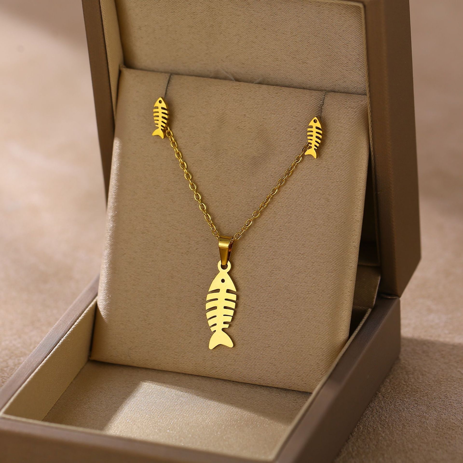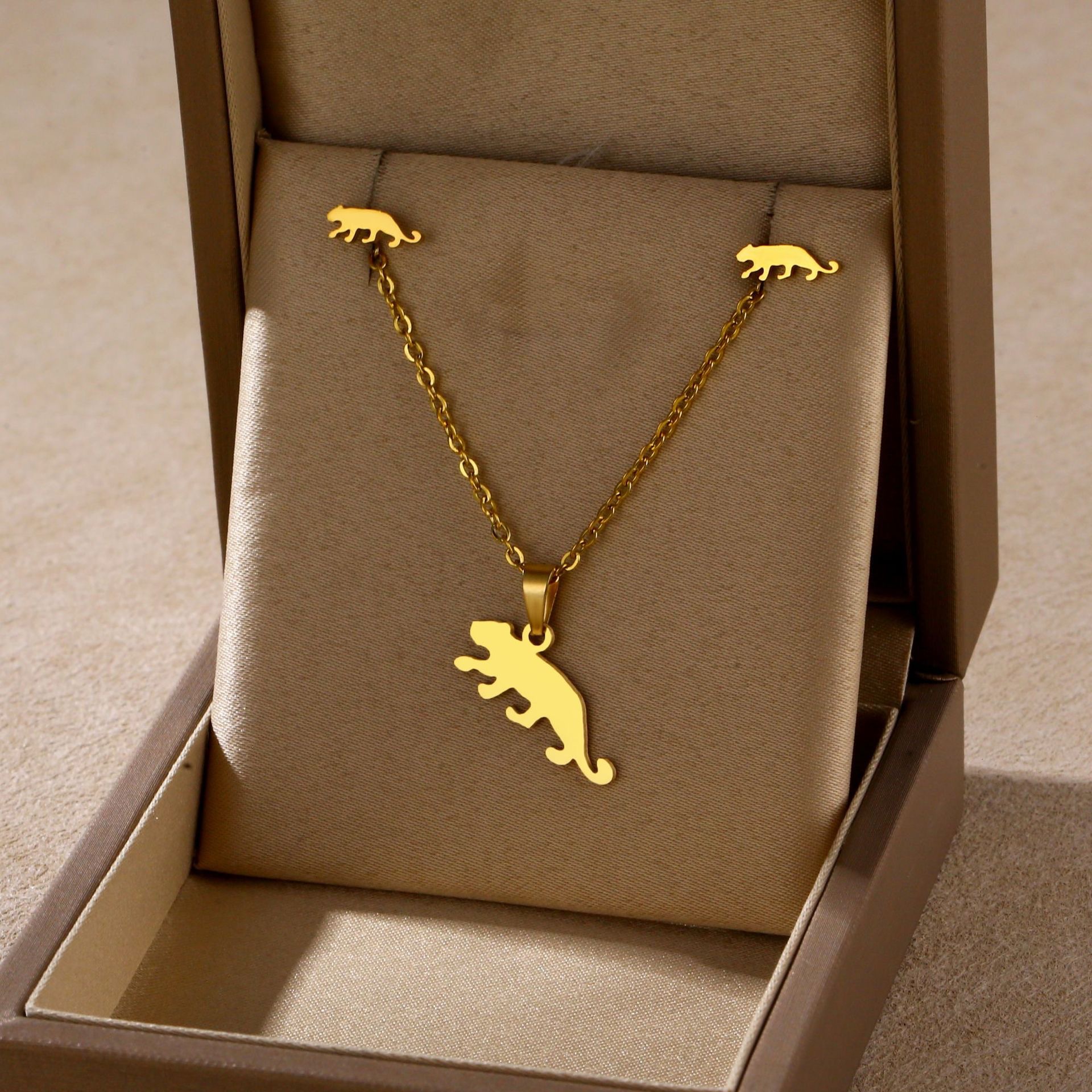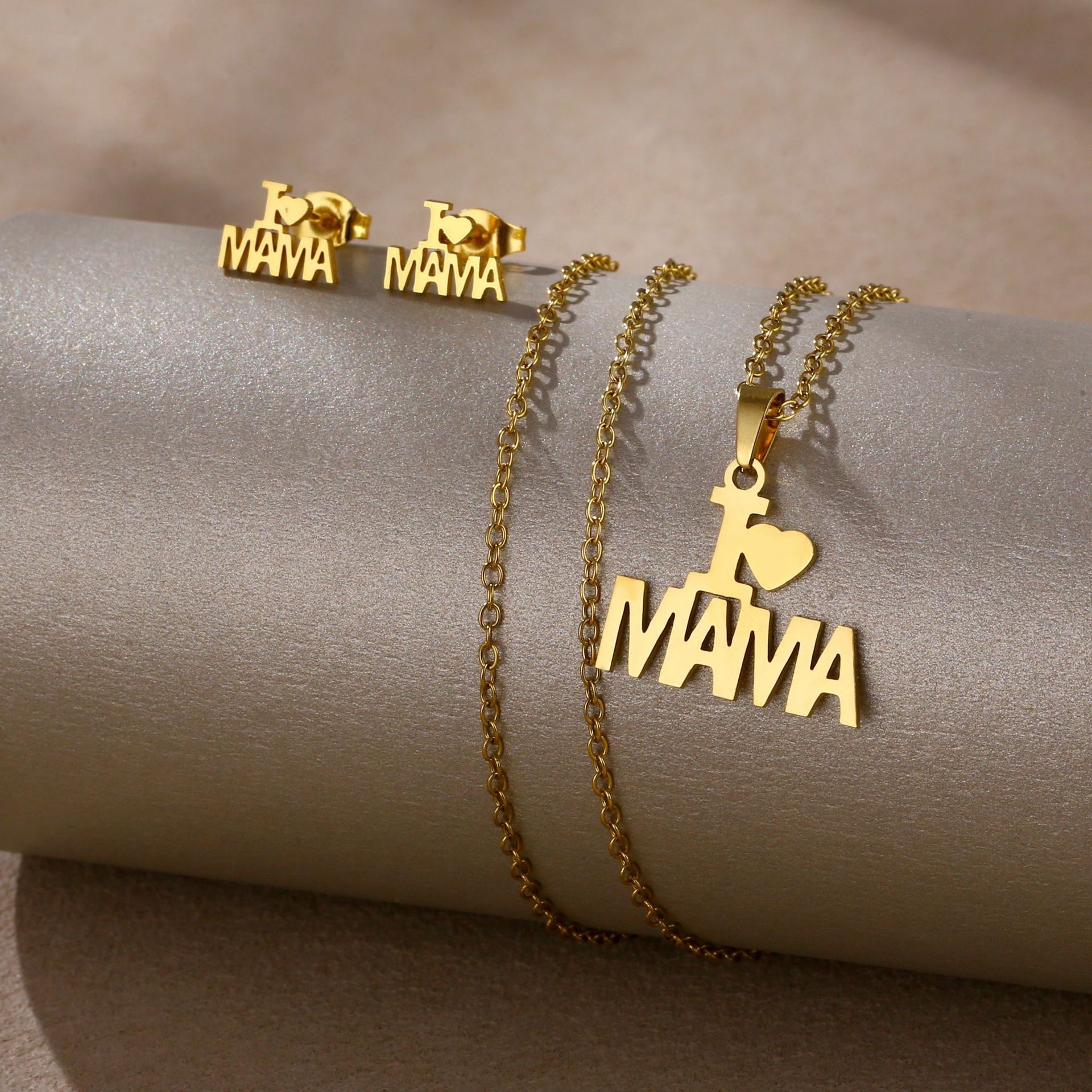 European and American Cross-Border New Stainless Steel Necklace and Earrings Set for Women, Glossy Personalized Simple Set Wholesale