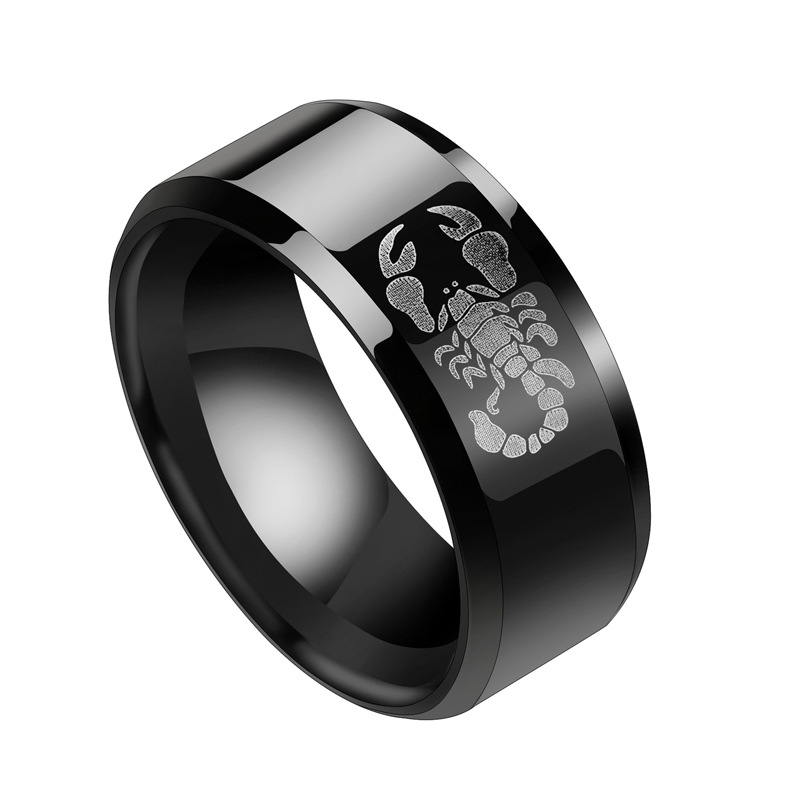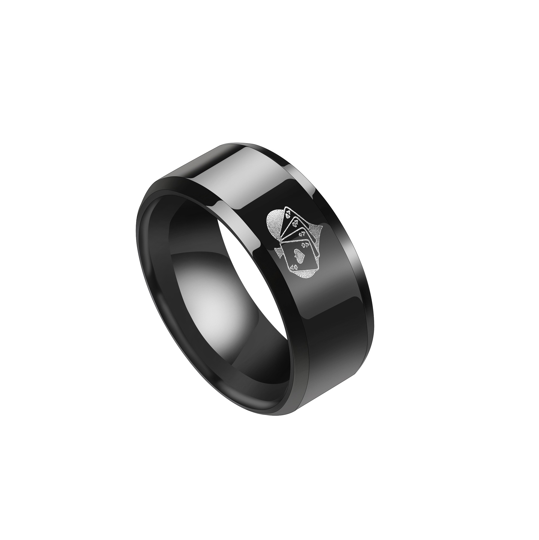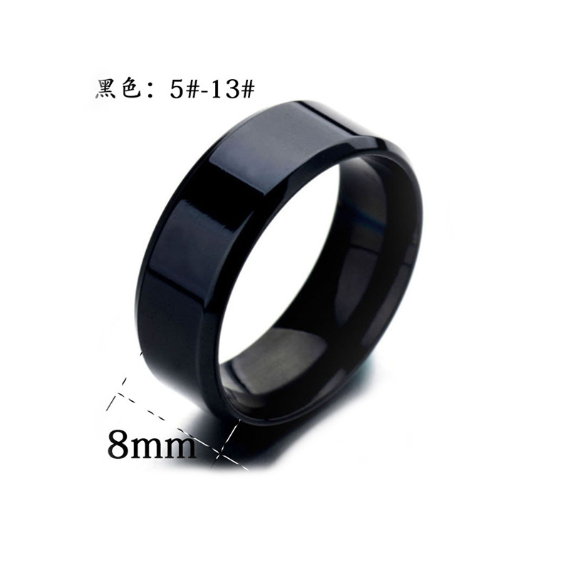 Cross-Border Popular Stainless Steel Smooth 8mm Beveled Edge Ring with Marking and Engraving Pattern for Men and Women Titanium Steel Ring Jewelry