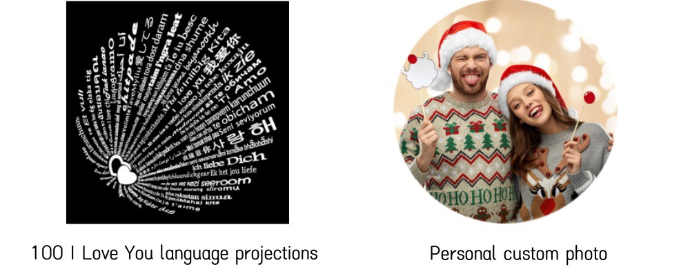 页面价格不包括定制照片的费用,直接拍下,默认发送100种我爱你语言的投影文字,如果需要定制照片,请联系客服咨询定制