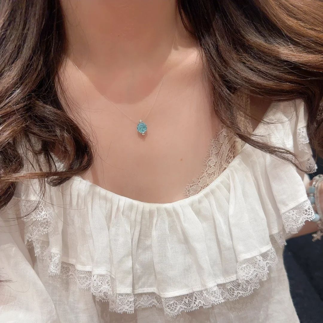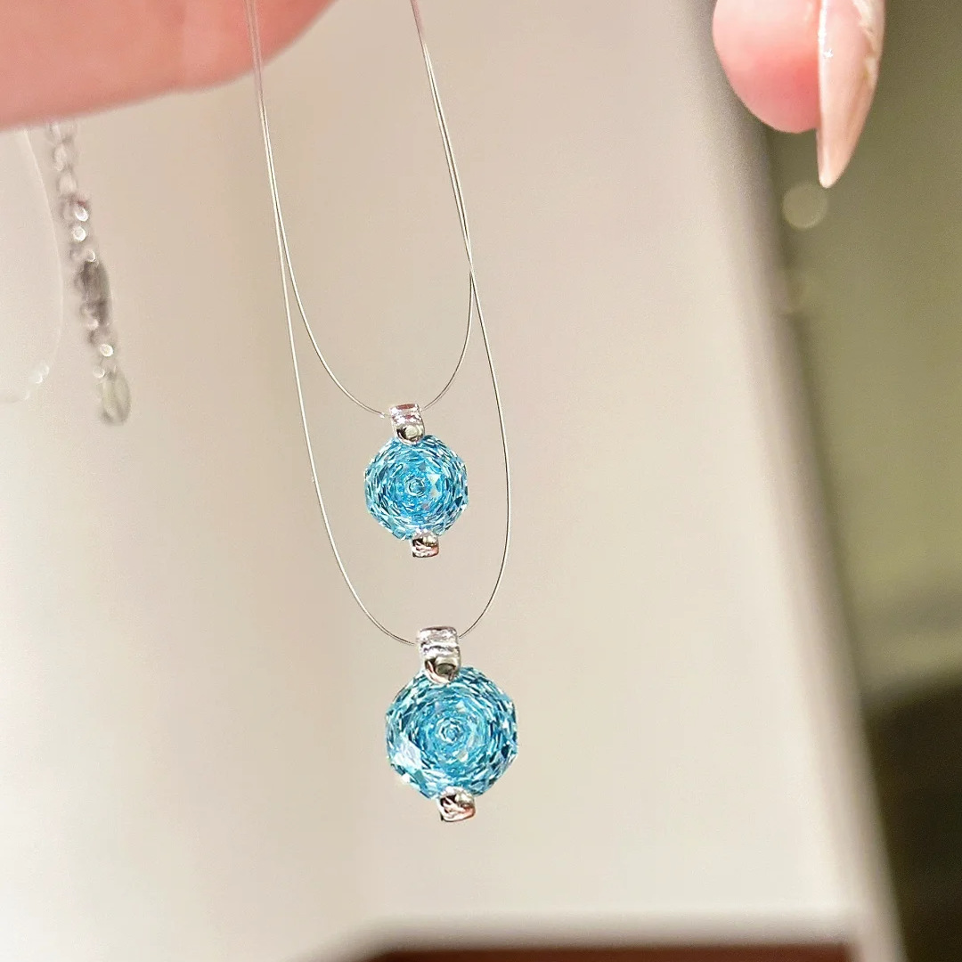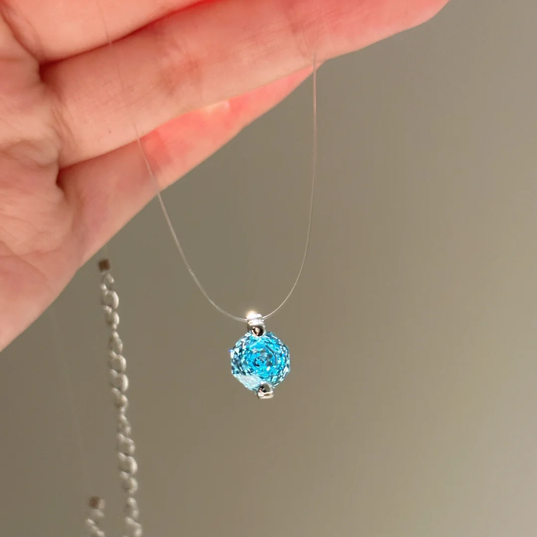Imported Invisible Fishing Line Mermaid's Tear Necklace Accessible Luxury Versatile Octagonal Rose Cut Aquamarine Zircon Clavicle Chain for Women